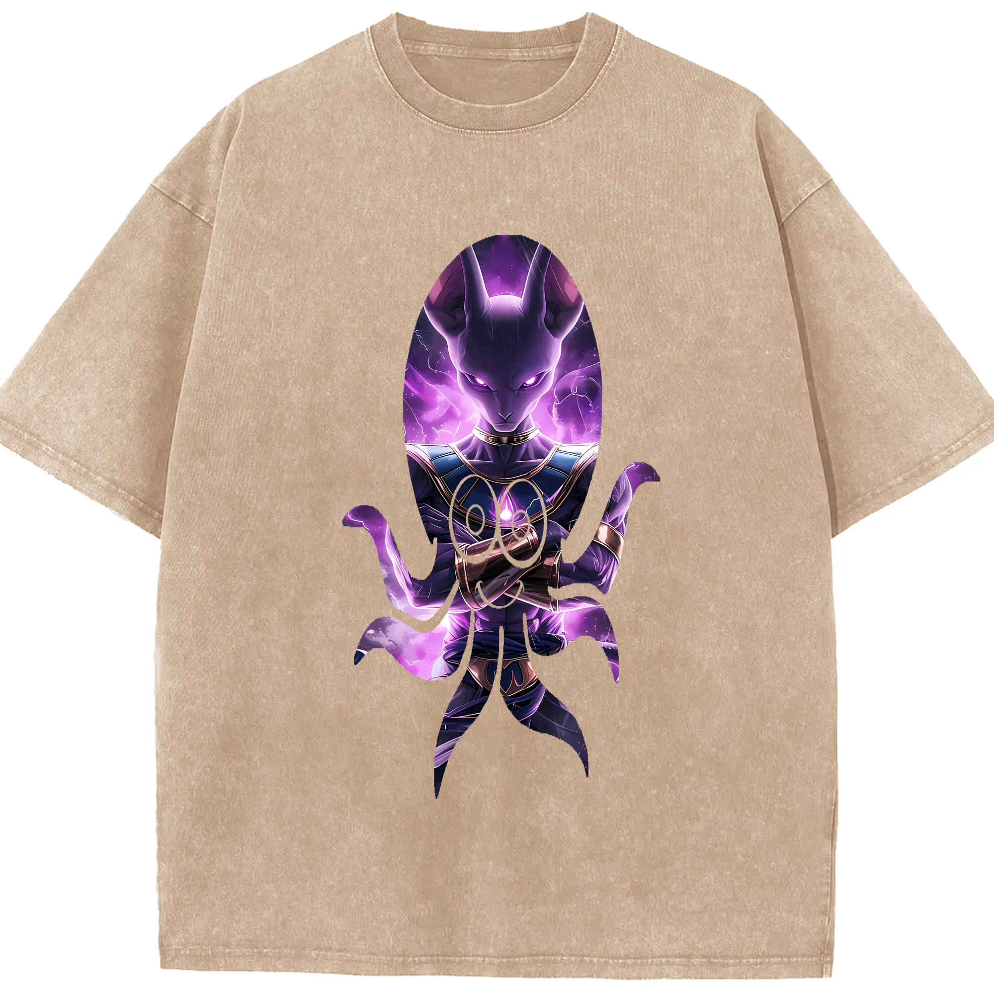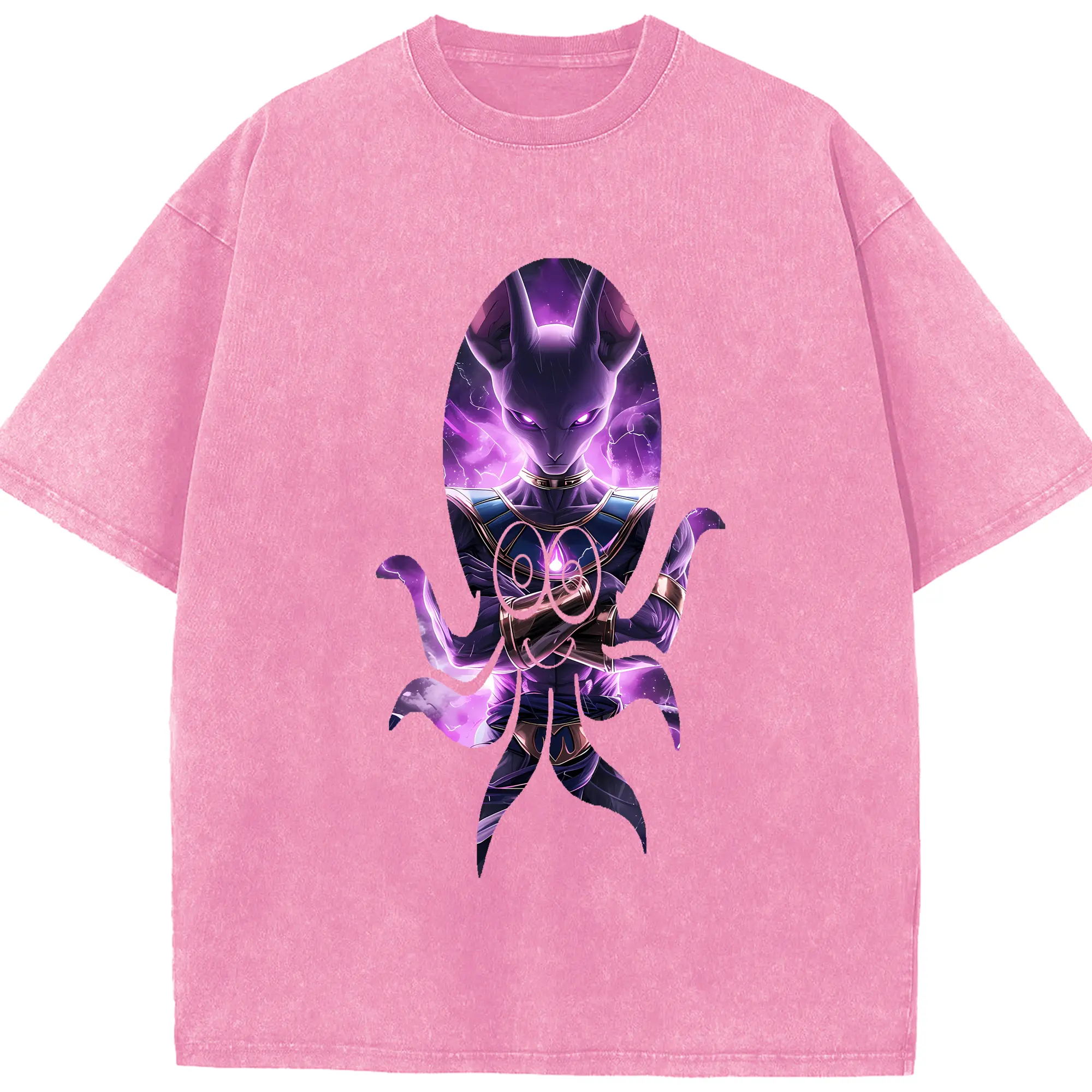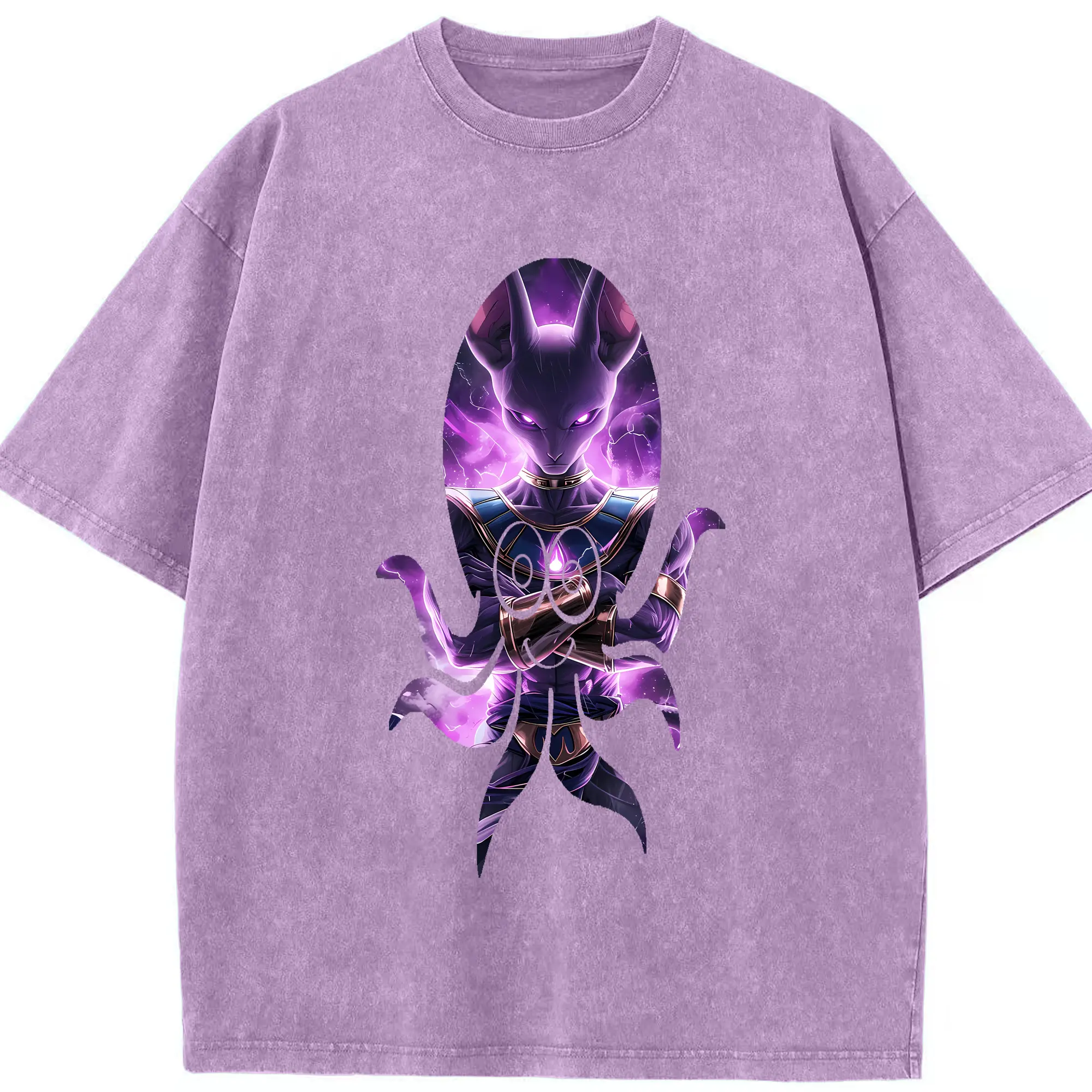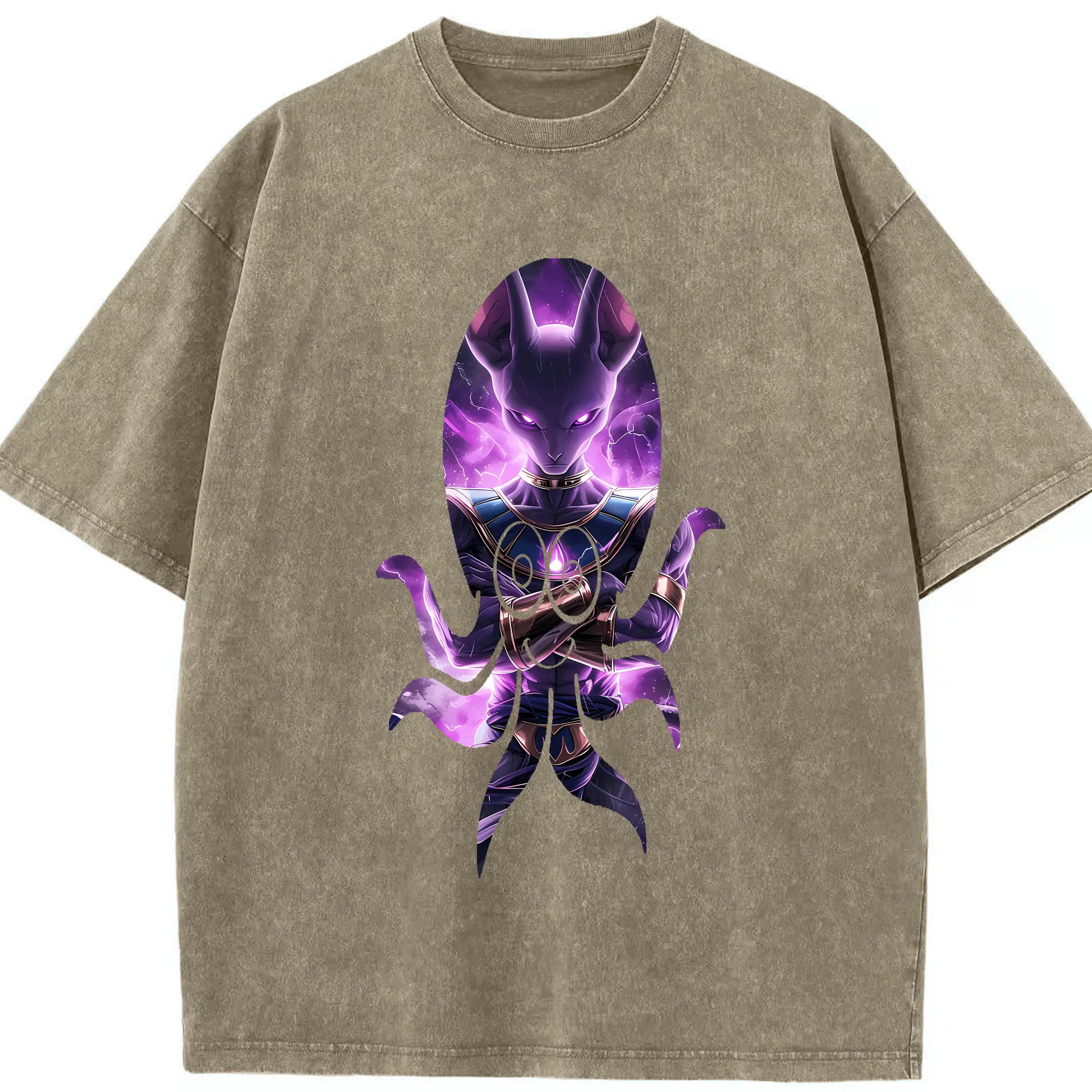 ドラゴンボール グッズ ビルス - 綿100% ヴィンテージ風 半袖Tシャツ ・ 背面プリント ・ 柔らか肌触り ・ 通気性 快適 ・ スポーツ カジュアル 外出用