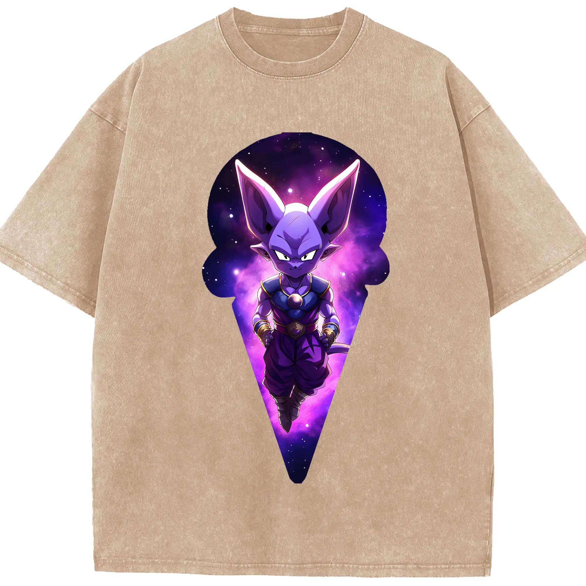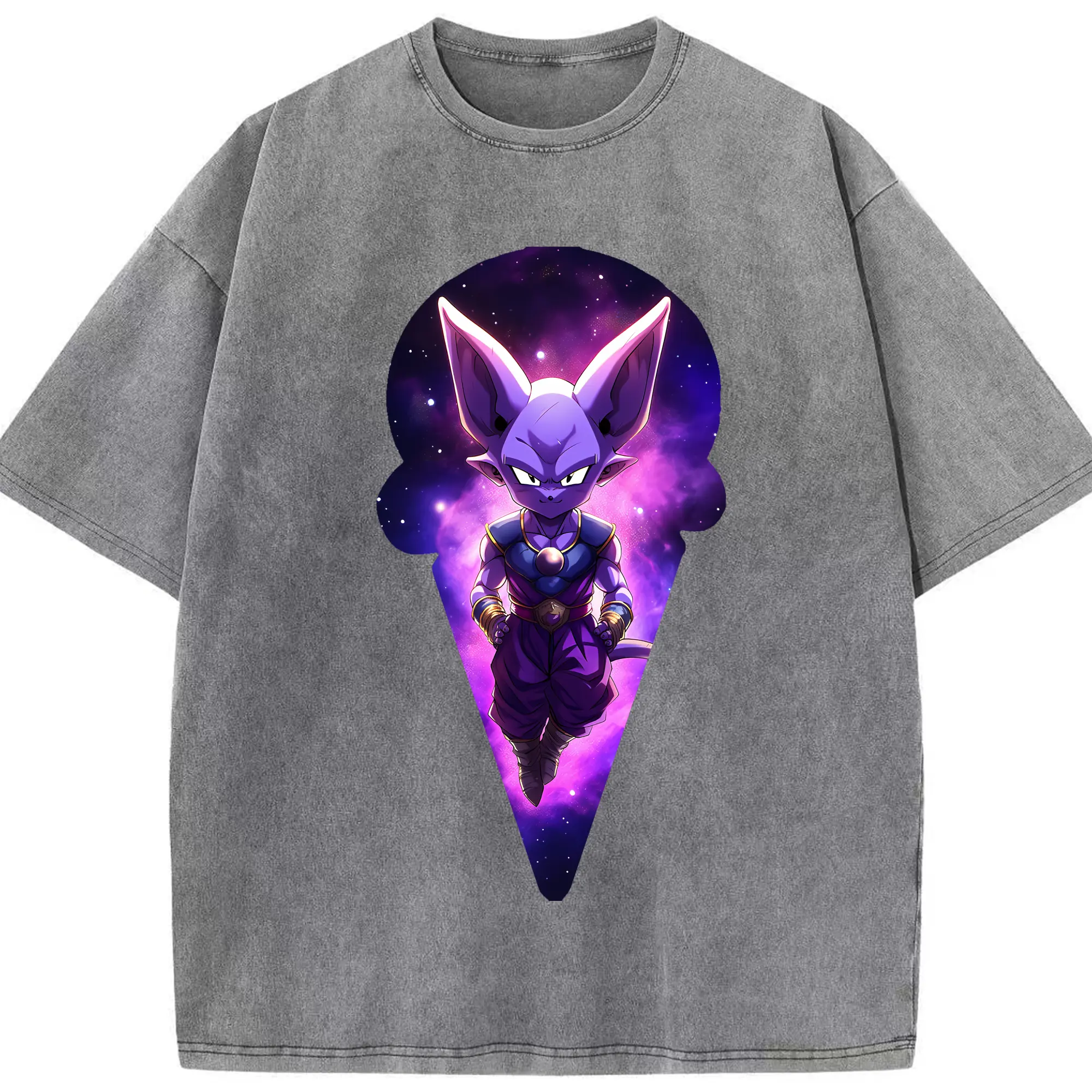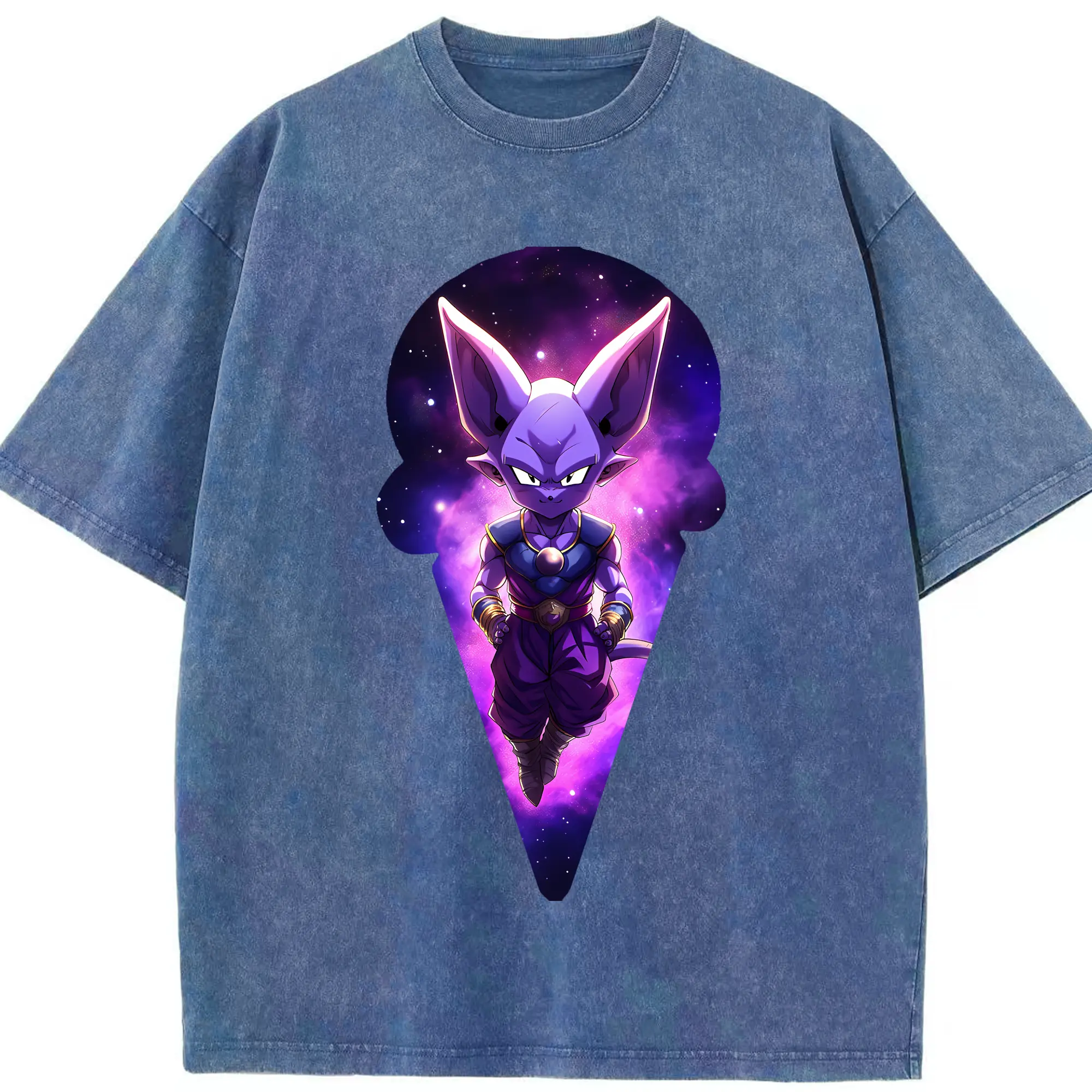 ドラゴンボール グッズ ビルス - 綿100% ヴィンテージ風 半袖Tシャツ ・ 背面プリント ・ 柔らか肌触り ・ 通気性 快適 ・ スポーツ カジュアル 外出用