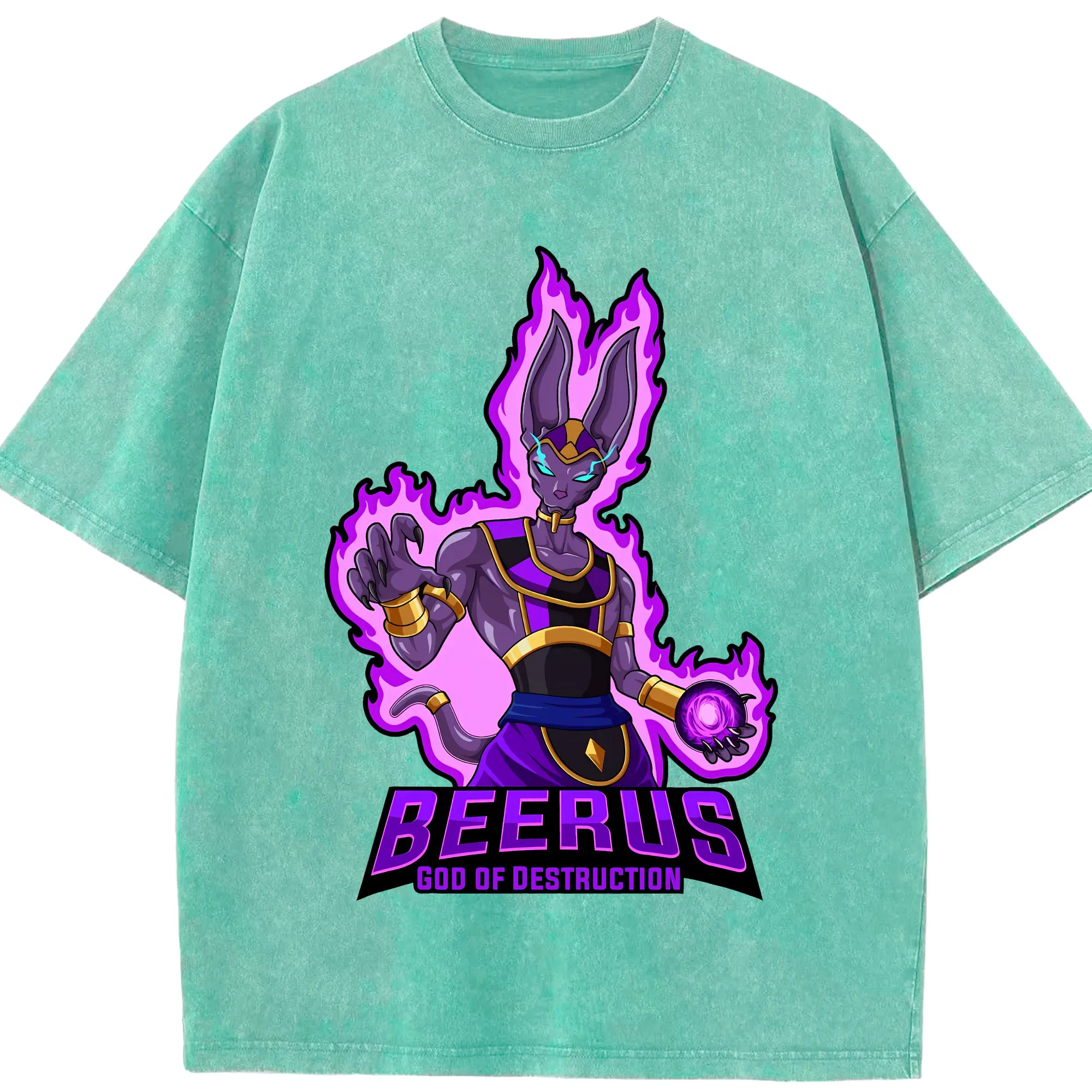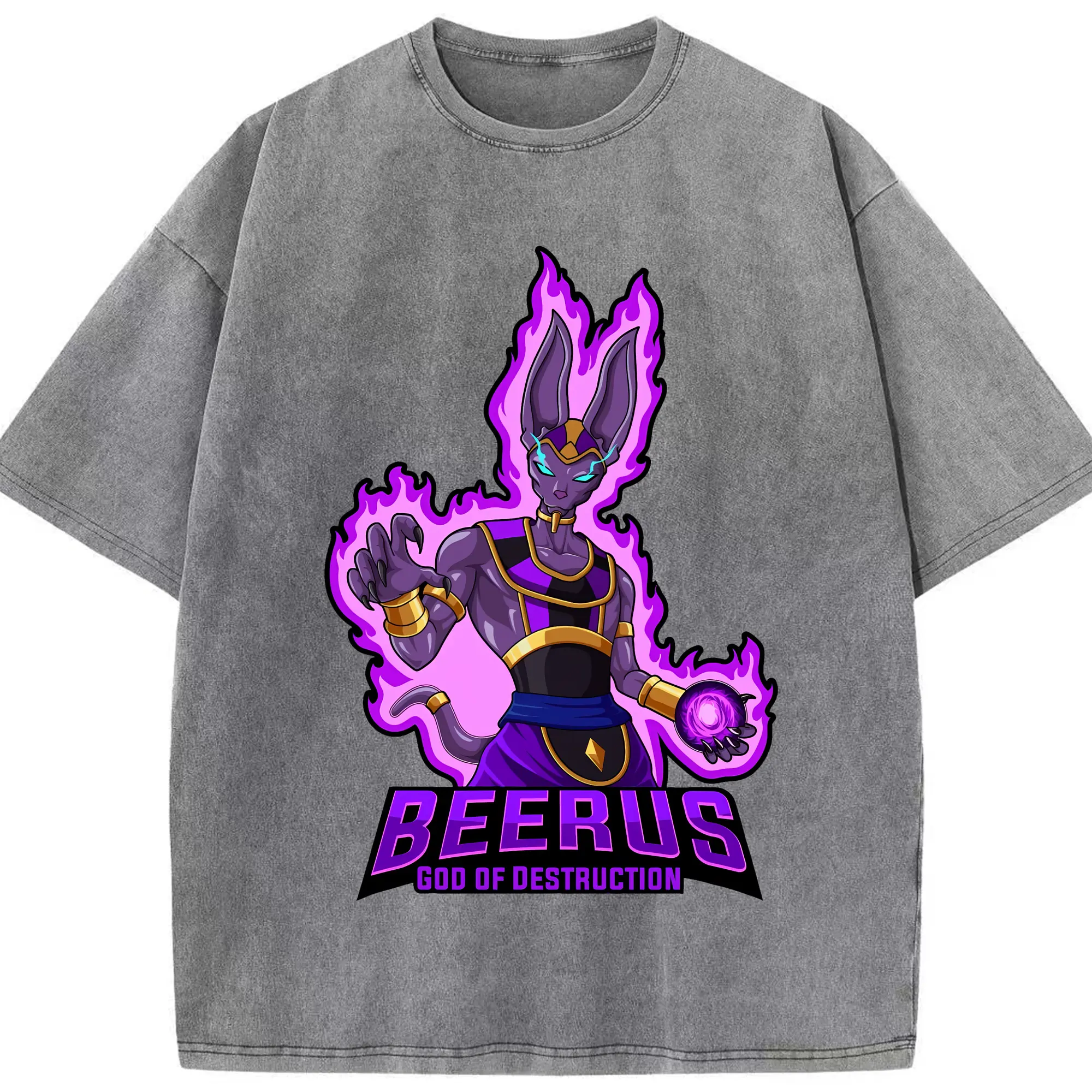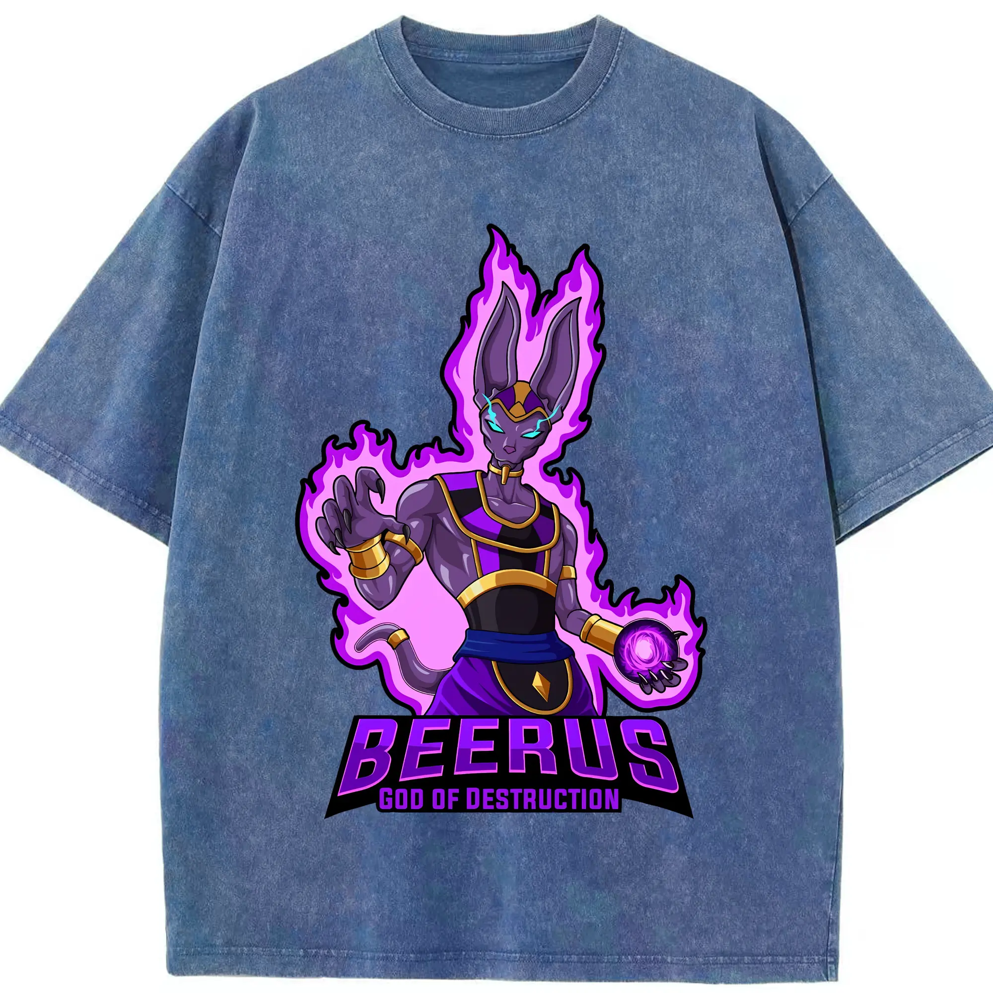 ドラゴンボール グッズ ビルス - 綿100% ヴィンテージ風 半袖Tシャツ ・ 背面プリント ・ 柔らか肌触り ・ 通気性 快適 ・ スポーツ カジュアル 外出用