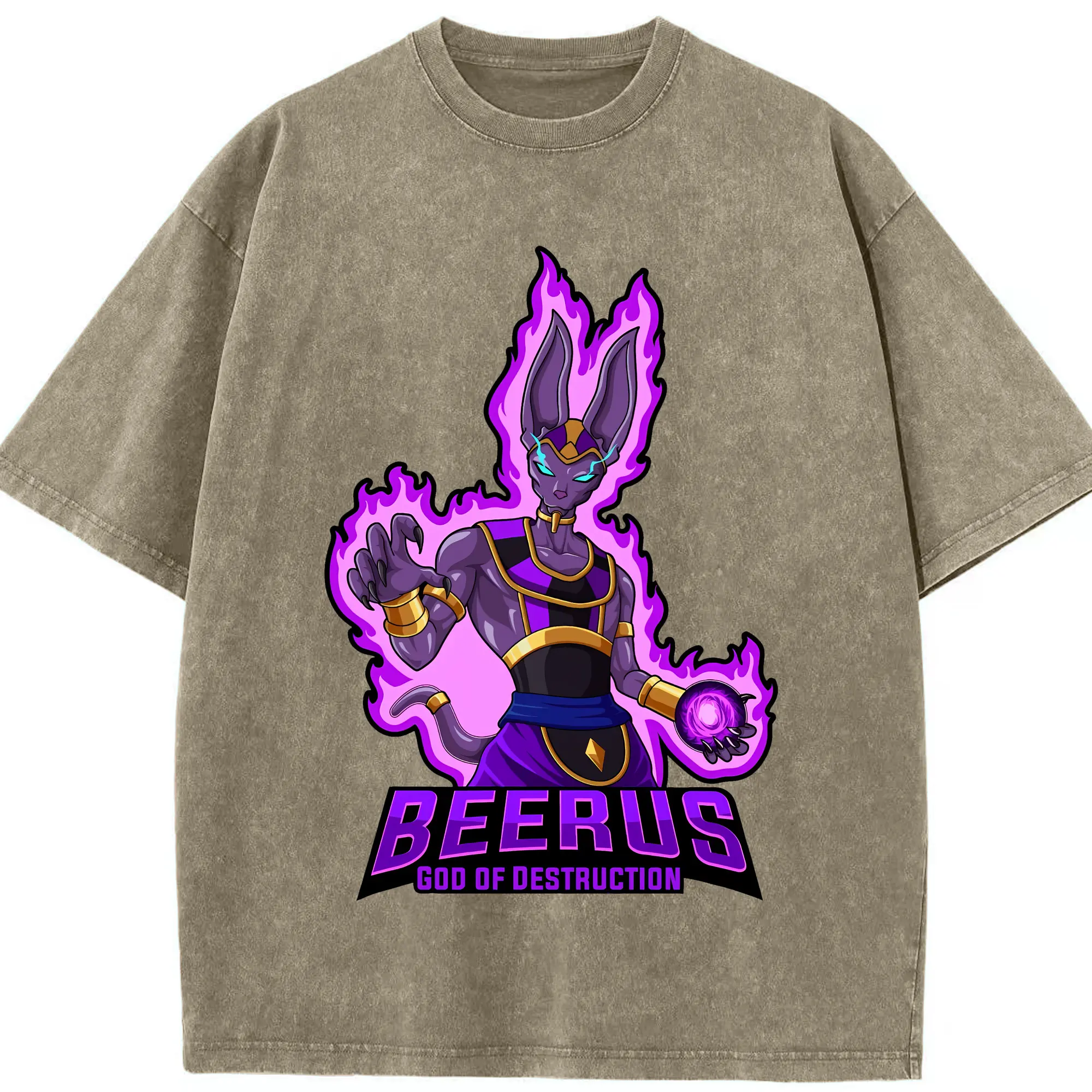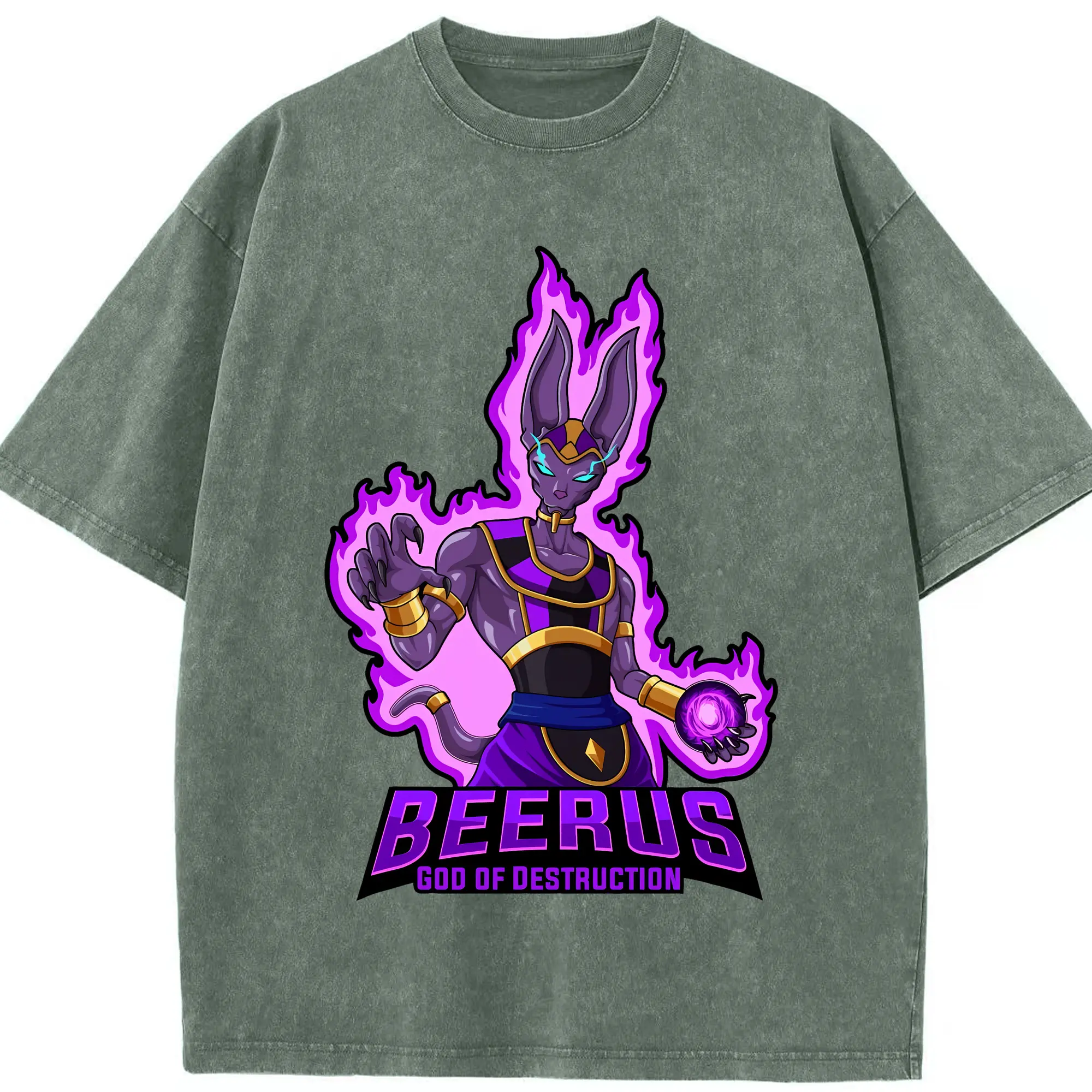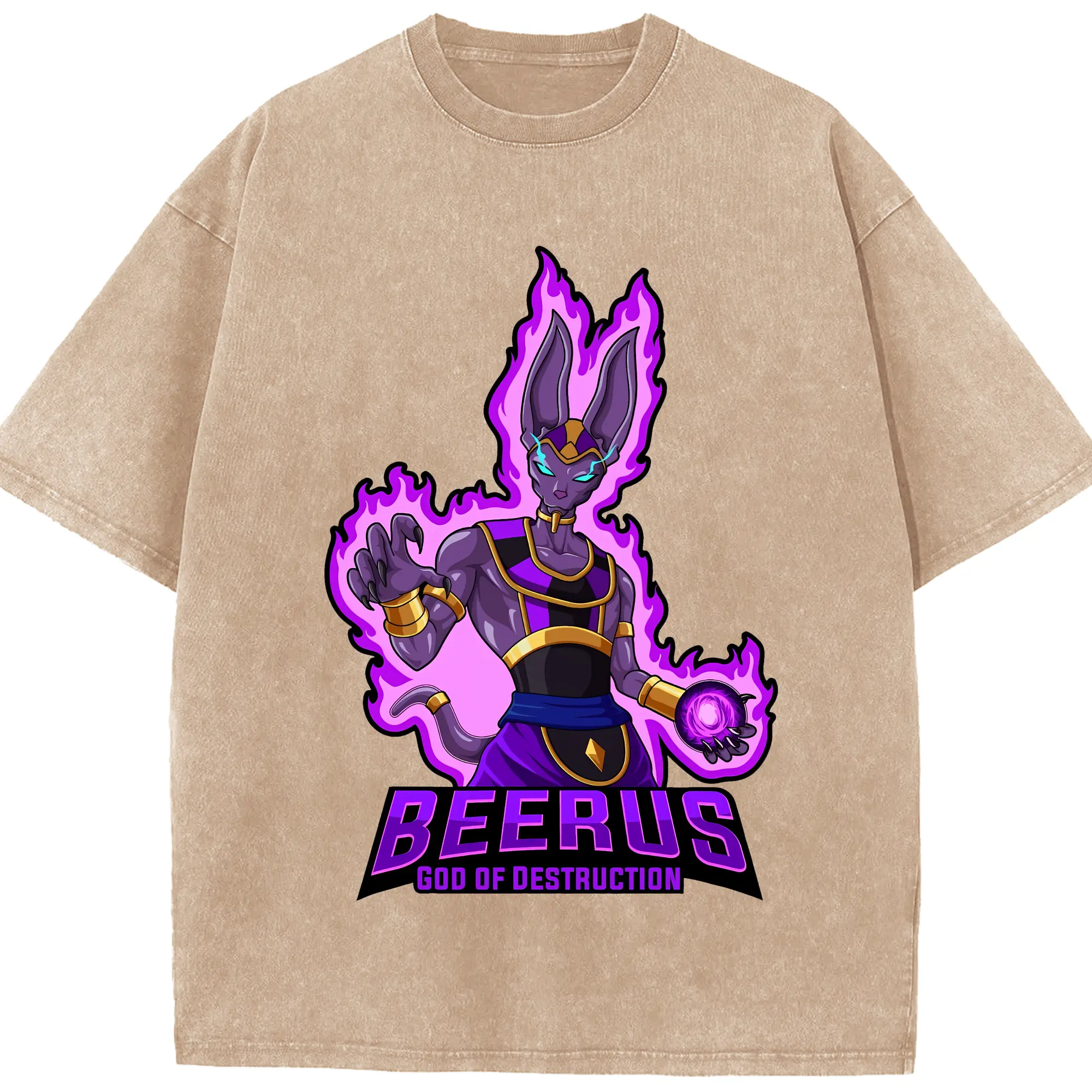 ドラゴンボール グッズ ビルス - 綿100% ヴィンテージ風 半袖Tシャツ ・ 背面プリント ・ 柔らか肌触り ・ 通気性 快適 ・ スポーツ カジュアル 外出用