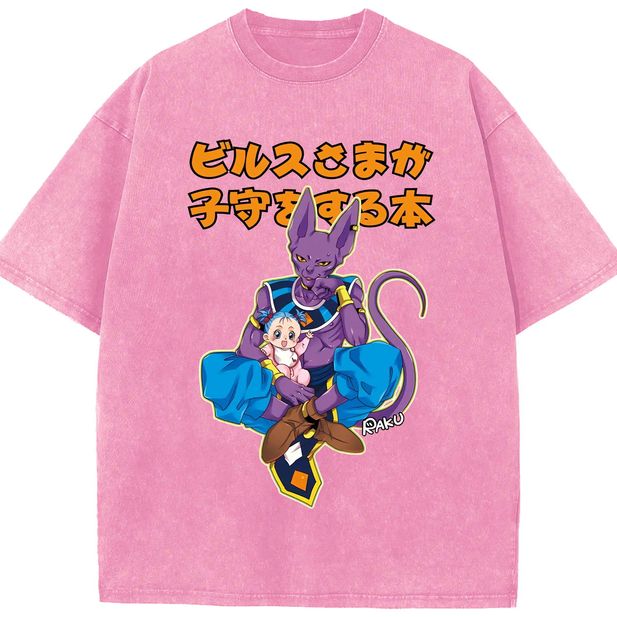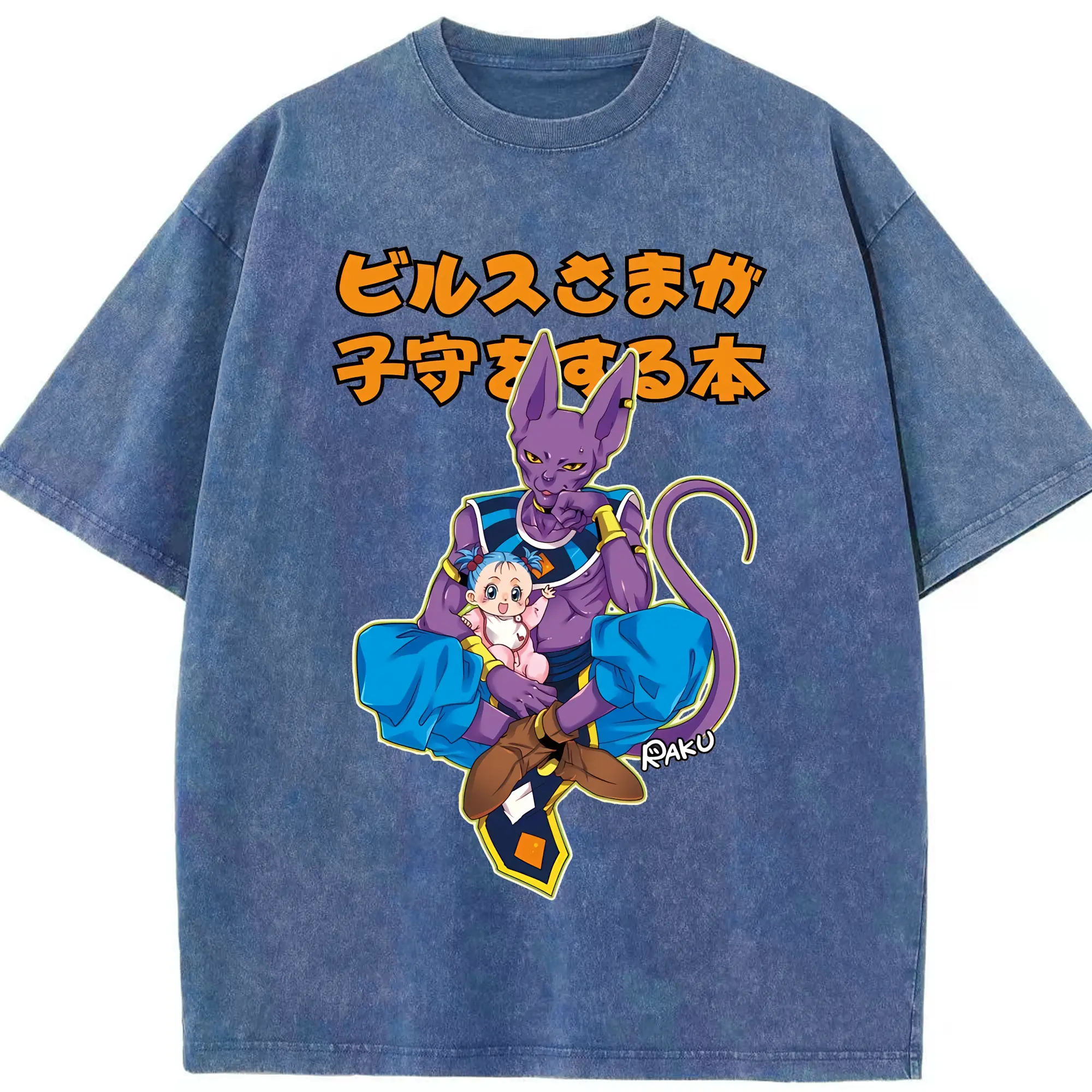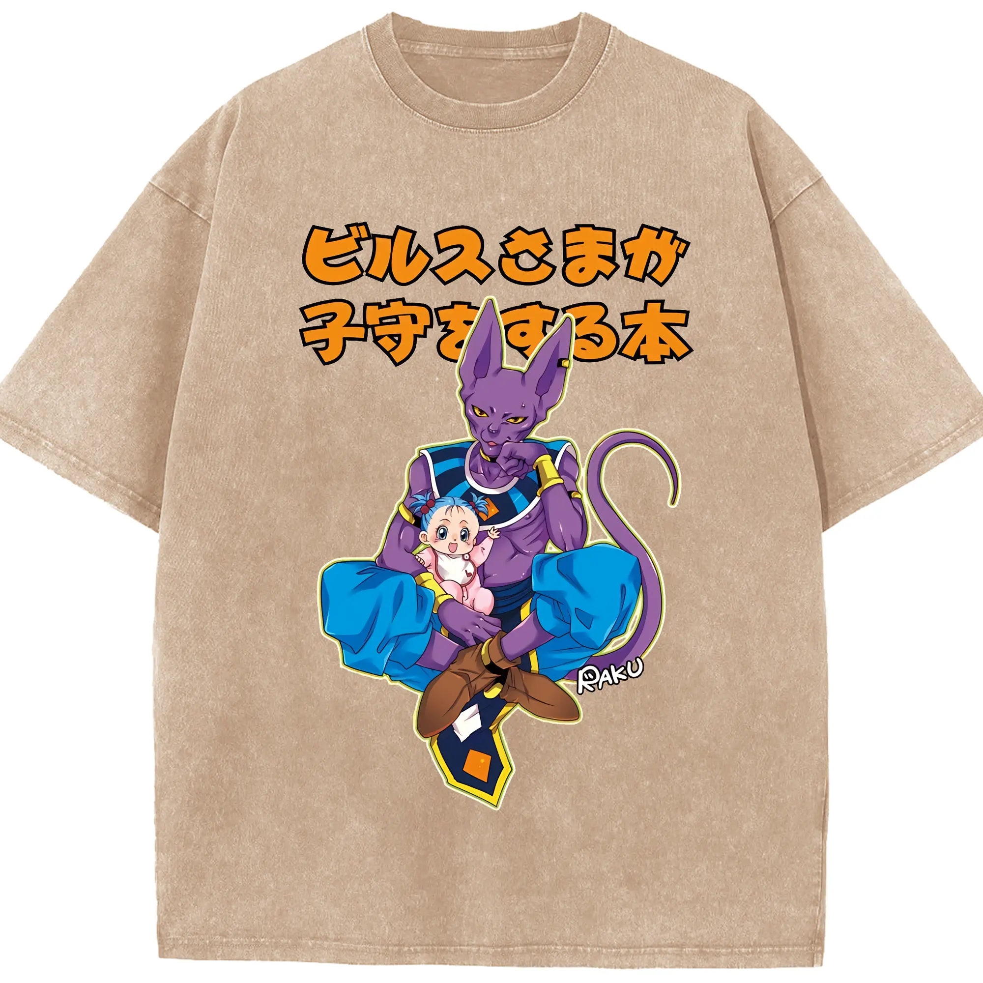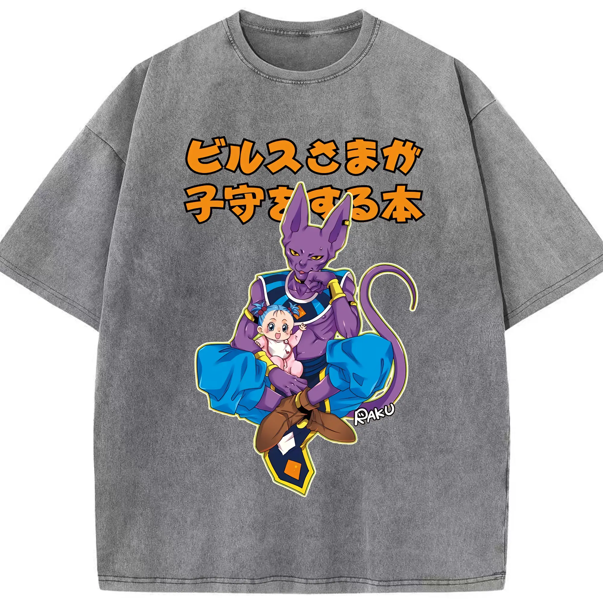 ドラゴンボール グッズ ビルス - 綿100% ヴィンテージ風 半袖Tシャツ ・ 背面プリント ・ 柔らか肌触り ・ 通気性 快適 ・ スポーツ カジュアル 外出用