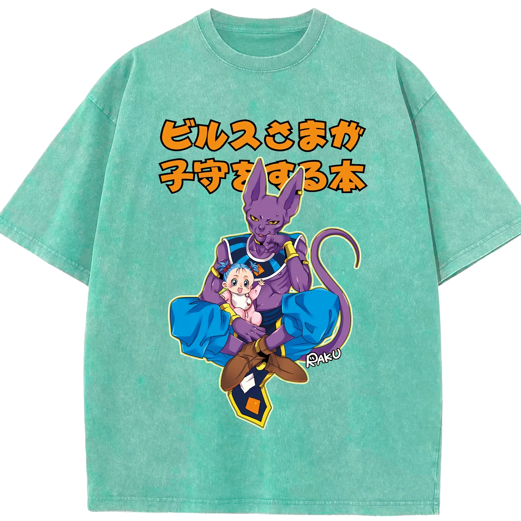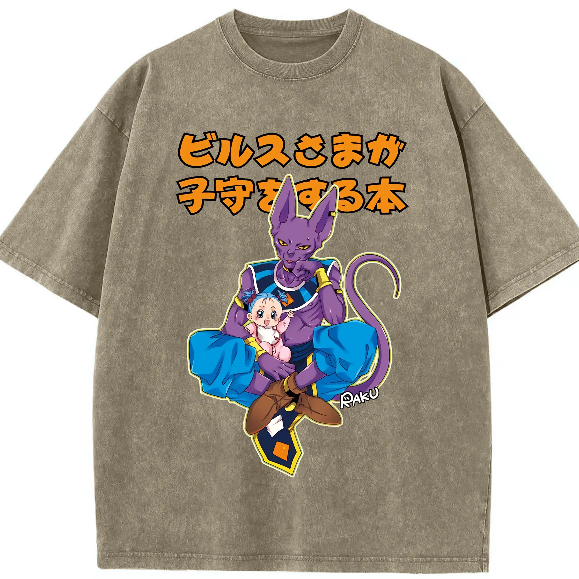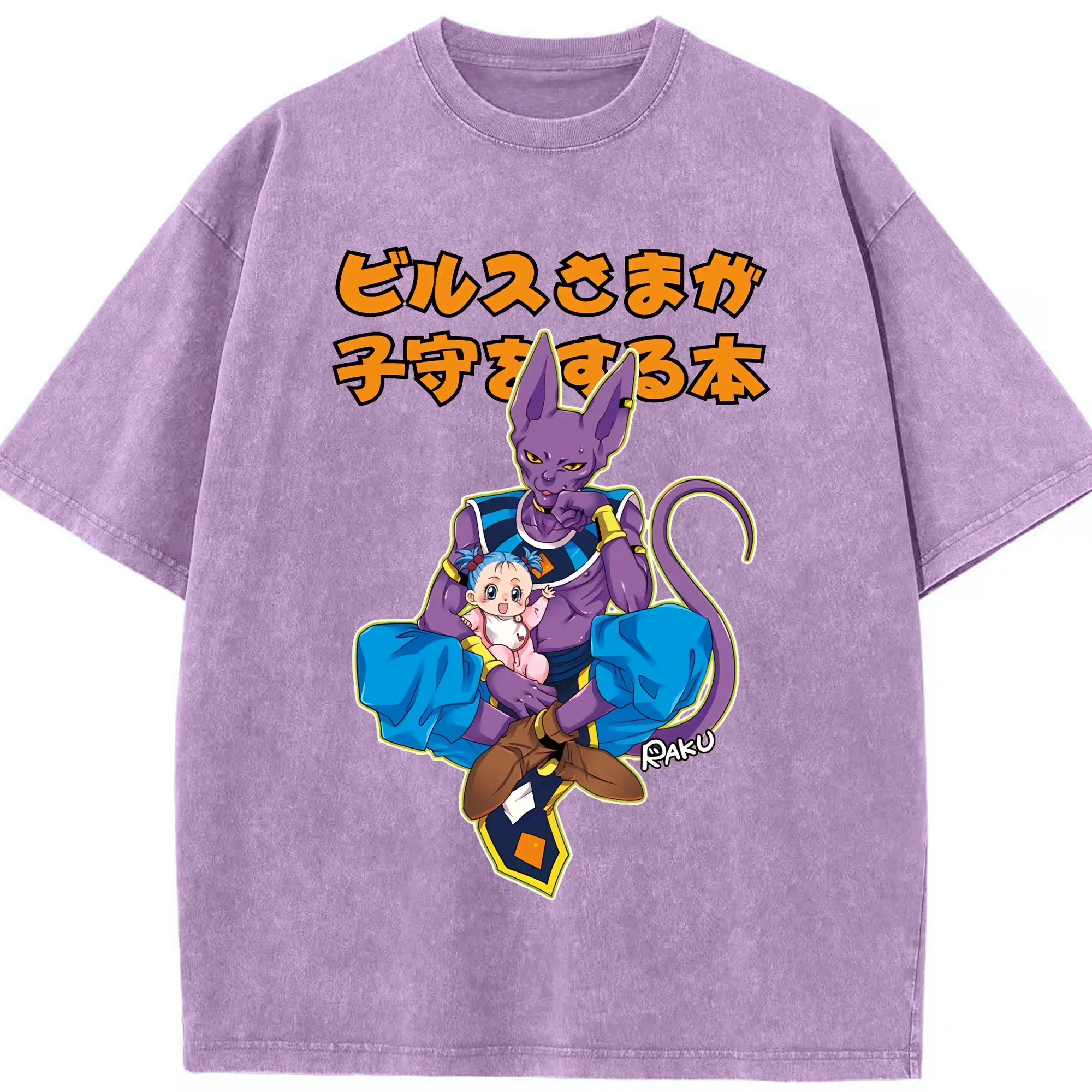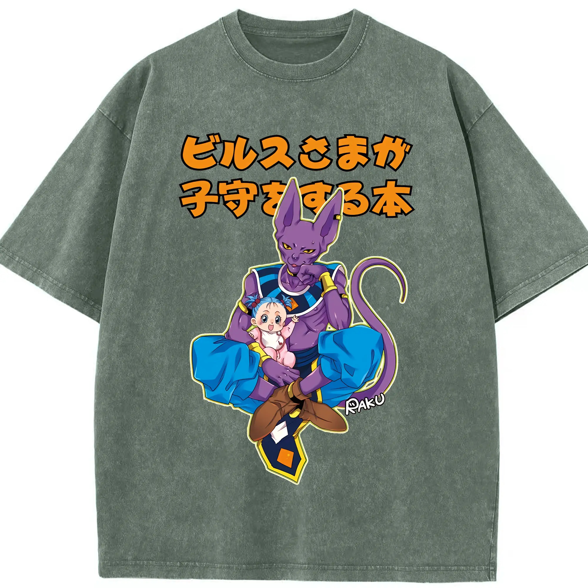 ドラゴンボール グッズ ビルス - 綿100% ヴィンテージ風 半袖Tシャツ ・ 背面プリント ・ 柔らか肌触り ・ 通気性 快適 ・ スポーツ カジュアル 外出用