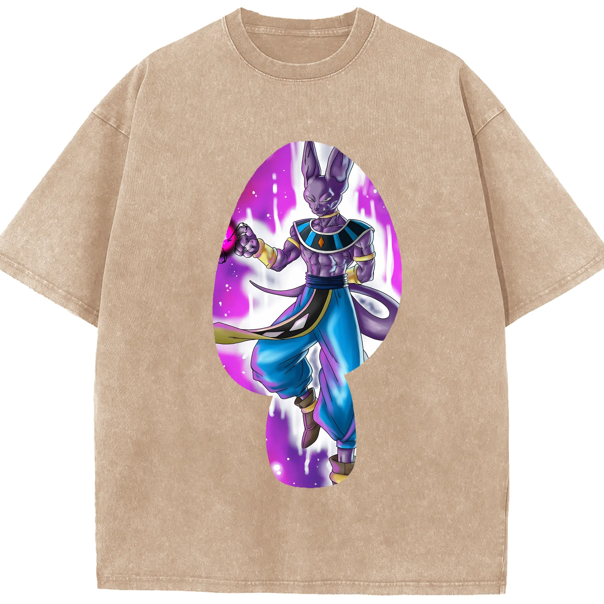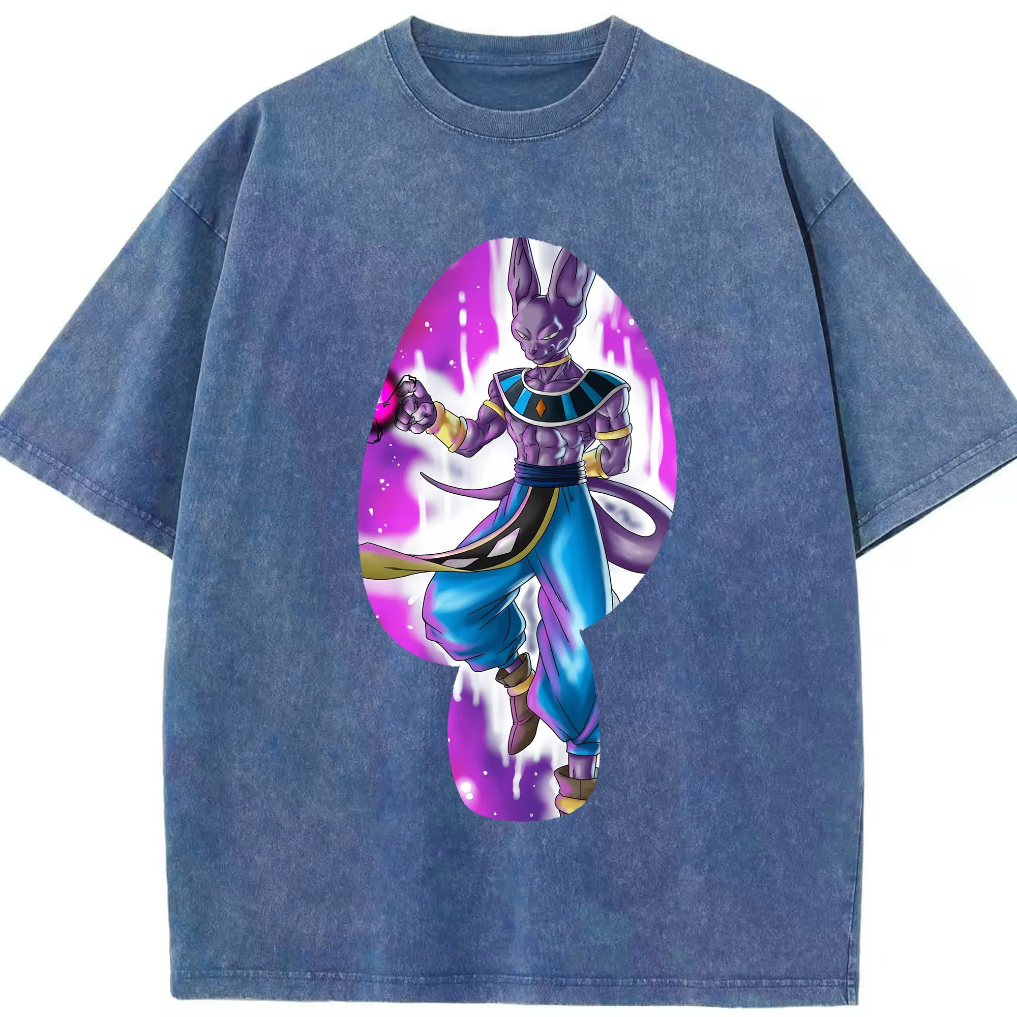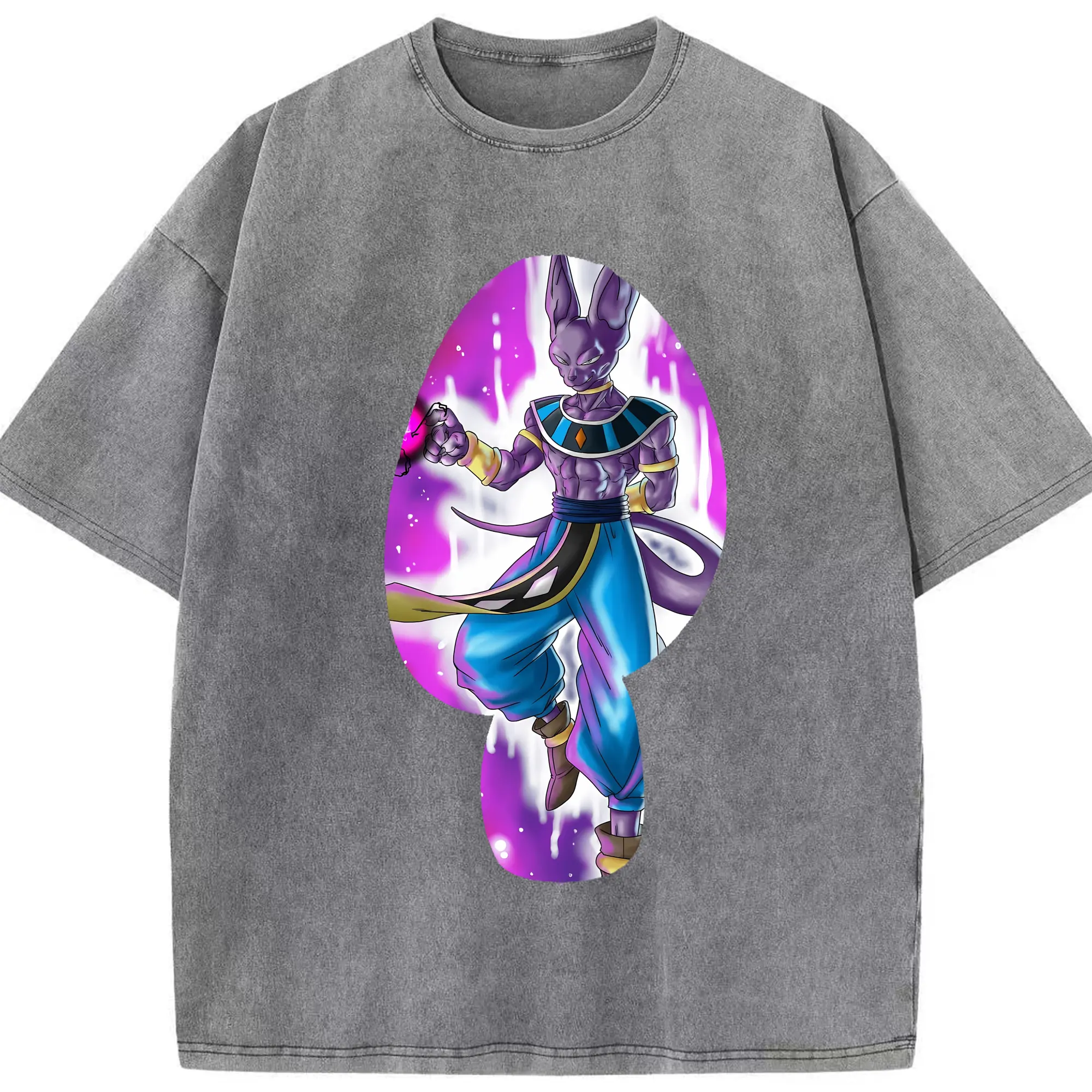 ドラゴンボール グッズ ビルス - 綿100% ヴィンテージ風 半袖Tシャツ ・ 背面プリント ・ 柔らか肌触り ・ 通気性 快適 ・ スポーツ カジュアル 外出用