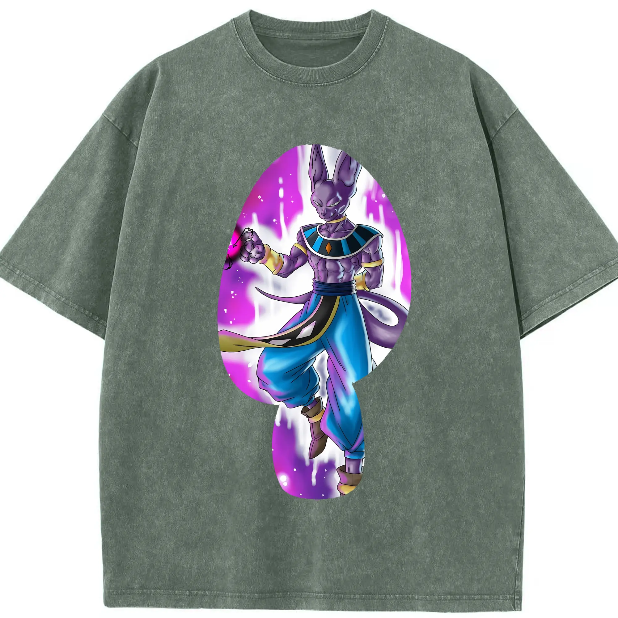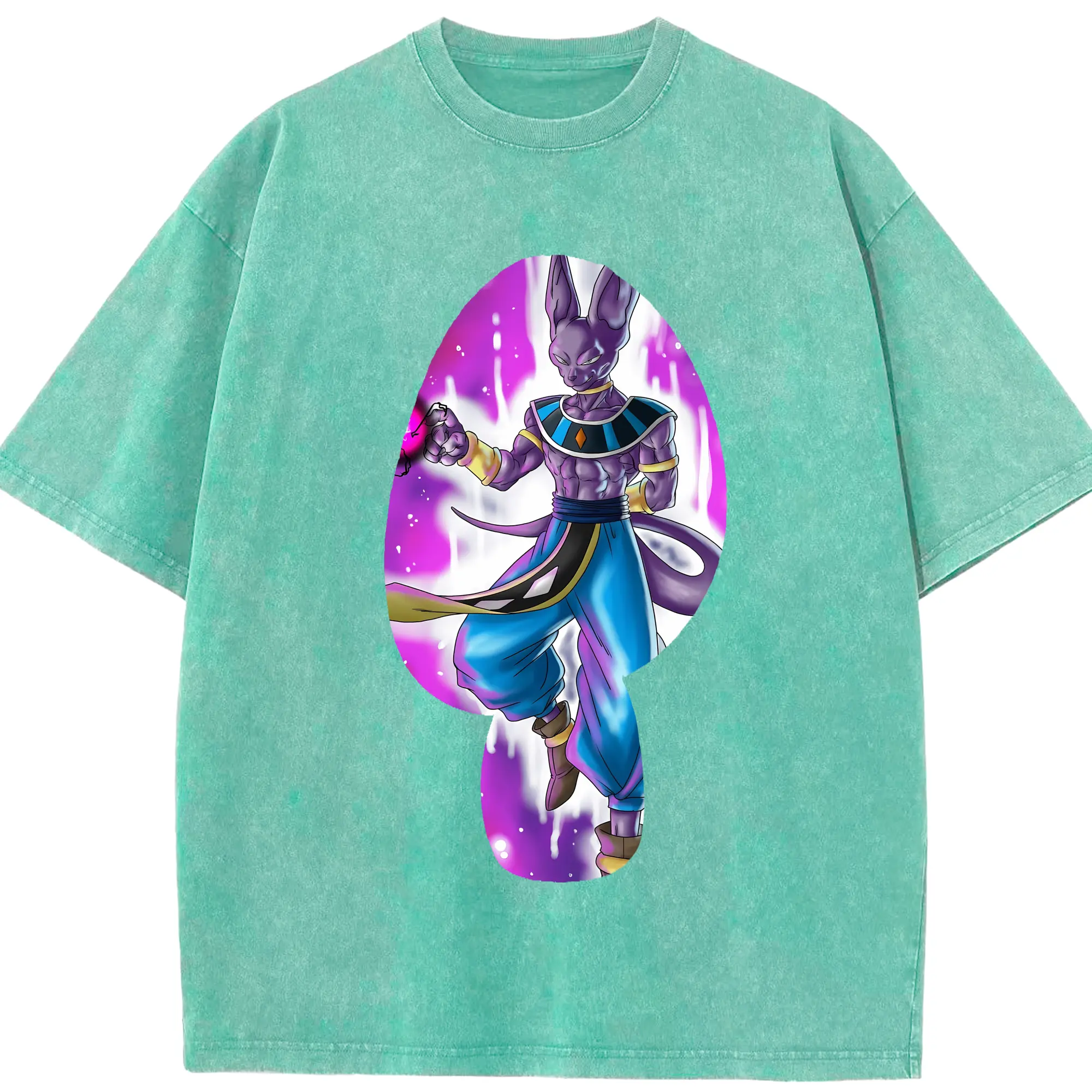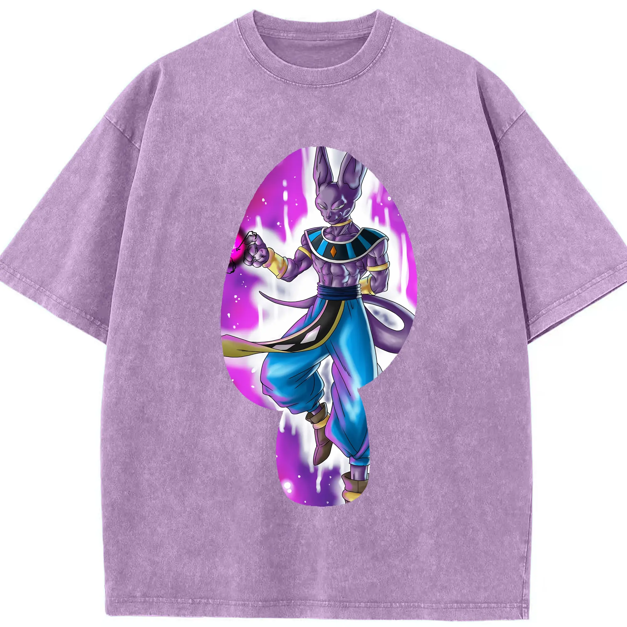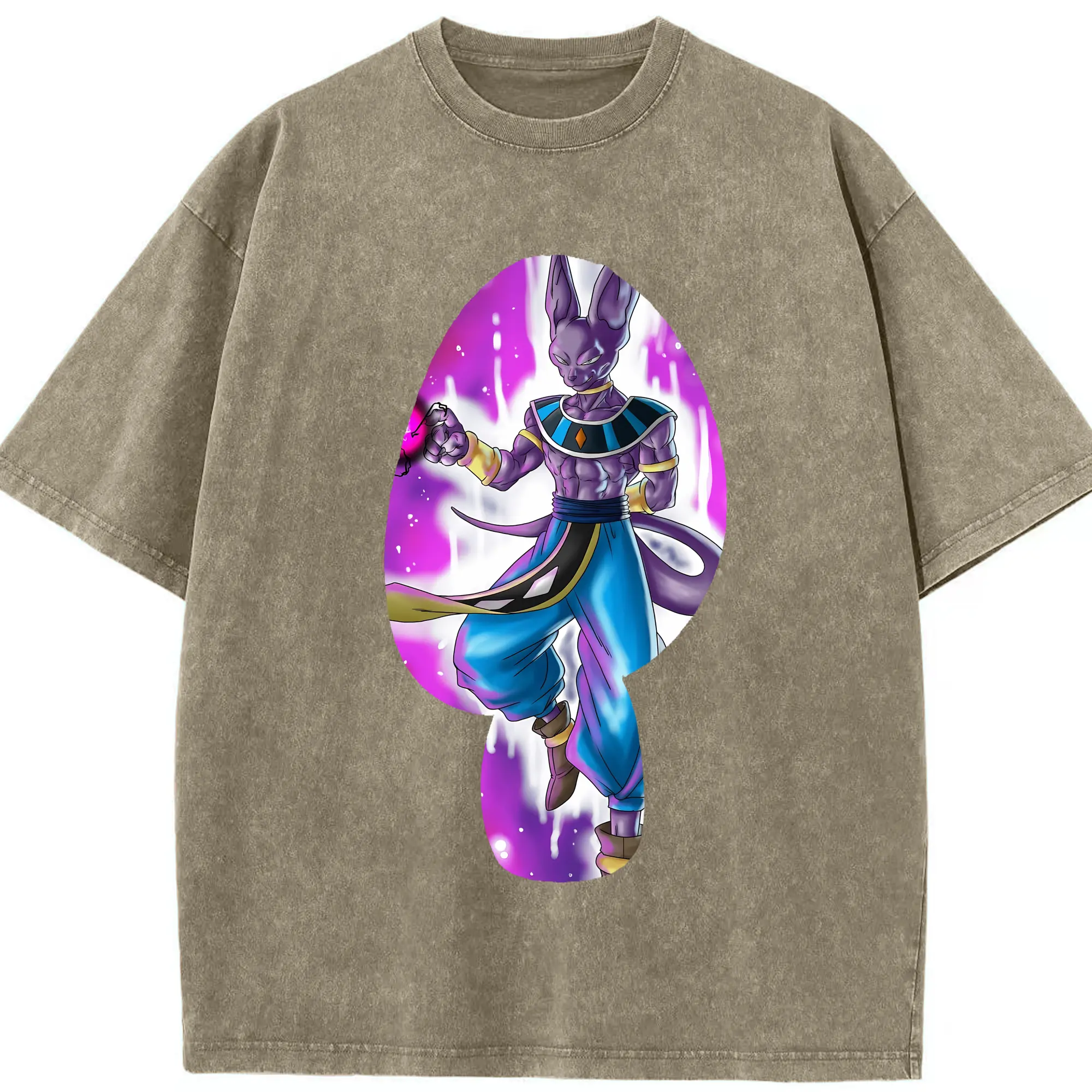 ドラゴンボール グッズ ビルス - 綿100% ヴィンテージ風 半袖Tシャツ ・ 背面プリント ・ 柔らか肌触り ・ 通気性 快適 ・ スポーツ カジュアル 外出用