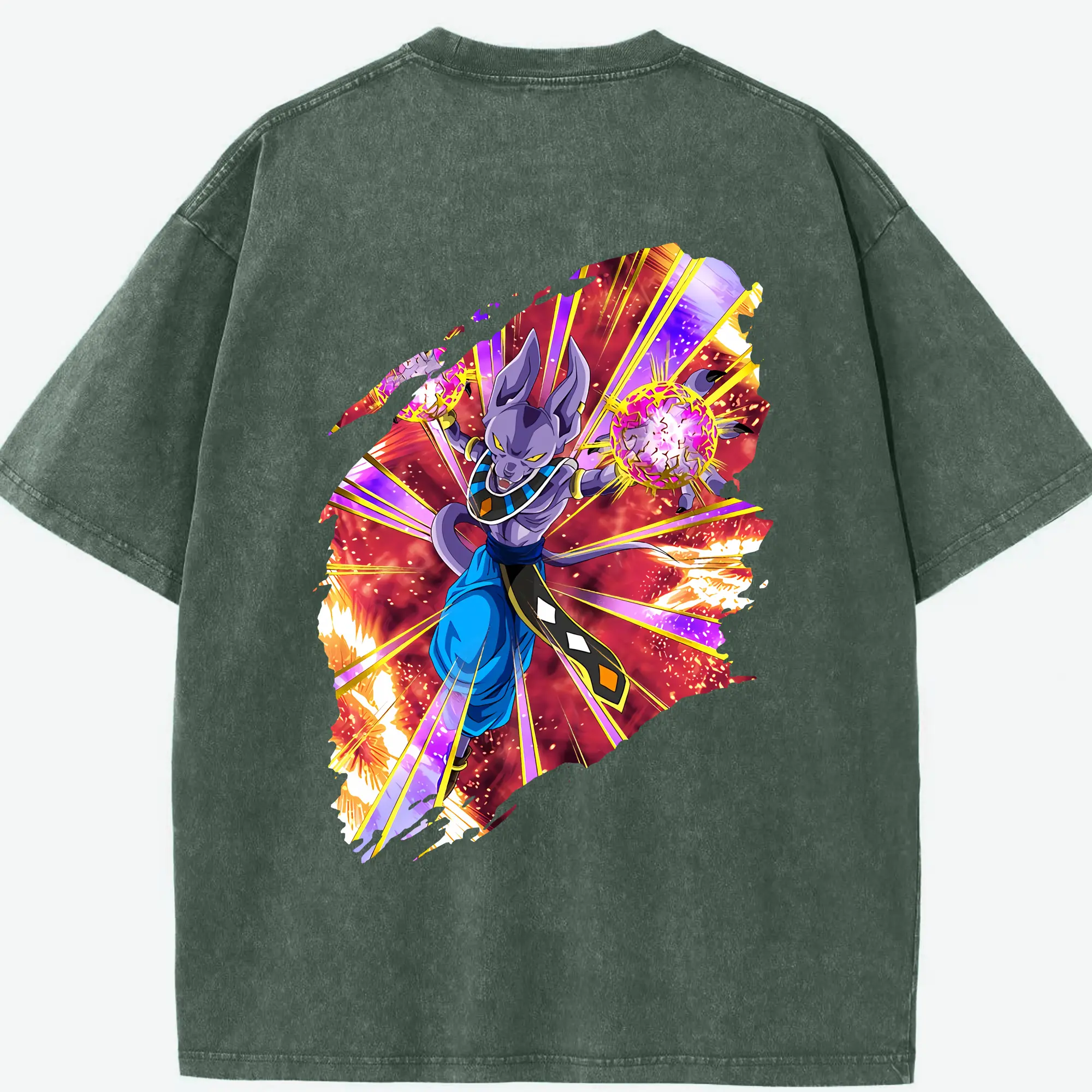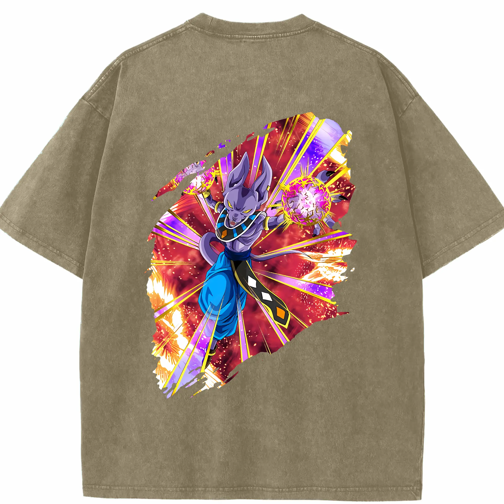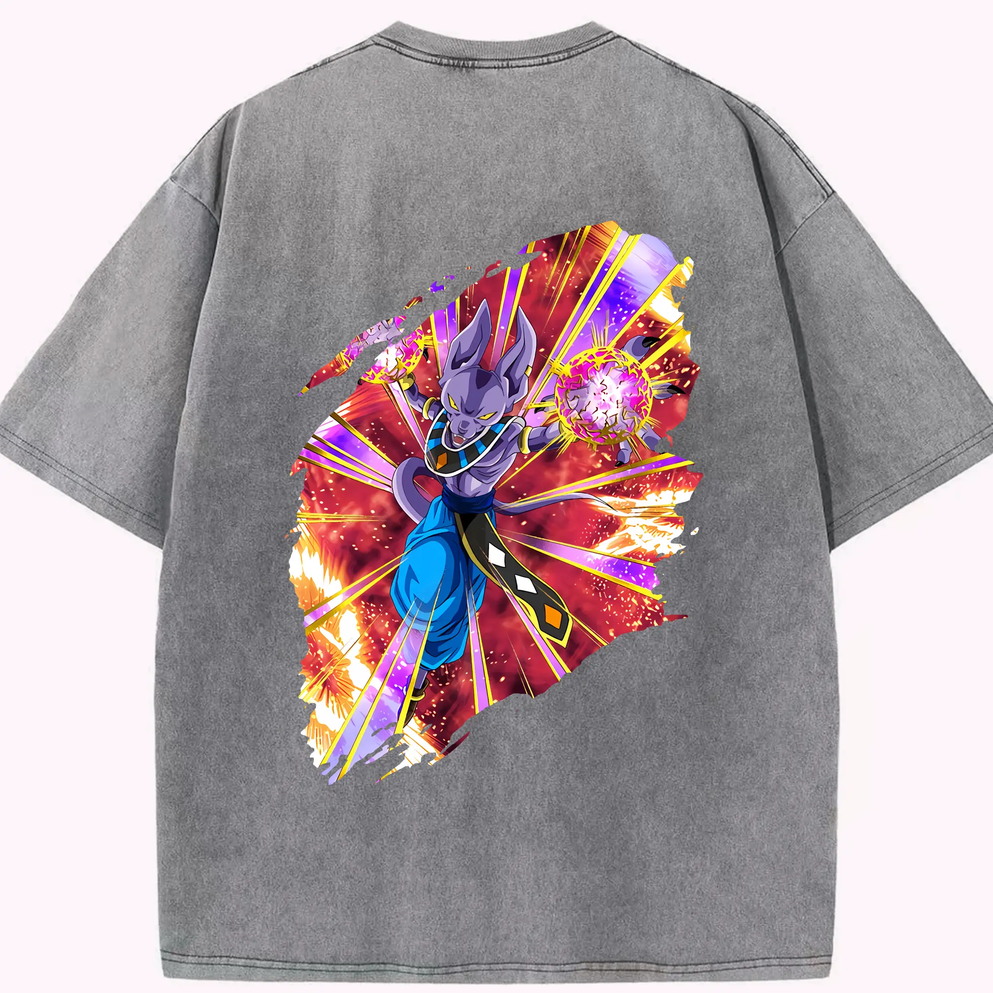 ドラゴンボール グッズ ビルス - 綿100% ヴィンテージ風 半袖Tシャツ ・ フロントプリント ・ 柔らか肌触り ・ 通気性 快適 ・ スポーツ カジュアル 外出用