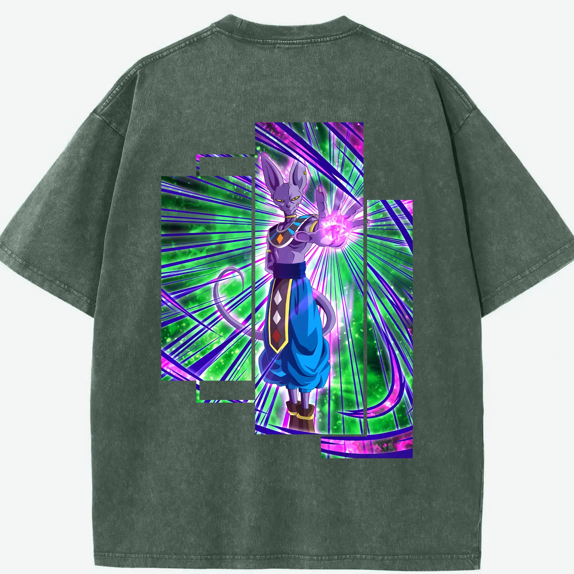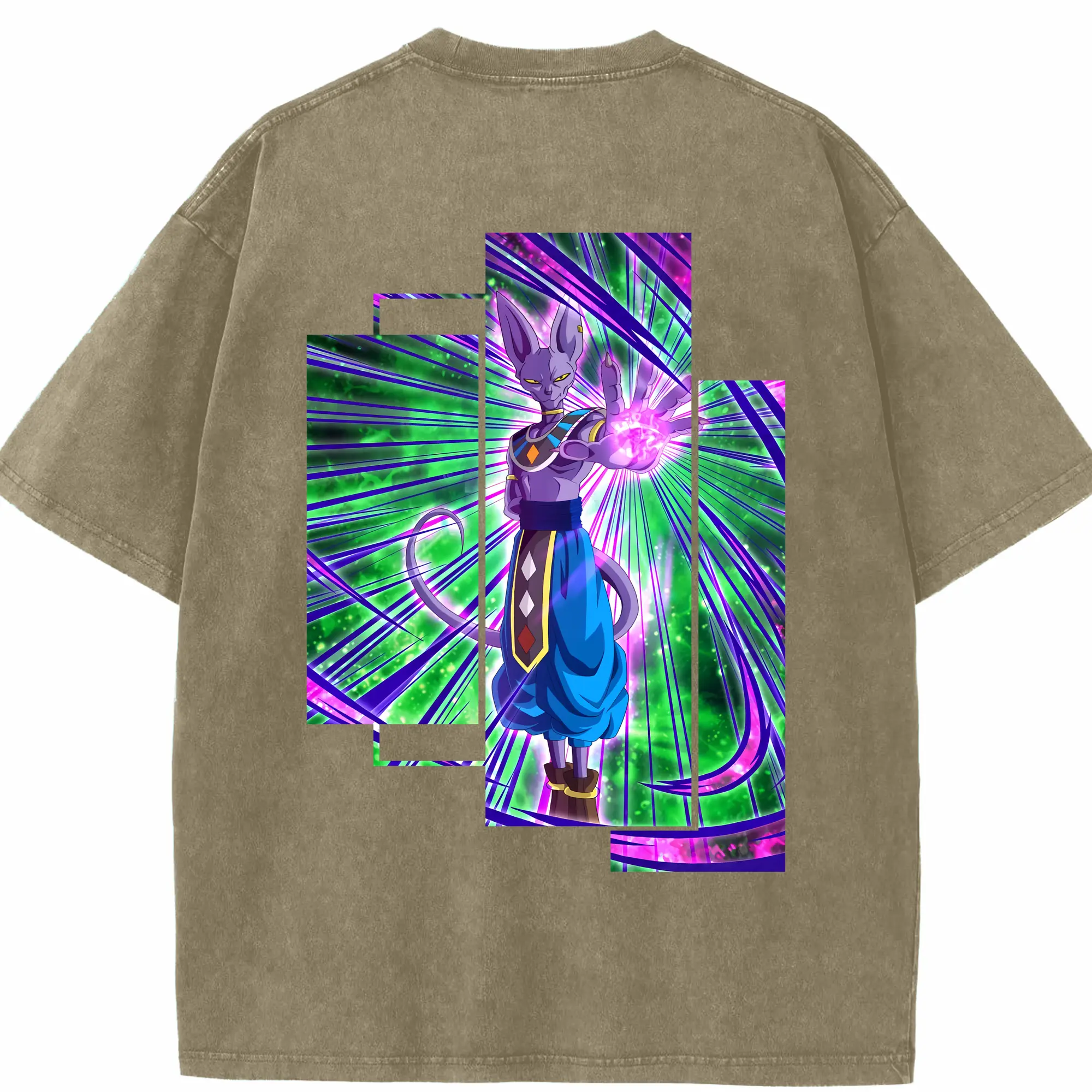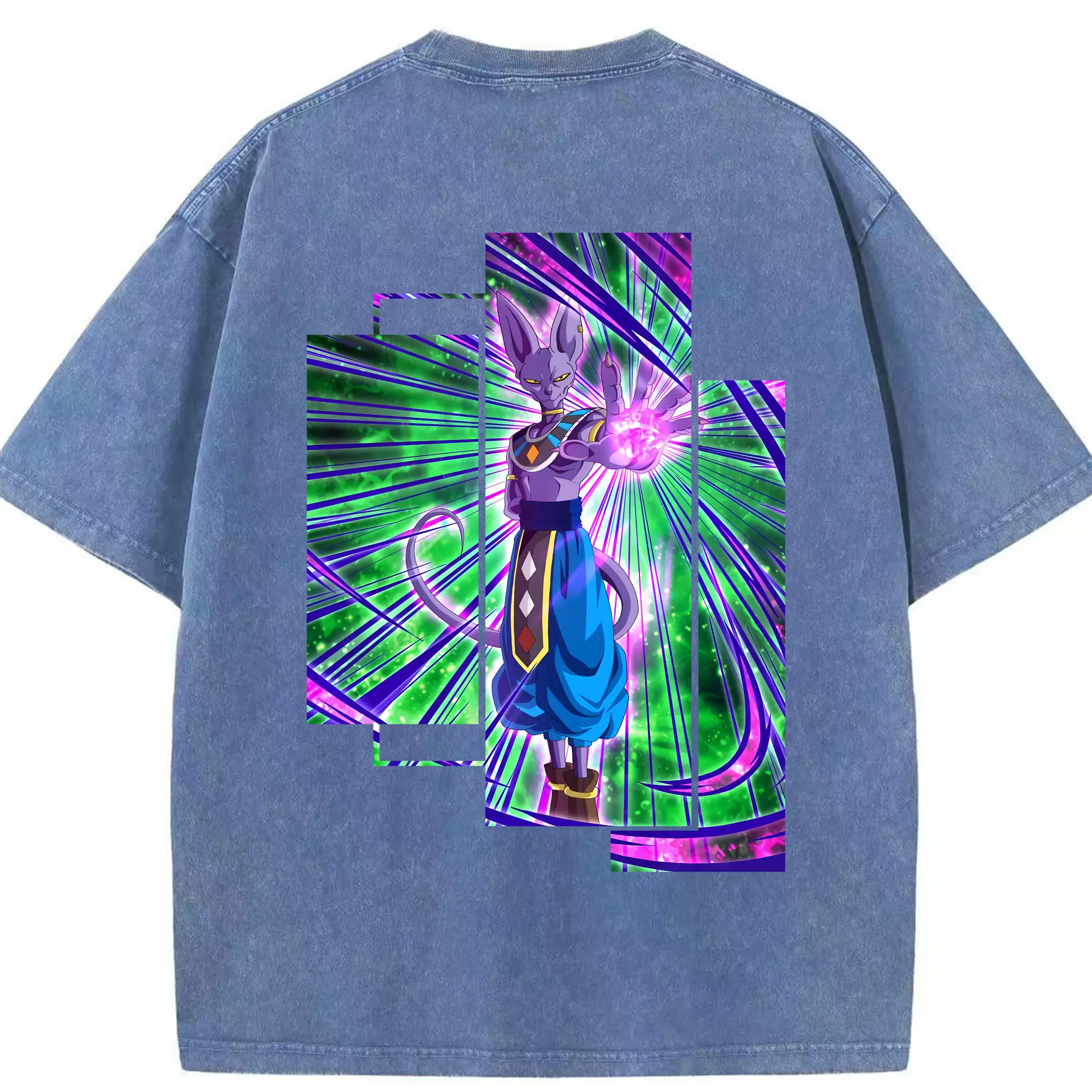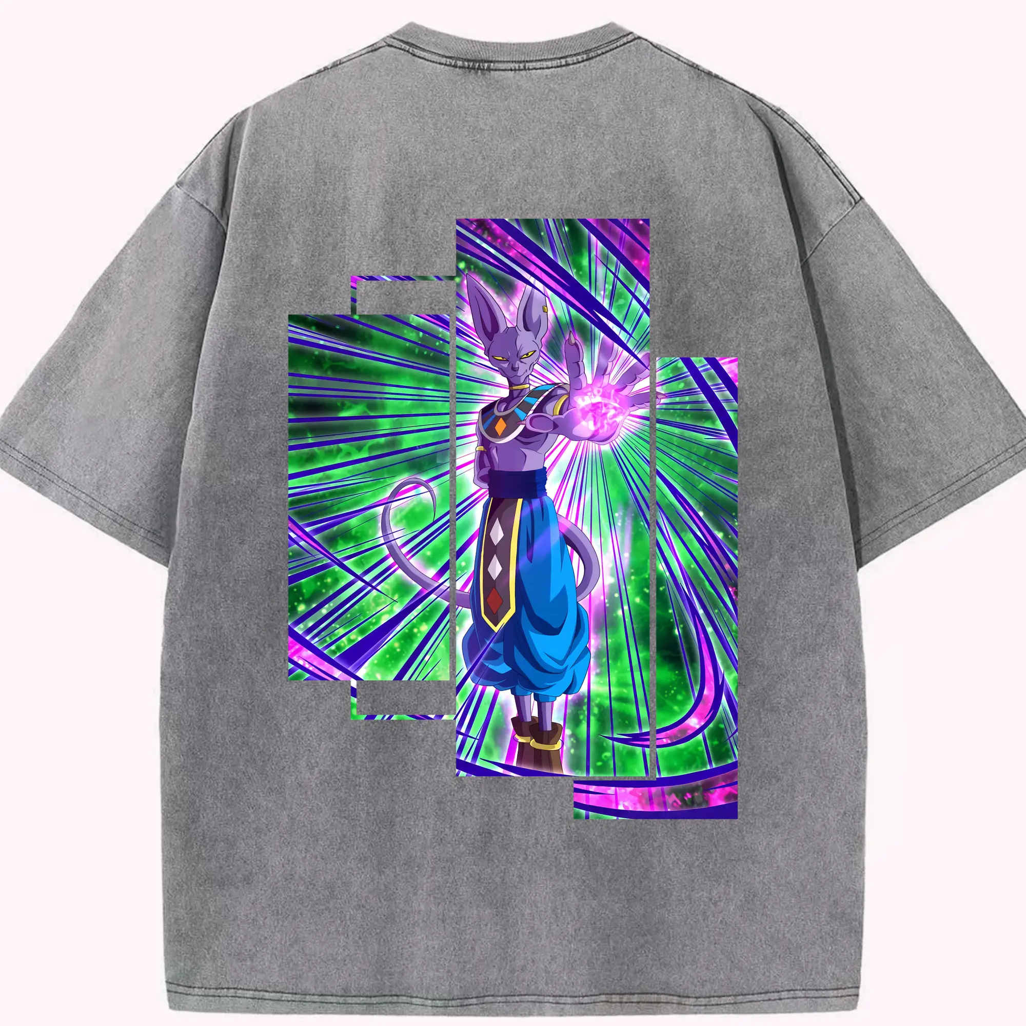ドラゴンボール グッズ ビルス - 綿100% ヴィンテージ風 半袖Tシャツ ・ フロントプリント ・ 柔らか肌触り ・ 通気性 快適 ・ スポーツ カジュアル 外出用