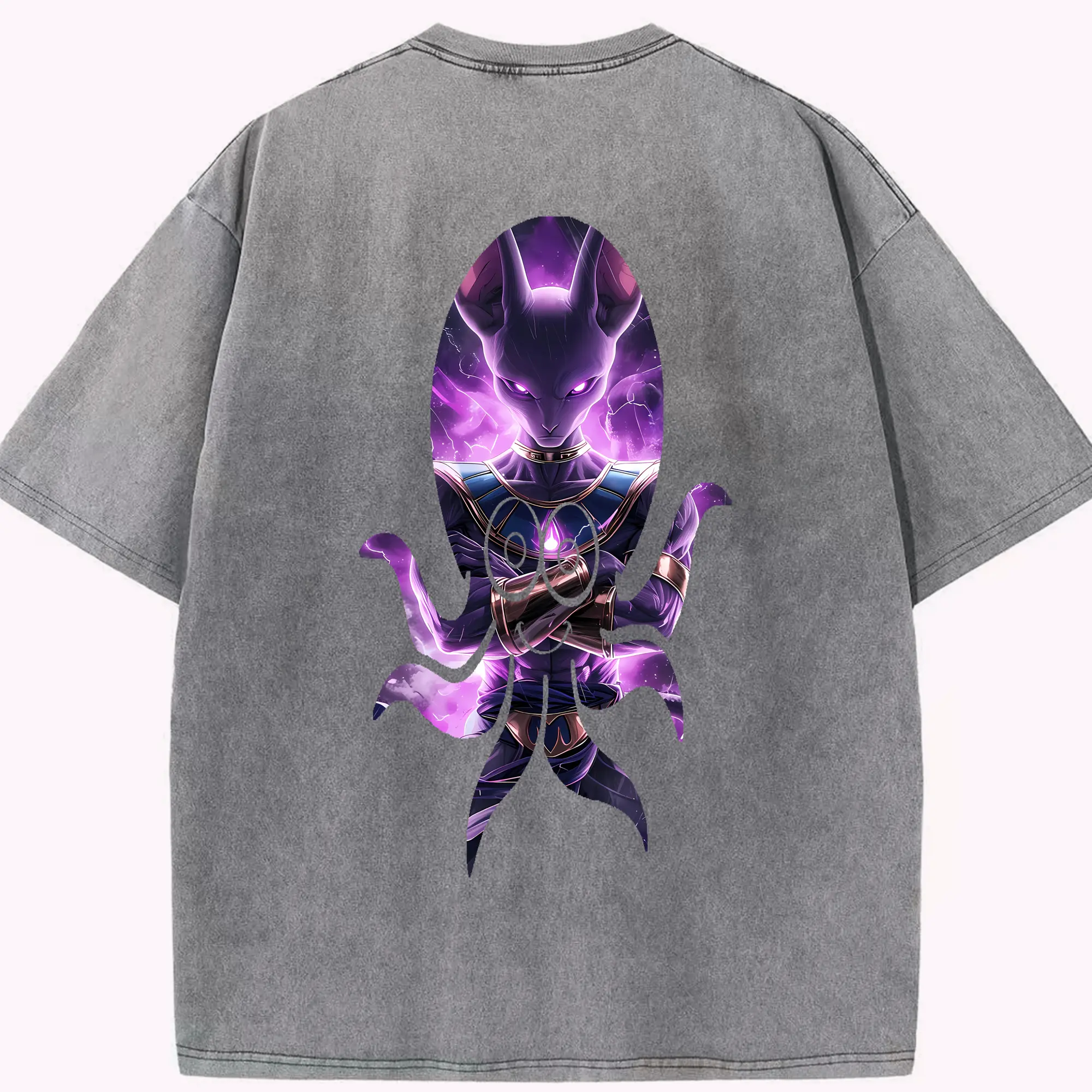 ドラゴンボール グッズ ビルス - 綿100% ヴィンテージ風 半袖Tシャツ ・ フロントプリント ・ 柔らか肌触り ・ 通気性 快適 ・ スポーツ カジュアル 外出用