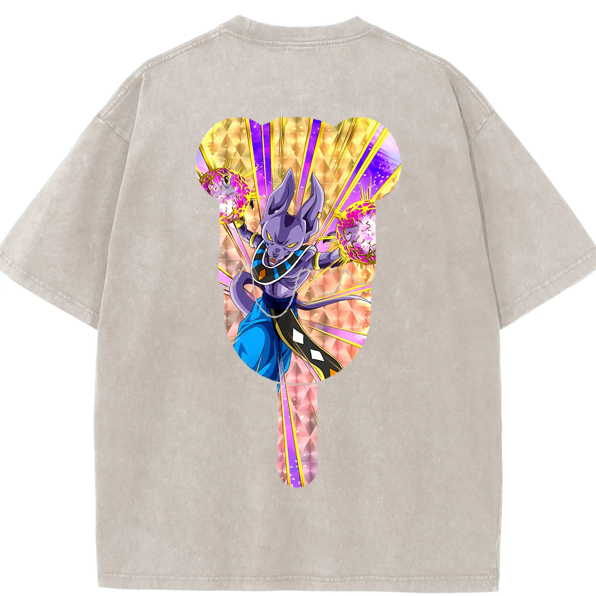 ドラゴンボール グッズ ビルス - 綿100% ヴィンテージ風 半袖Tシャツ ・ 背面プリント ・ 柔らか肌触り ・ 通気性 快適 ・ スポーツ カジュアル 外出用
