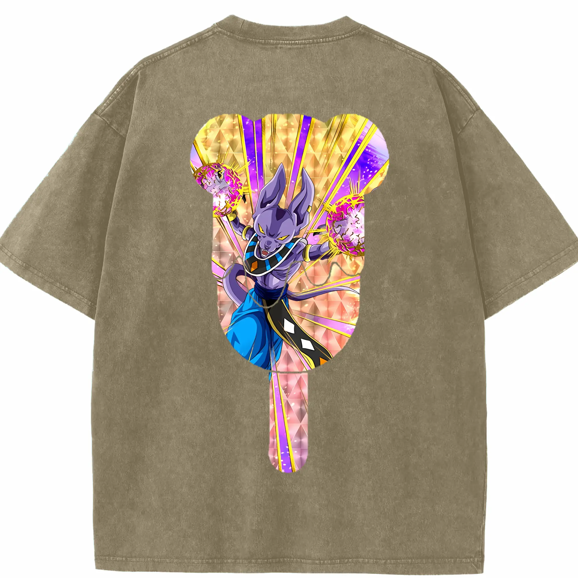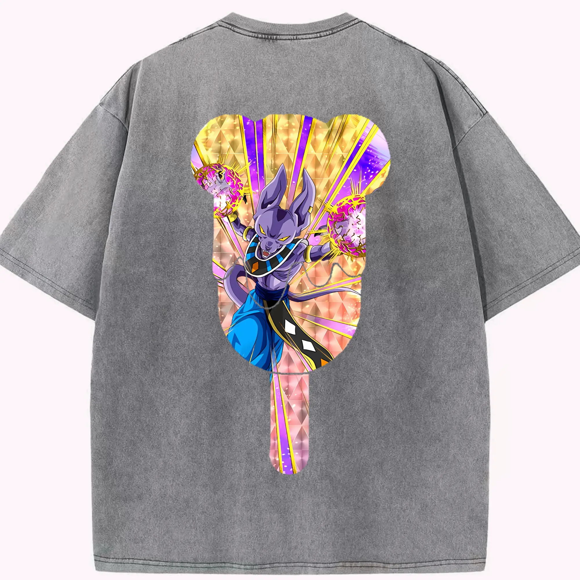 ドラゴンボール グッズ ビルス - 綿100% ヴィンテージ風 半袖Tシャツ ・ フロントプリント ・ 柔らか肌触り ・ 通気性 快適 ・ スポーツ カジュアル 外出用