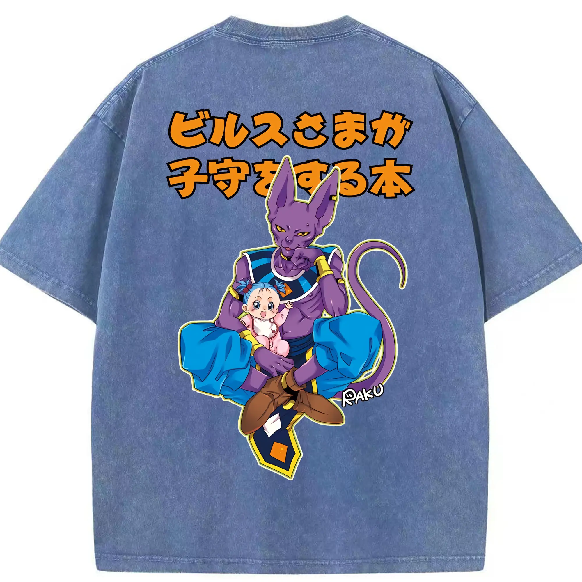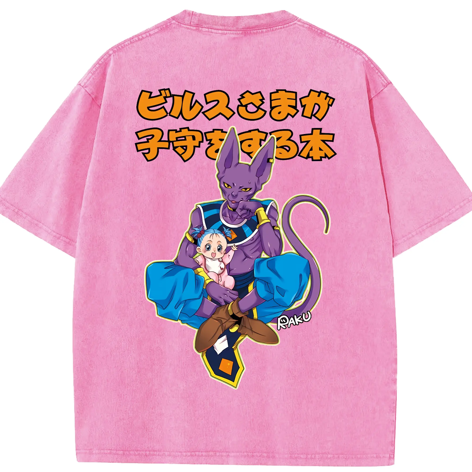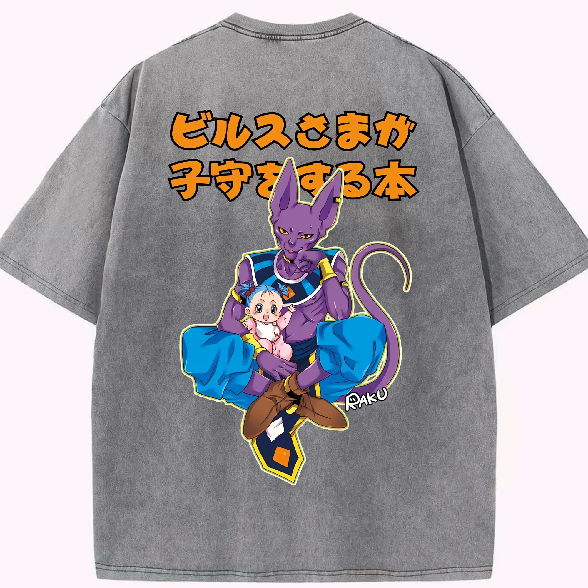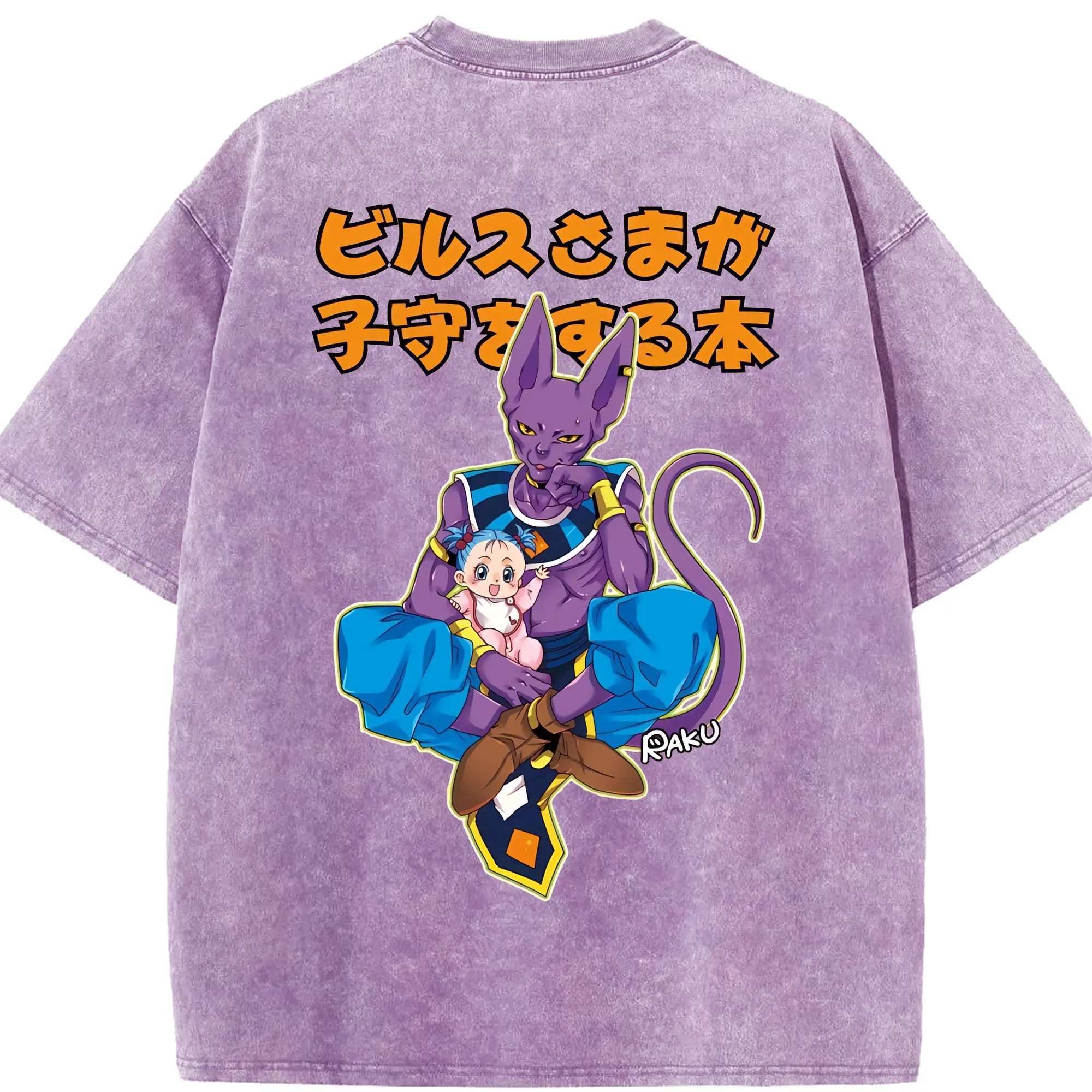 ドラゴンボール グッズ ビルス - 綿100% ヴィンテージ風 半袖Tシャツ ・ フロントプリント ・ 柔らか肌触り ・ 通気性 快適 ・ スポーツ カジュアル 外出用