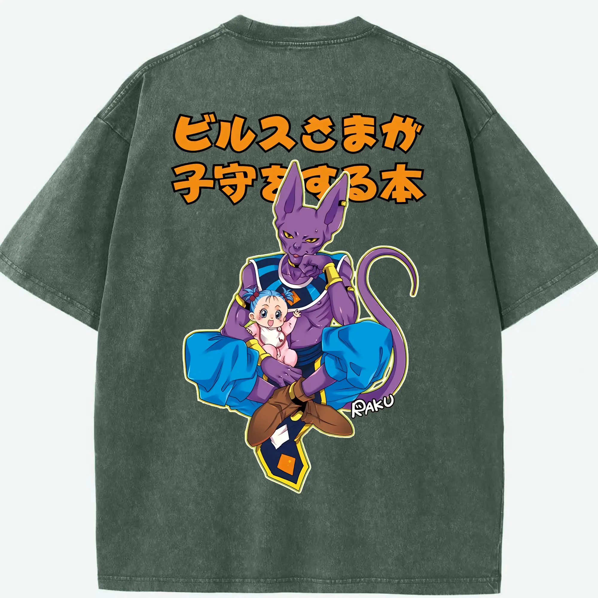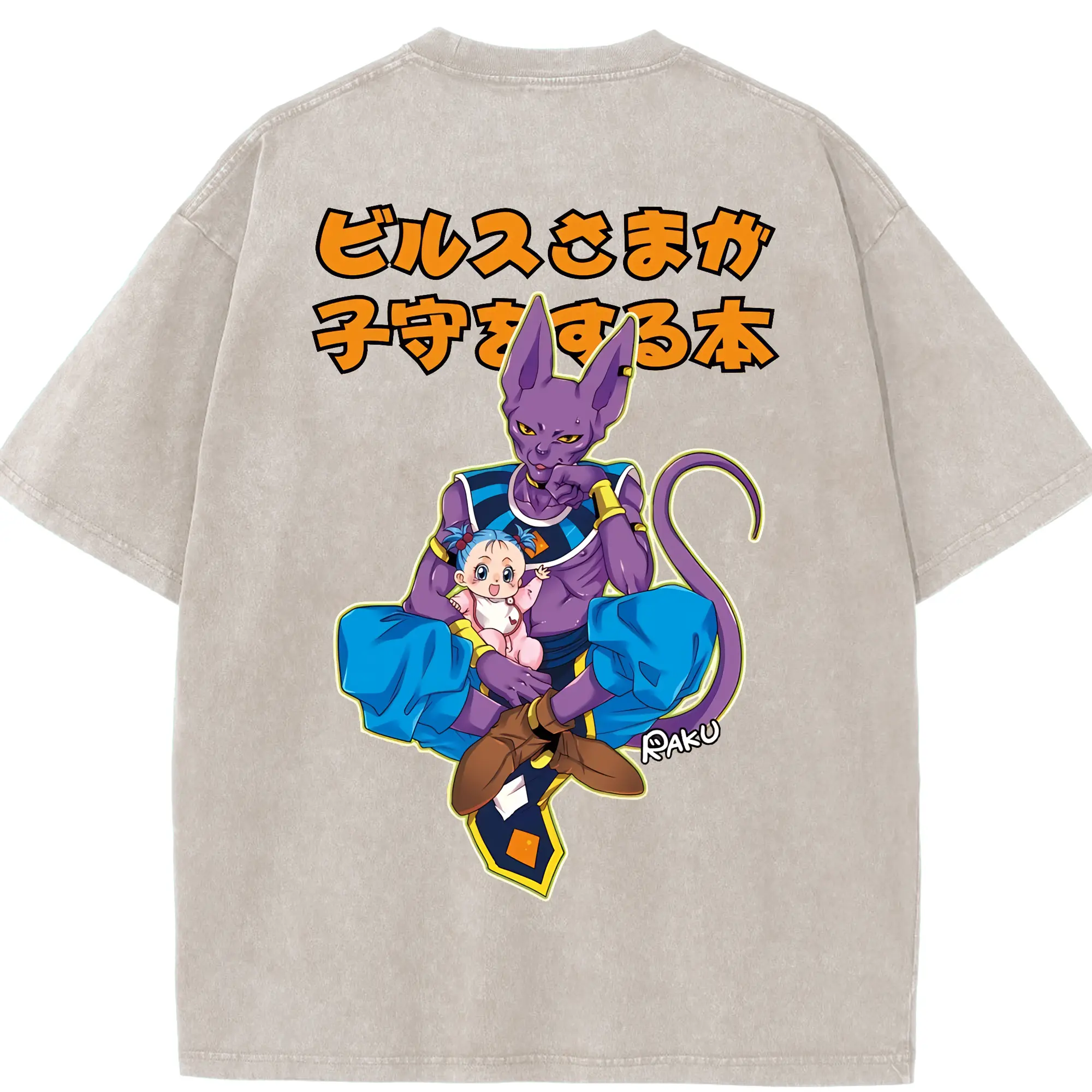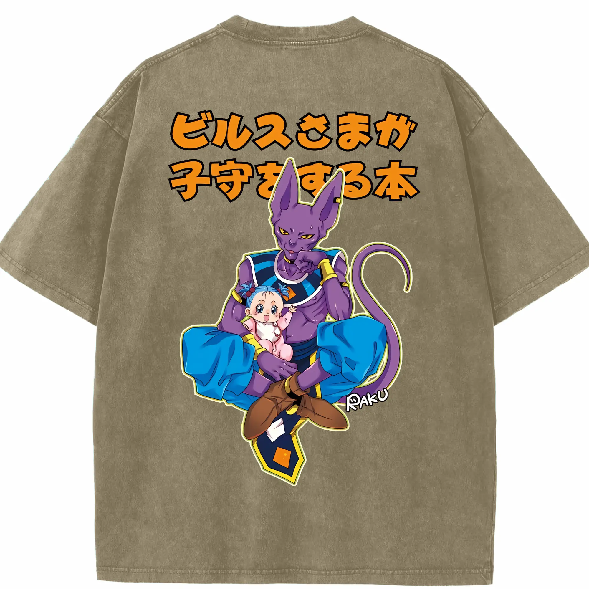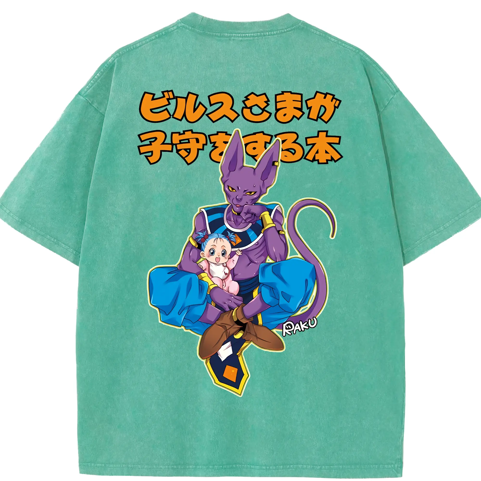 ドラゴンボール グッズ ビルス - 綿100% ヴィンテージ風 半袖Tシャツ ・ フロントプリント ・ 柔らか肌触り ・ 通気性 快適 ・ スポーツ カジュアル 外出用