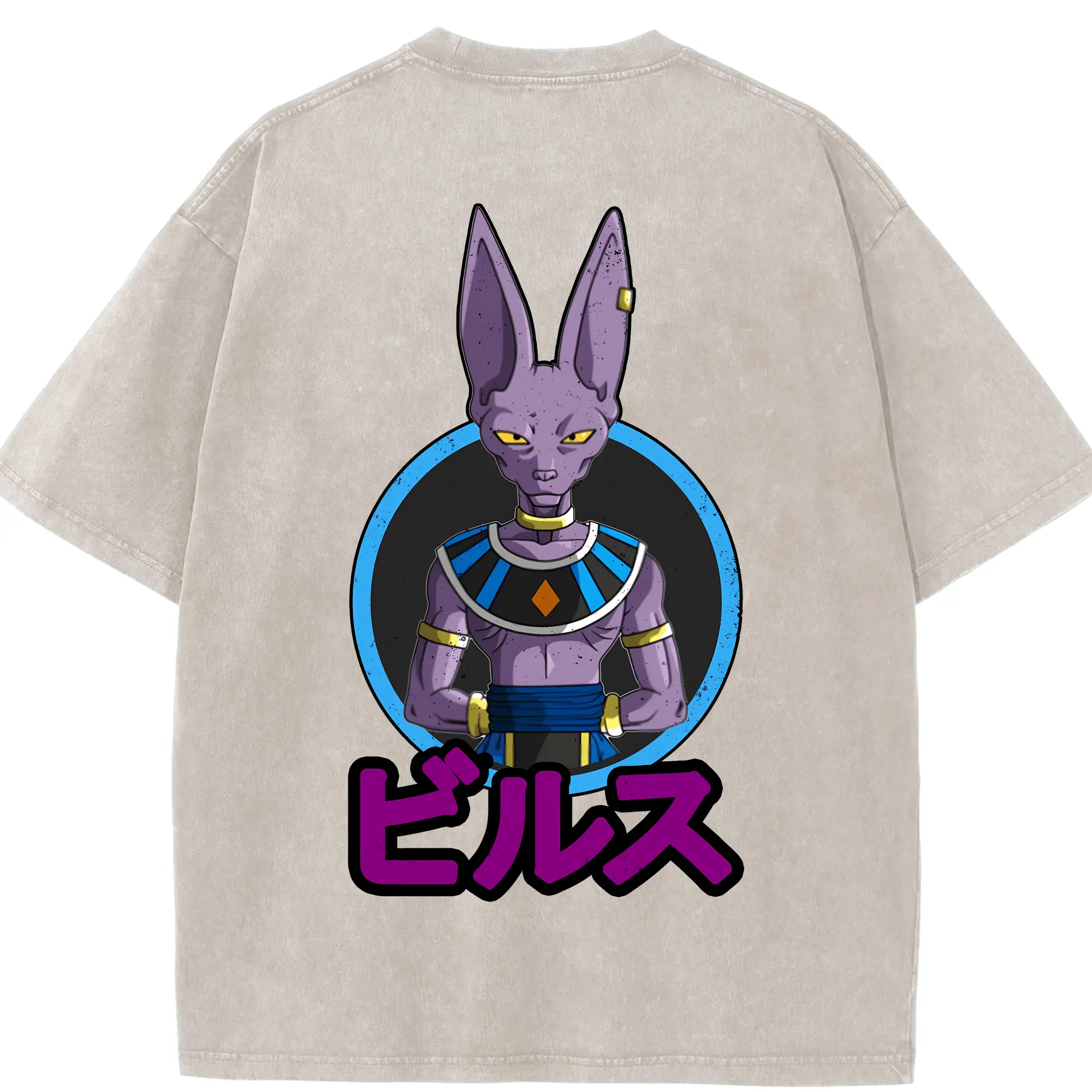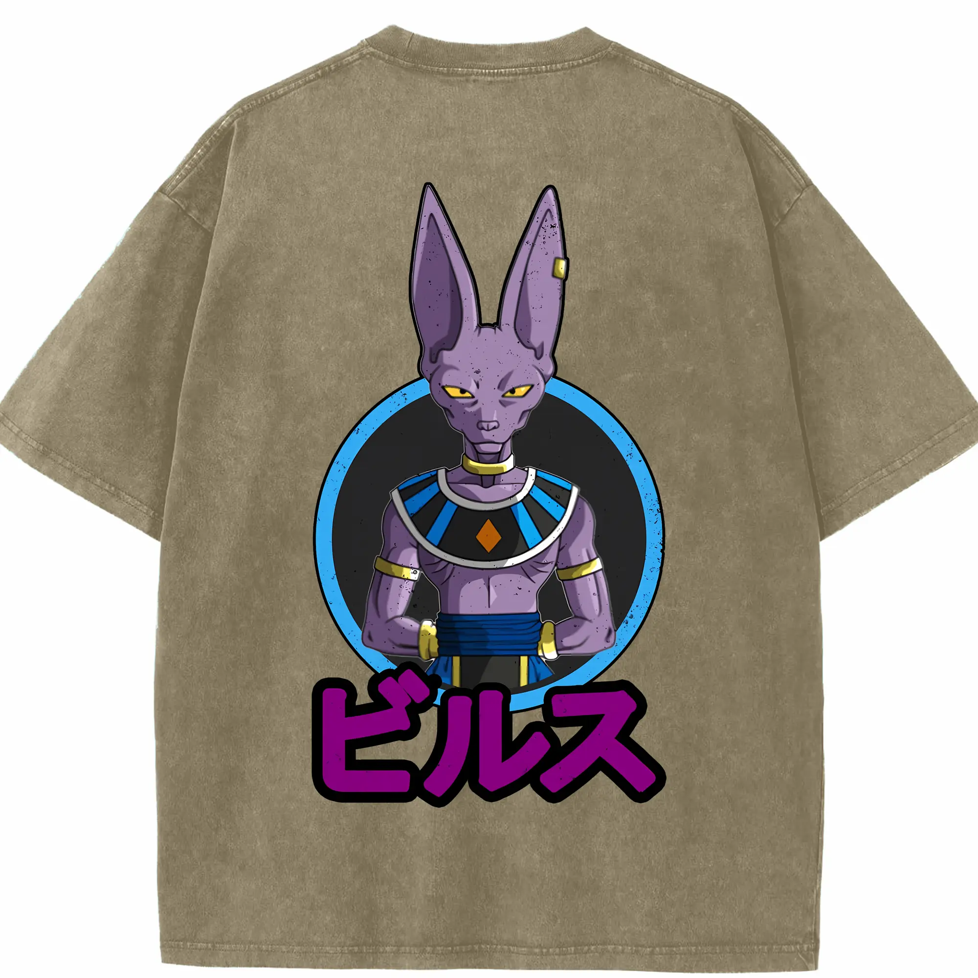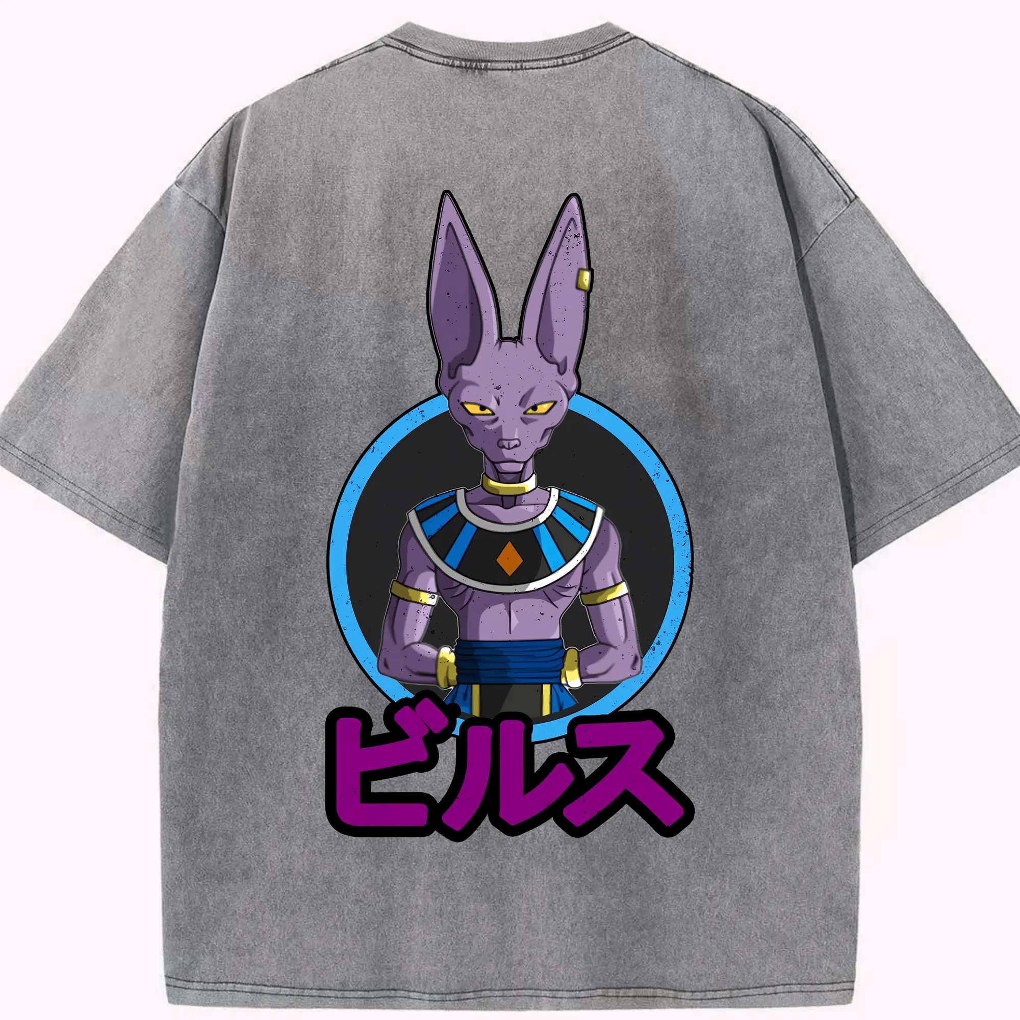 ドラゴンボール グッズ ビルス - 綿100% ヴィンテージ風 半袖Tシャツ ・ フロントプリント ・ 柔らか肌触り ・ 通気性 快適 ・ スポーツ カジュアル 外出用
