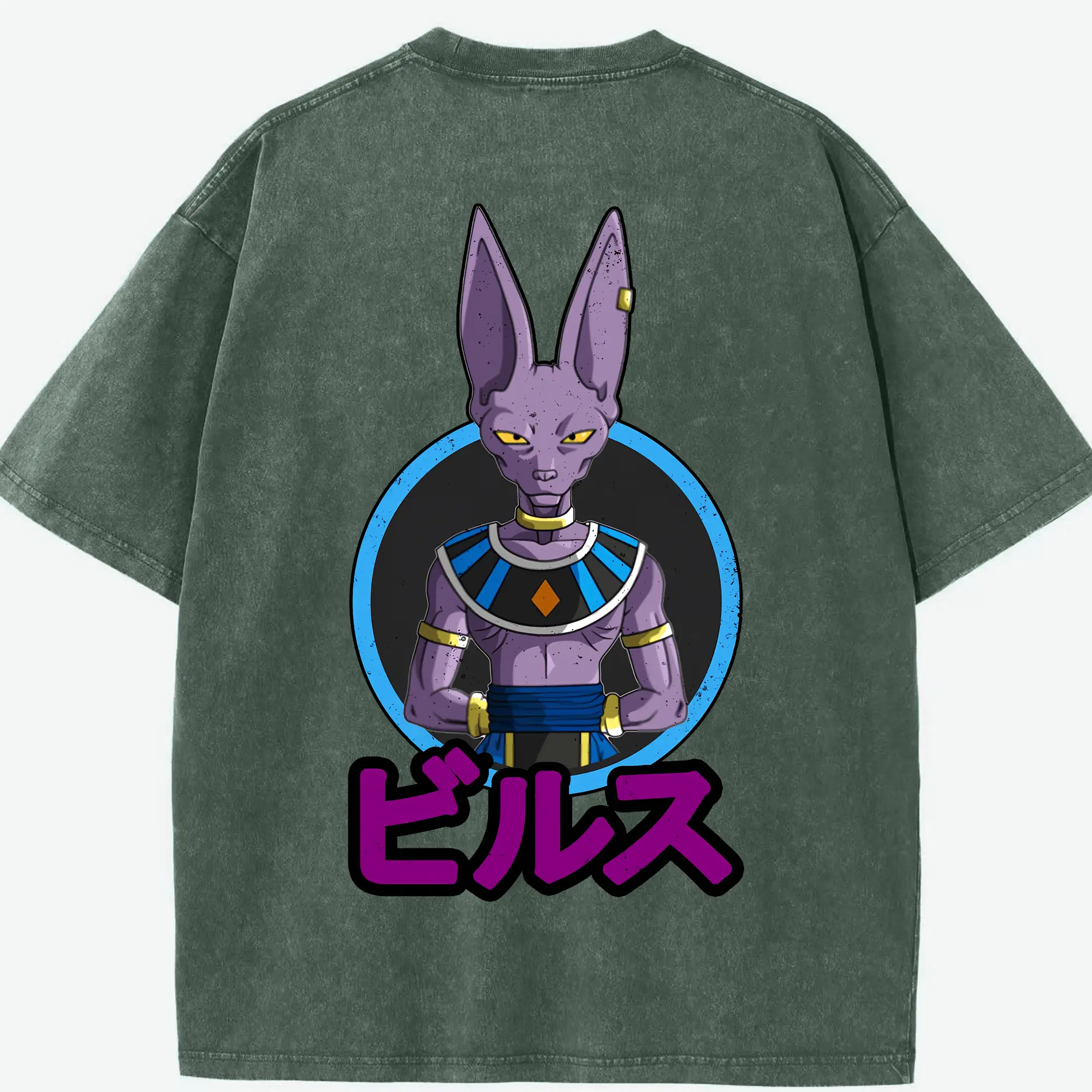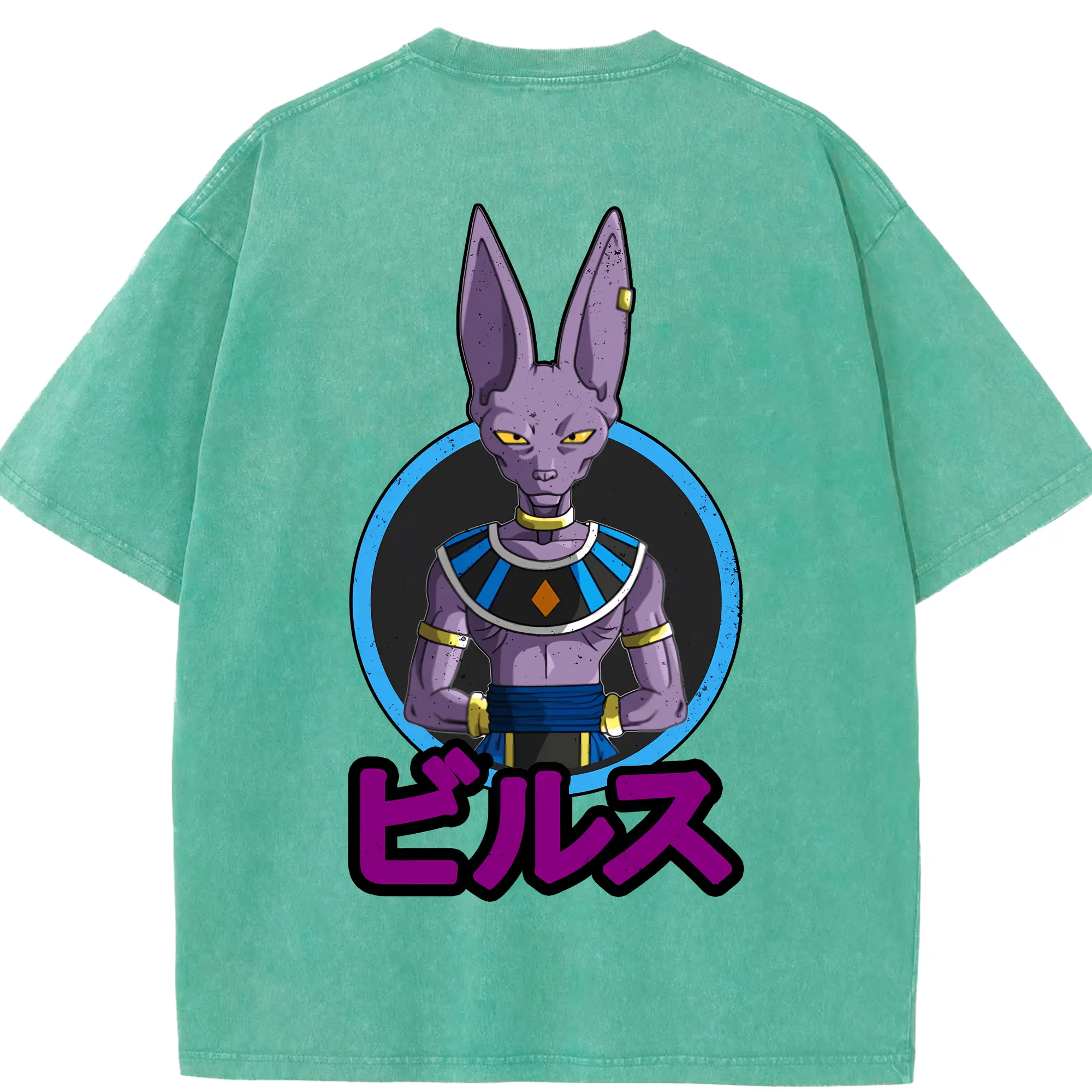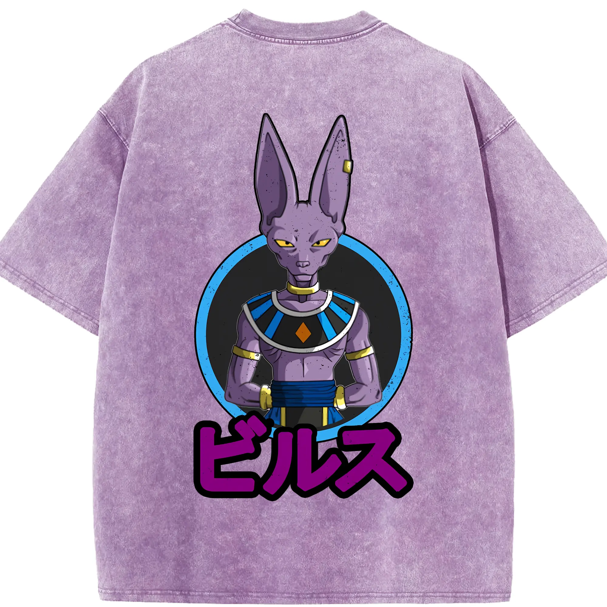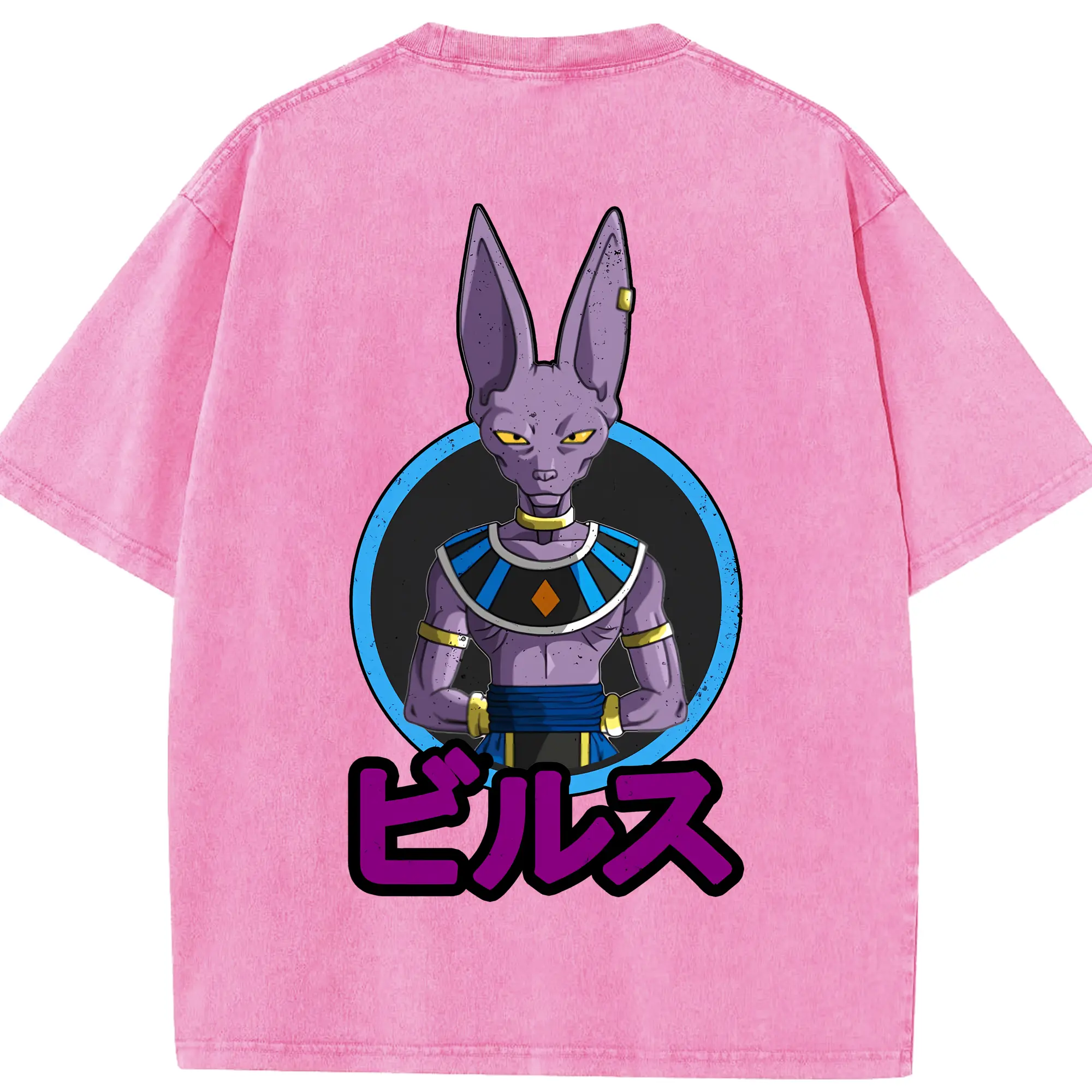 ドラゴンボール グッズ ビルス - 綿100% ヴィンテージ風 半袖Tシャツ ・ フロントプリント ・ 柔らか肌触り ・ 通気性 快適 ・ スポーツ カジュアル 外出用