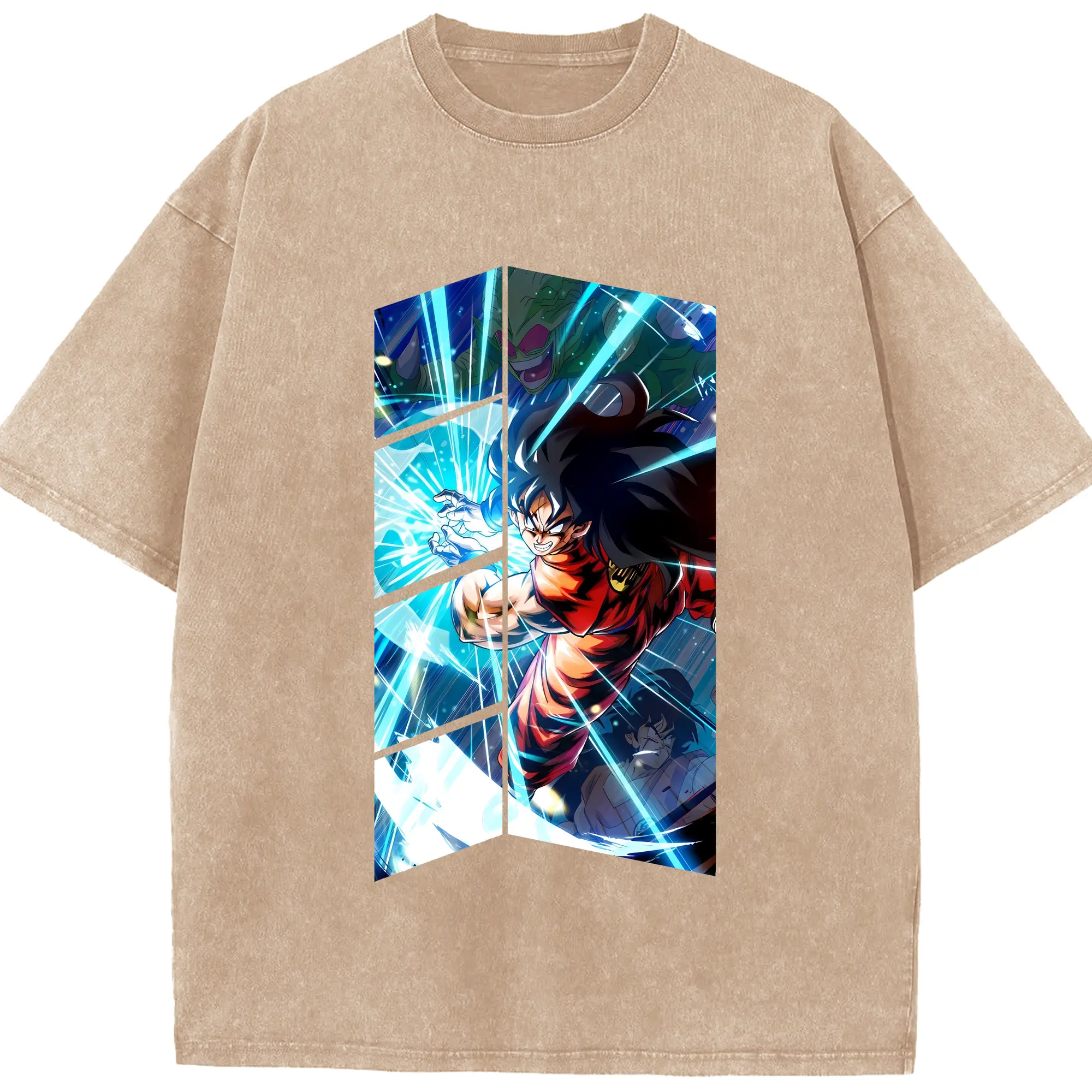 ドラゴンボール グッズ 孫 悟空 - 綿100% ヴィンテージ風 半袖Tシャツ ・ フロントプリント ・ 柔らか肌触り ・ 通気性 快適 ・ スポーツ カジュアル 外出用