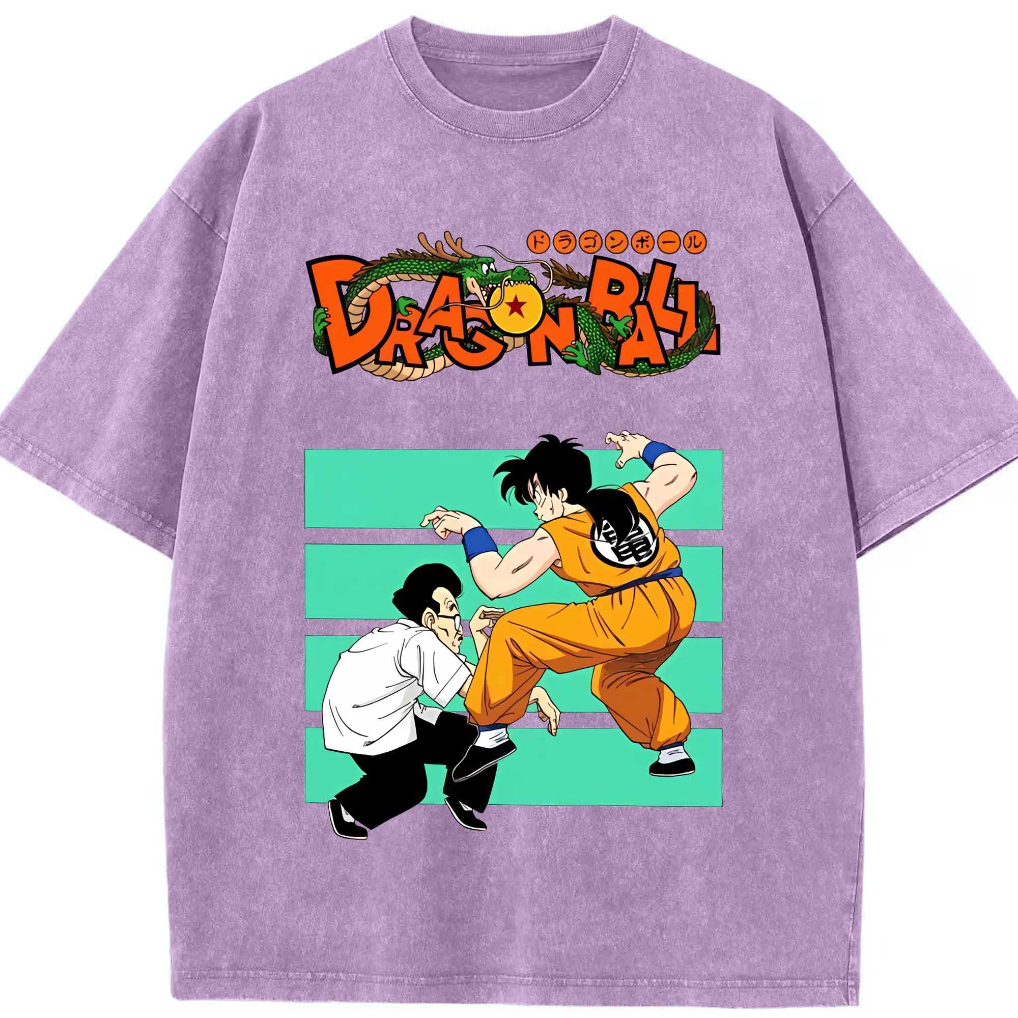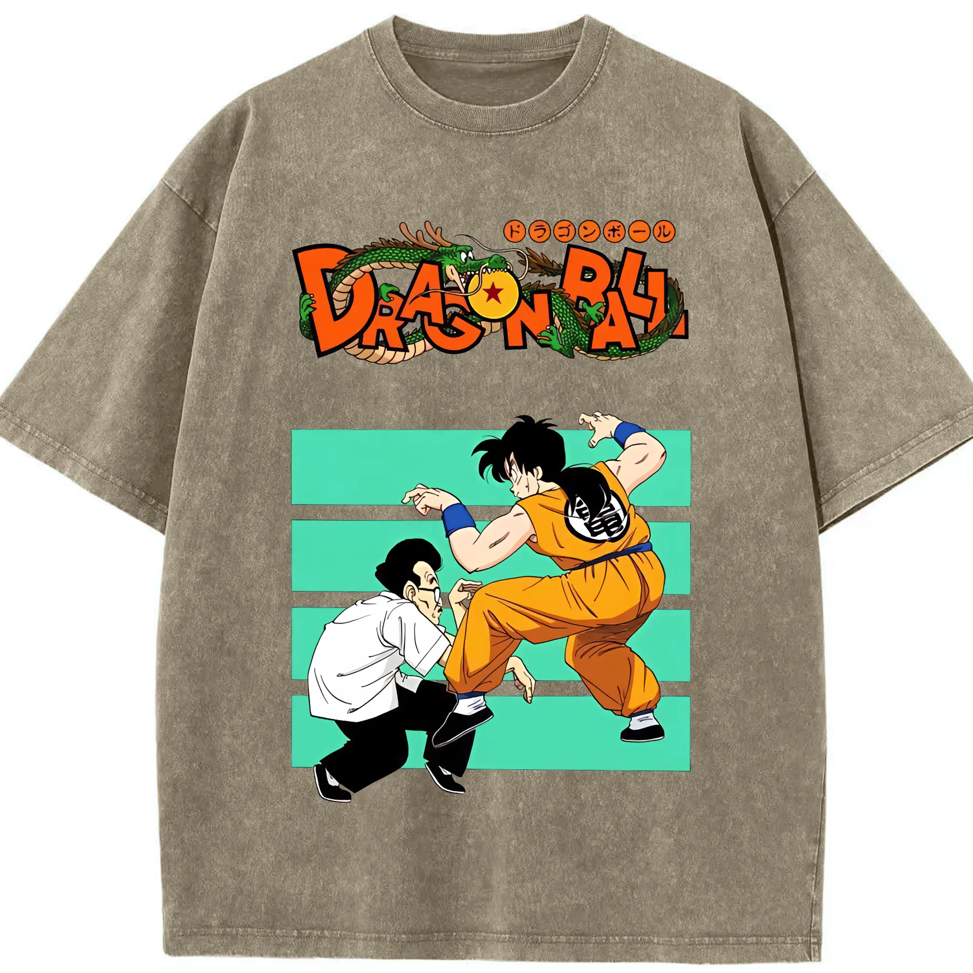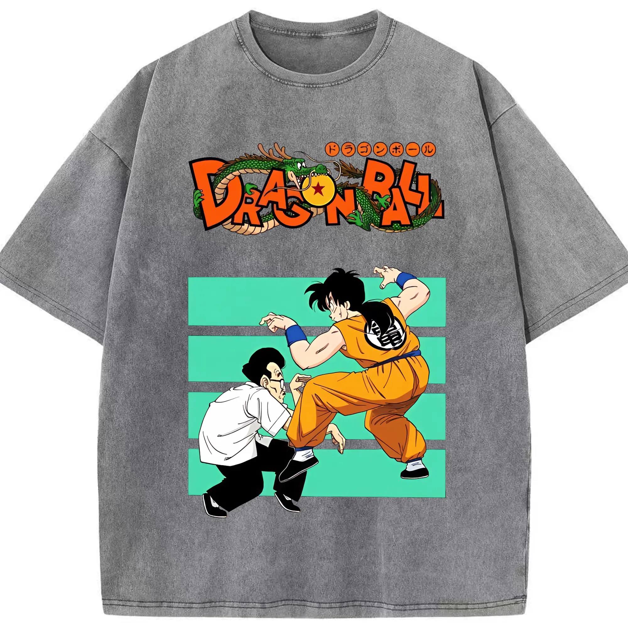 ドラゴンボール グッズ ヤムチャ - 綿100% ヴィンテージ風 半袖Tシャツ ・ 背面プリント ・ 柔らか肌触り ・ 通気性 快適 ・ スポーツ カジュアル 外出用