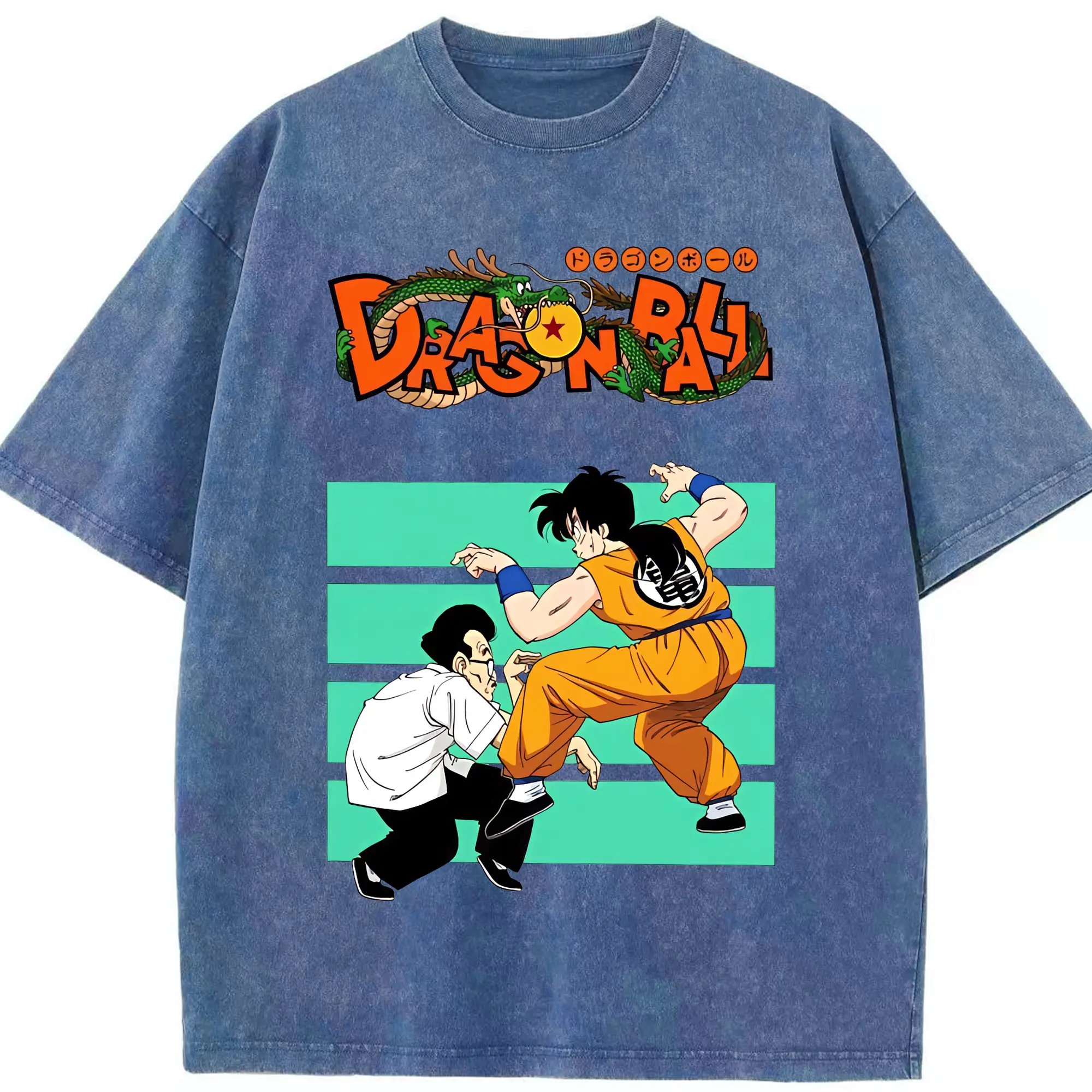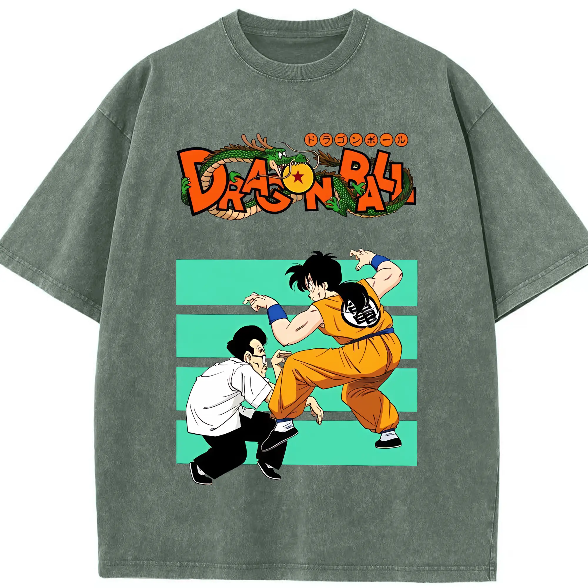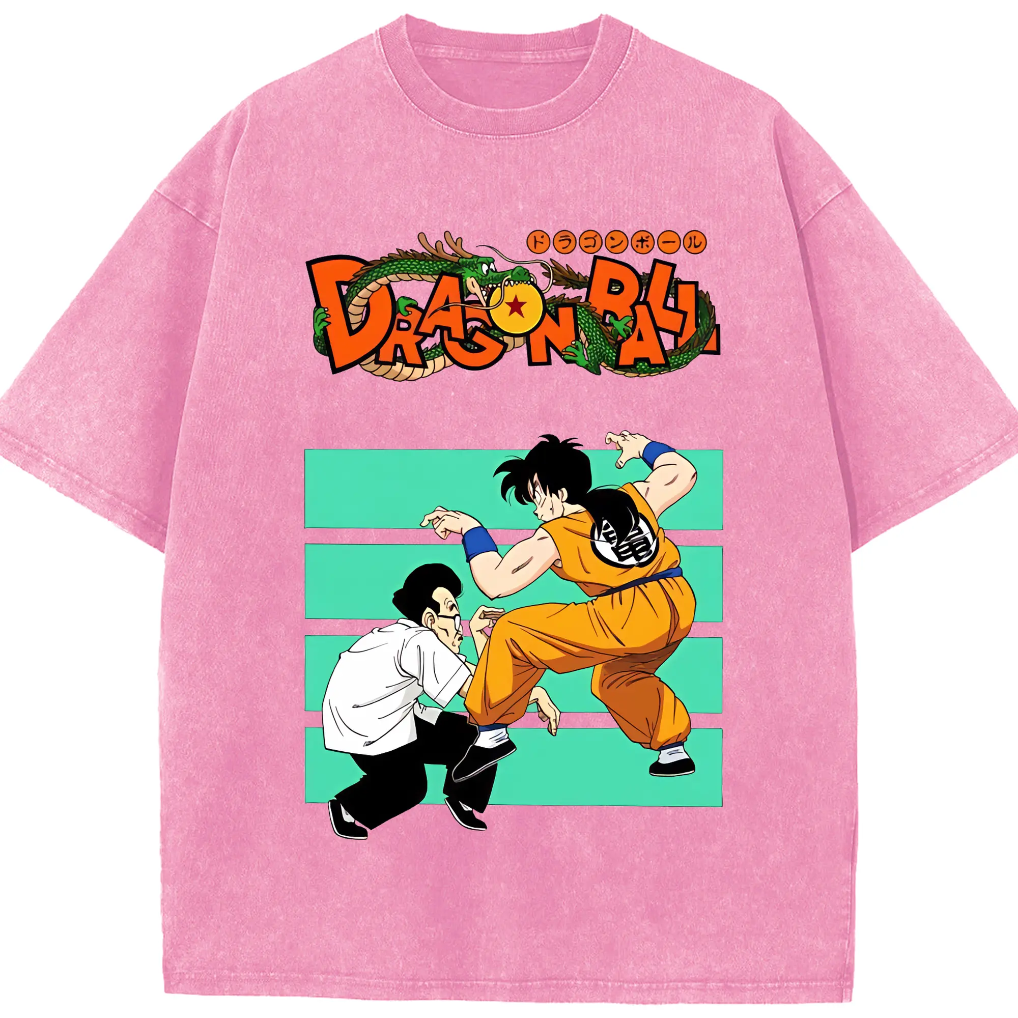 ドラゴンボール グッズ ヤムチャ - 綿100% ヴィンテージ風 半袖Tシャツ ・ 背面プリント ・ 柔らか肌触り ・ 通気性 快適 ・ スポーツ カジュアル 外出用
