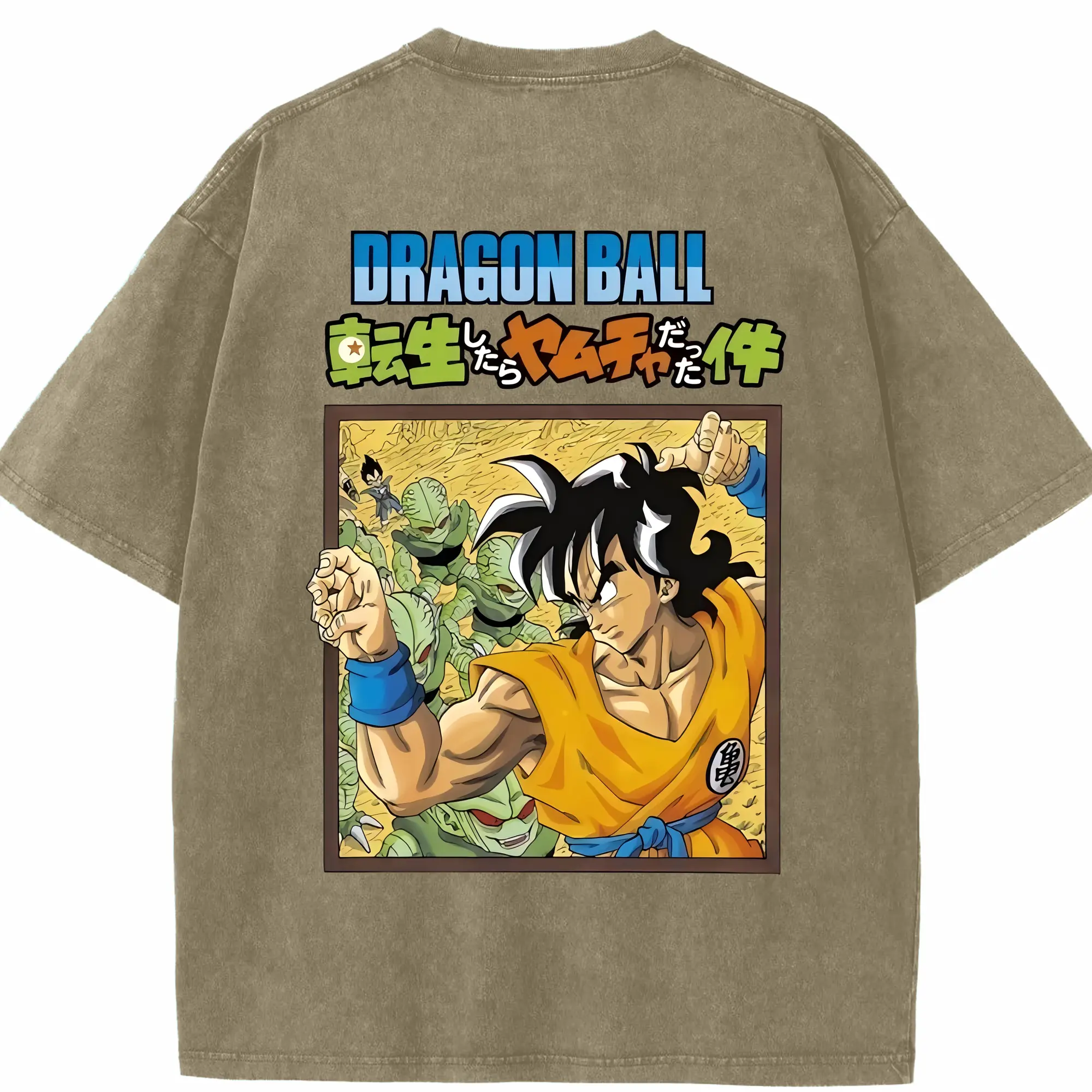ドラゴンボール グッズ ヤムチャ - 綿100% ヴィンテージ風 半袖Tシャツ ・ フロントプリント ・ 柔らか肌触り ・ 通気性 快適 ・ スポーツ カジュアル 外出用
