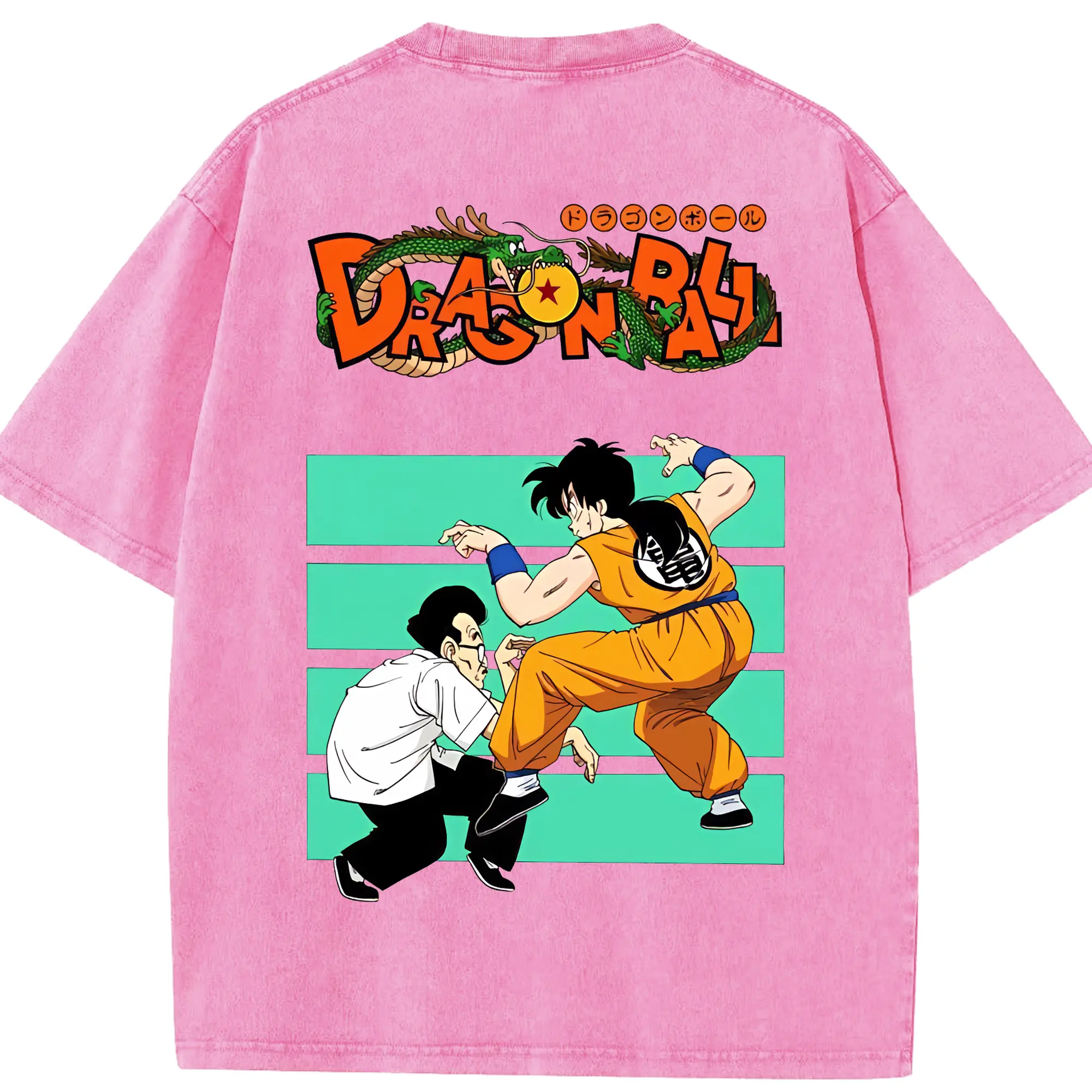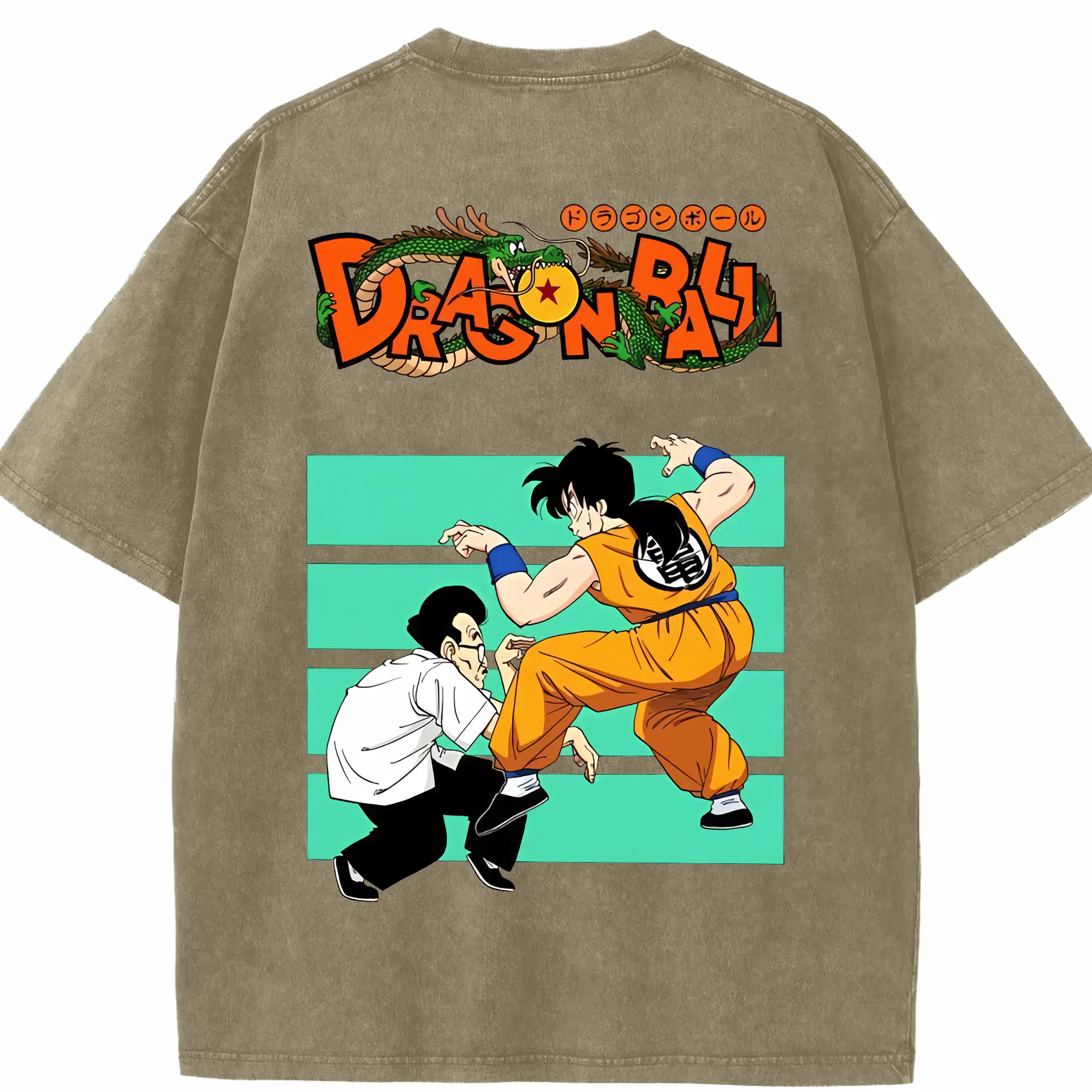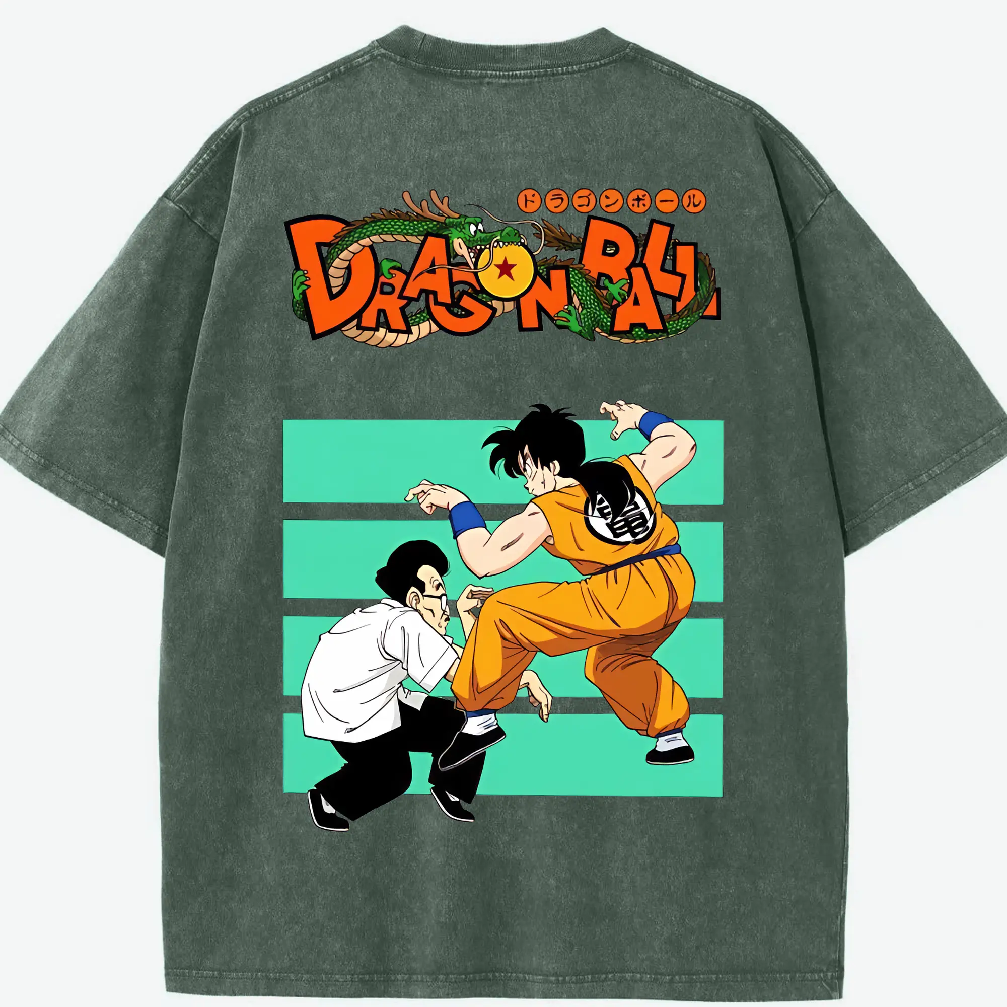 ドラゴンボール グッズ ヤムチャ - 綿100% ヴィンテージ風 半袖Tシャツ ・ フロントプリント ・ 柔らか肌触り ・ 通気性 快適 ・ スポーツ カジュアル 外出用