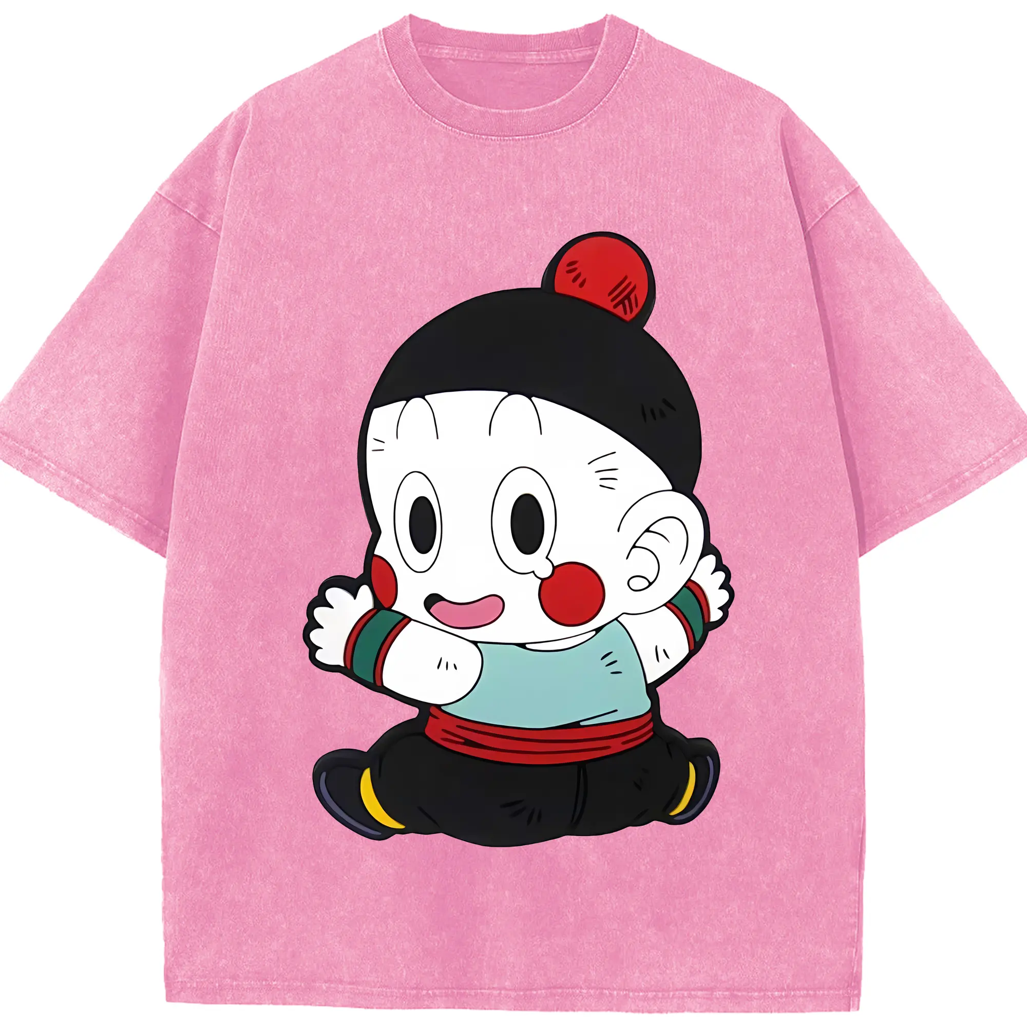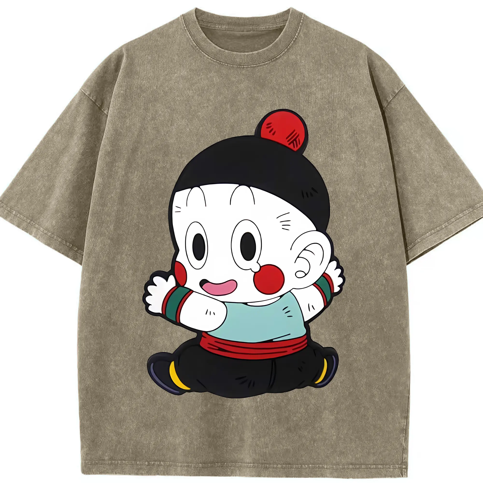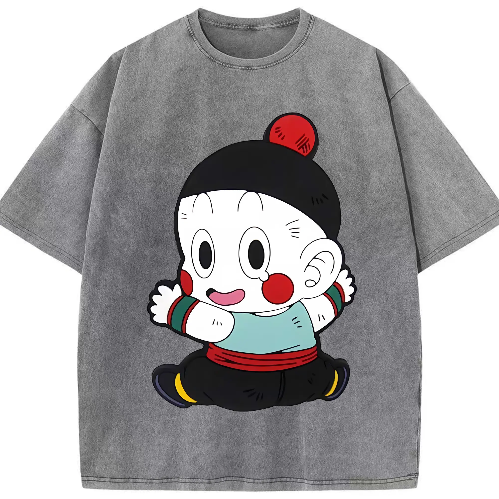 ドラゴンボール グッズ チャオズ - 綿100% ヴィンテージ風 半袖Tシャツ ・ 背面プリント ・ 柔らか肌触り ・ 通気性 快適 ・ スポーツ カジュアル 外出用