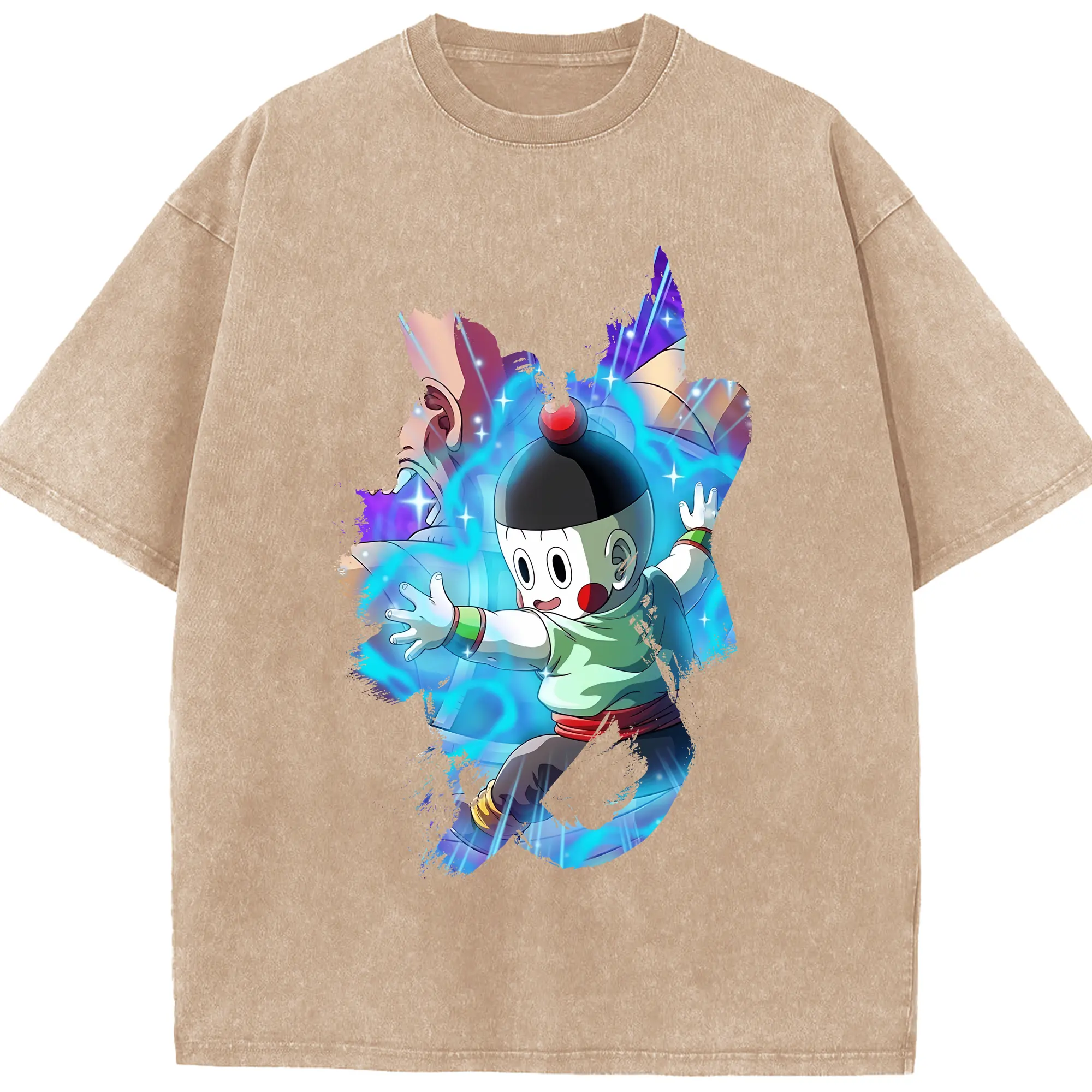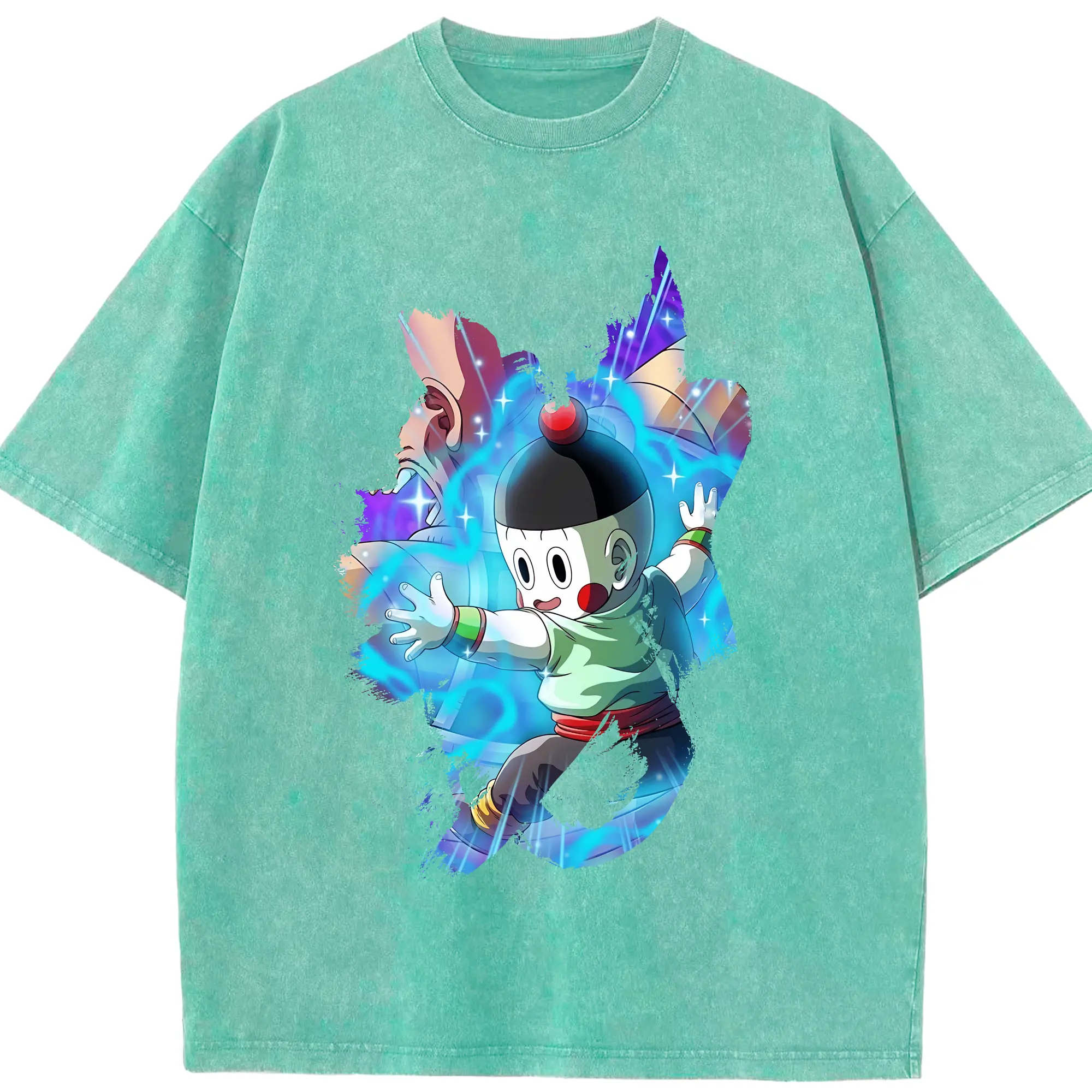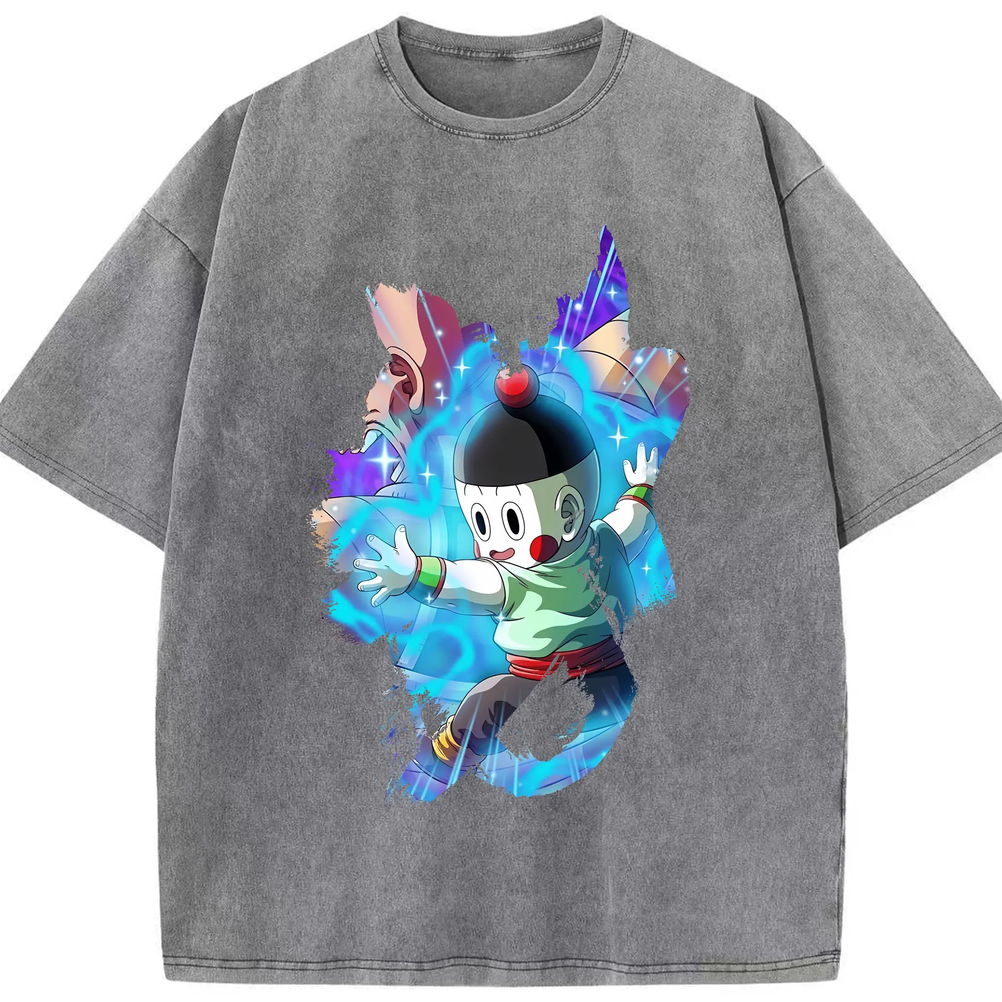 ドラゴンボール グッズ チャオズ - 綿100% ヴィンテージ風 半袖Tシャツ ・ 背面プリント ・ 柔らか肌触り ・ 通気性 快適 ・ スポーツ カジュアル 外出用