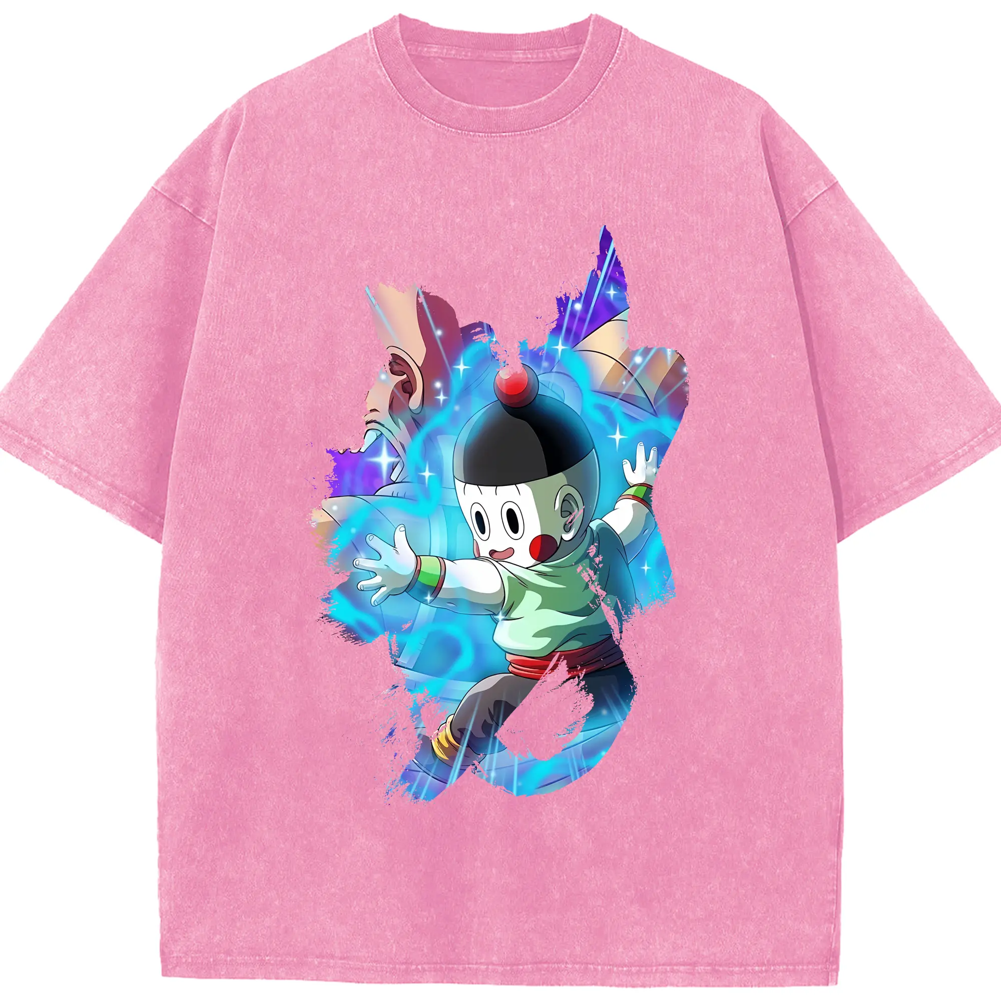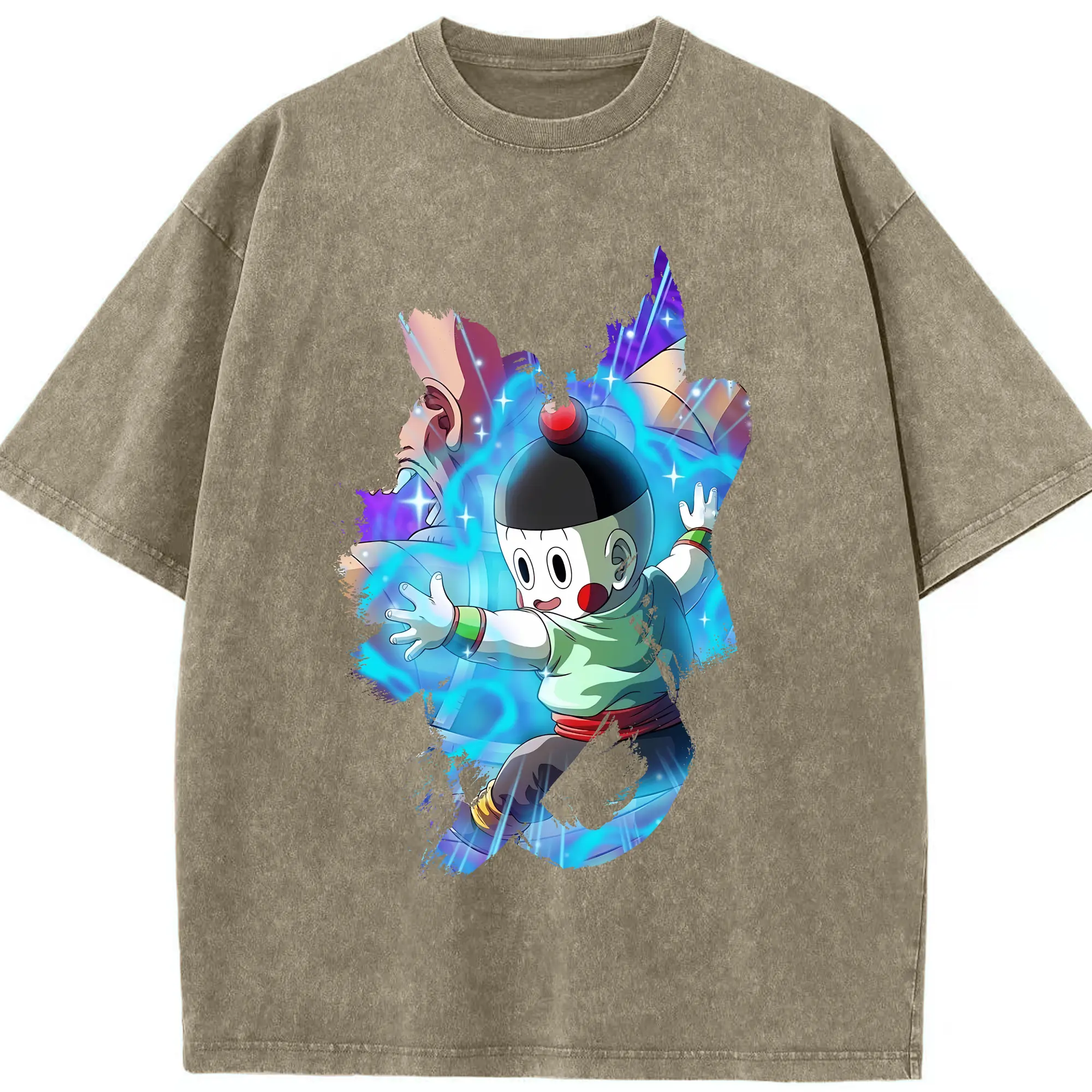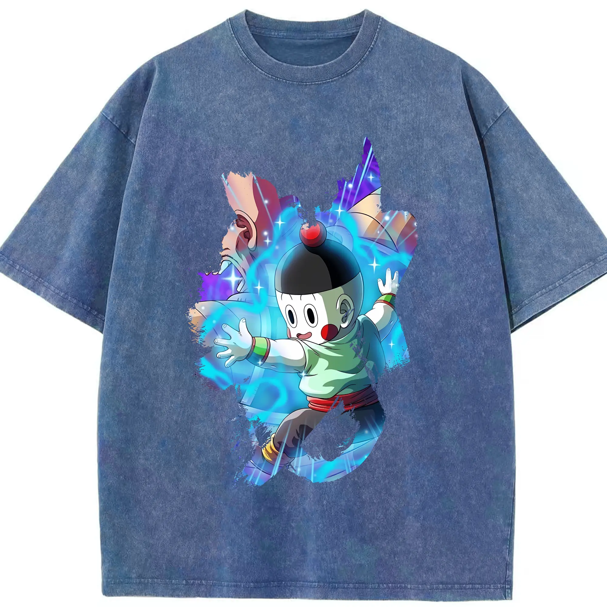 ドラゴンボール グッズ チャオズ - 綿100% ヴィンテージ風 半袖Tシャツ ・ 背面プリント ・ 柔らか肌触り ・ 通気性 快適 ・ スポーツ カジュアル 外出用
