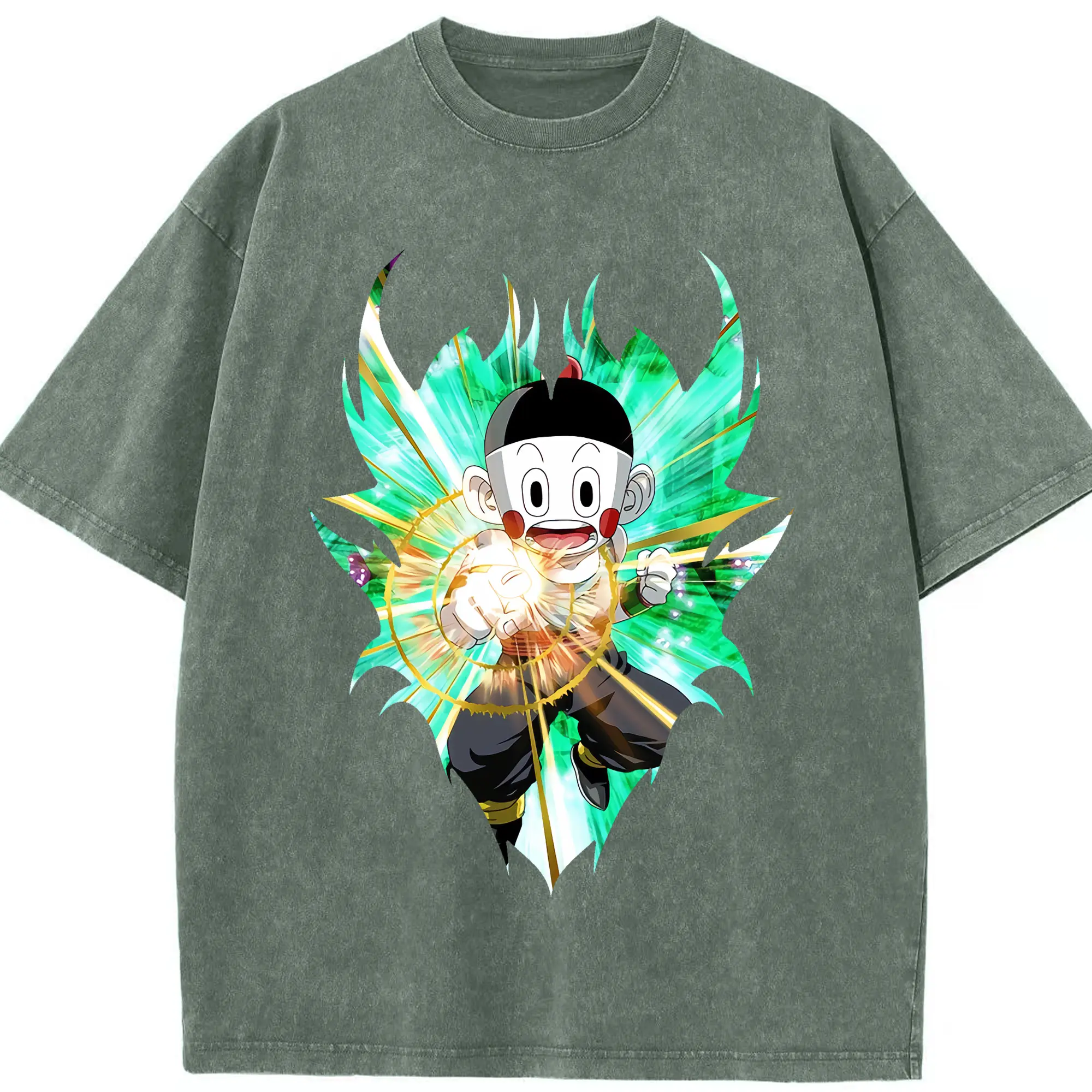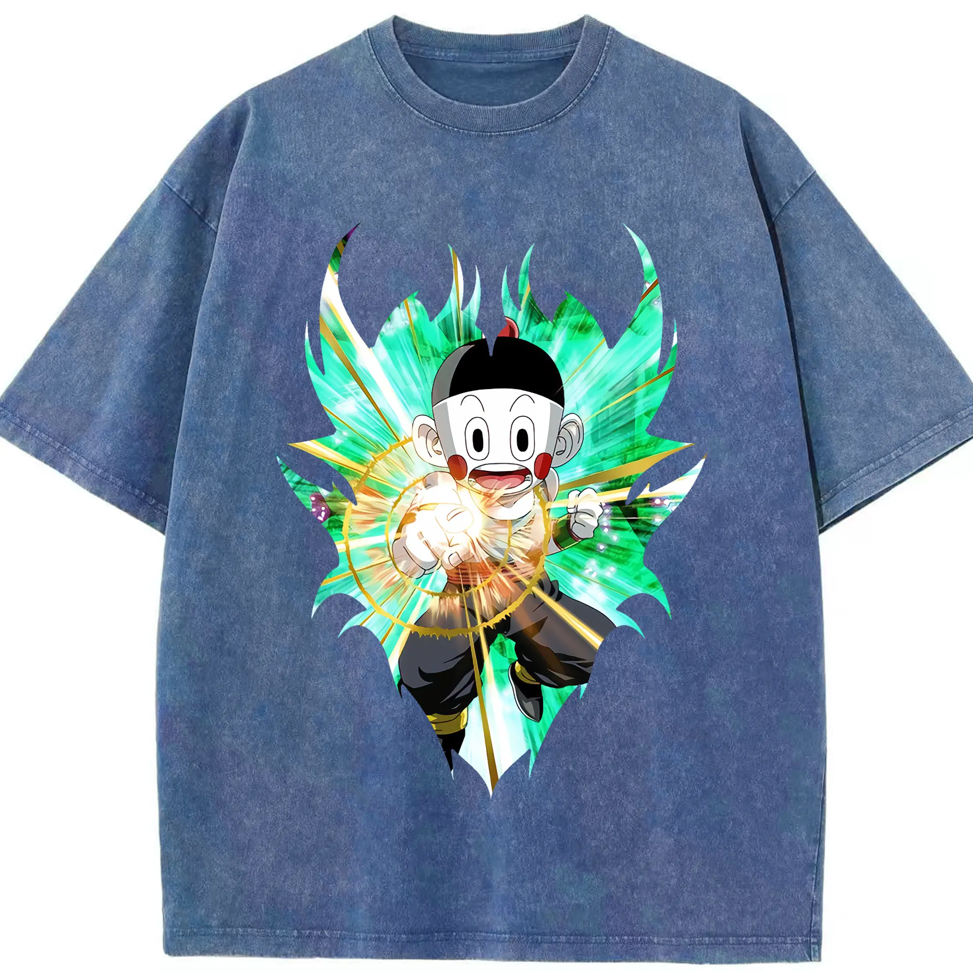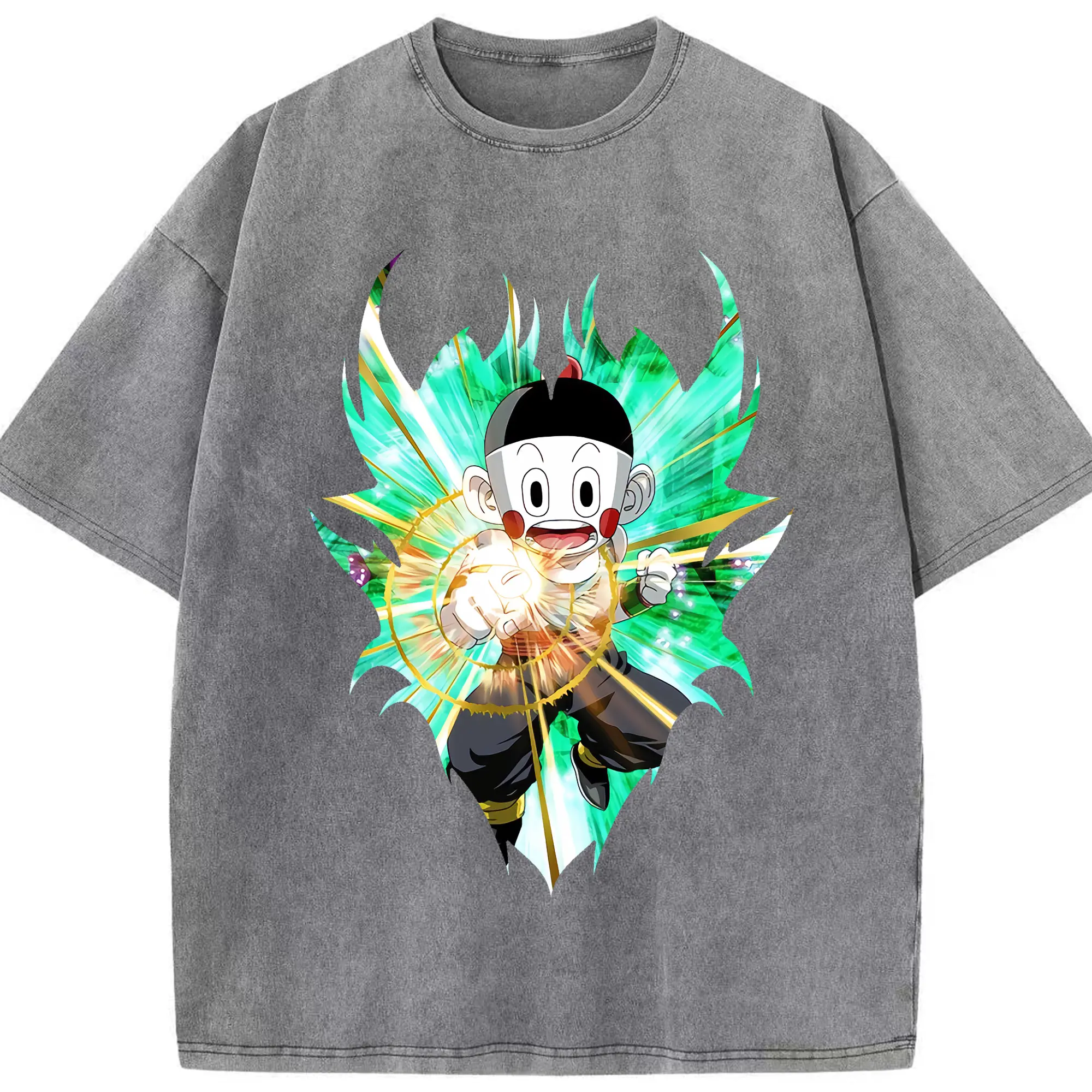 ドラゴンボール グッズ チャオズ - 綿100% ヴィンテージ風 半袖Tシャツ ・ 背面プリント ・ 柔らか肌触り ・ 通気性 快適 ・ スポーツ カジュアル 外出用