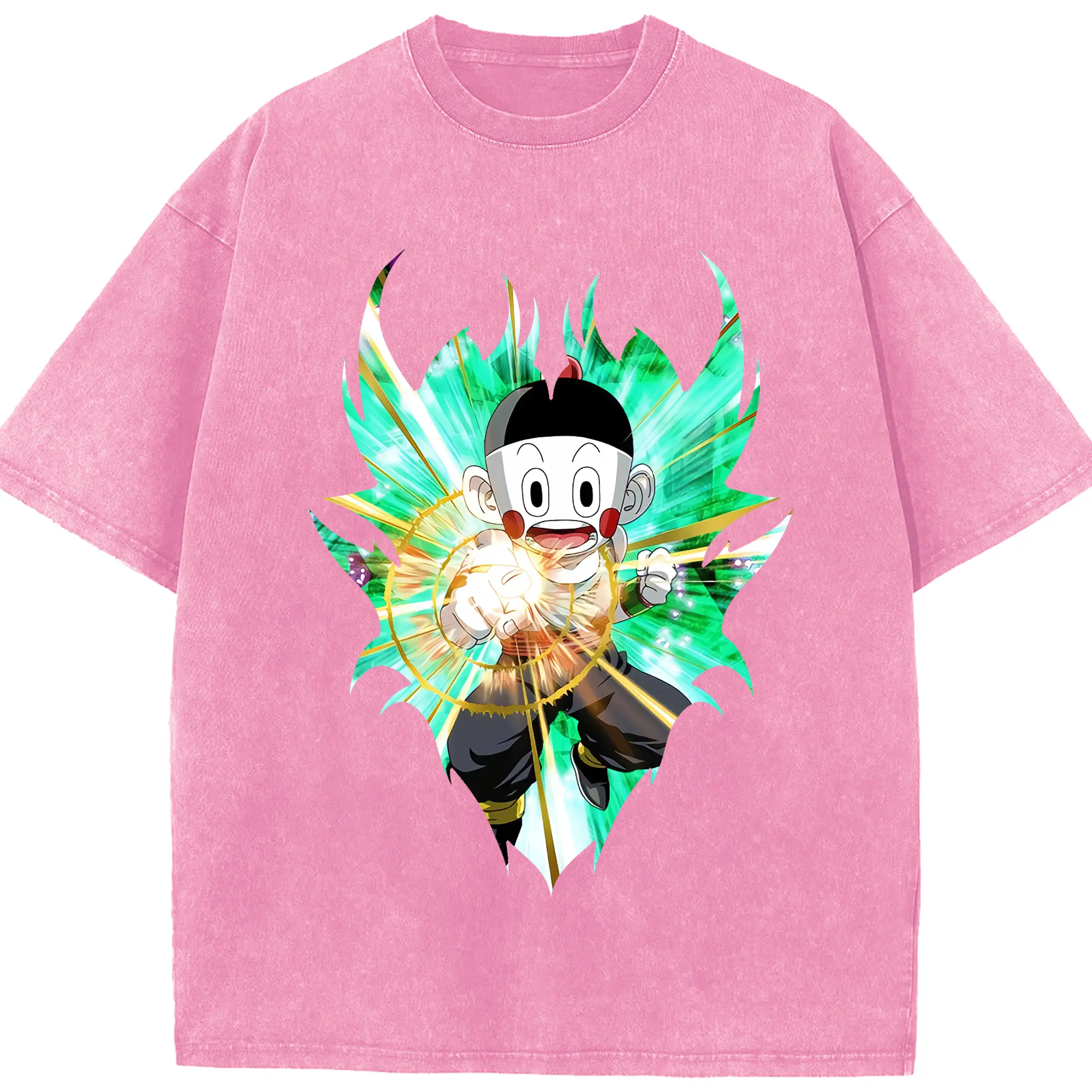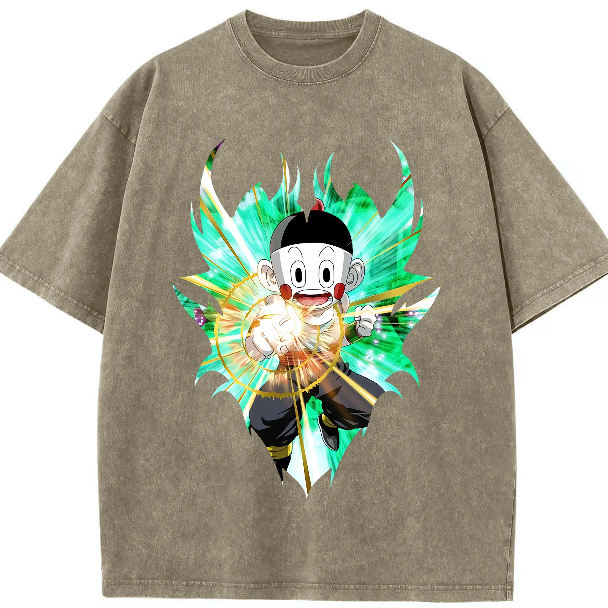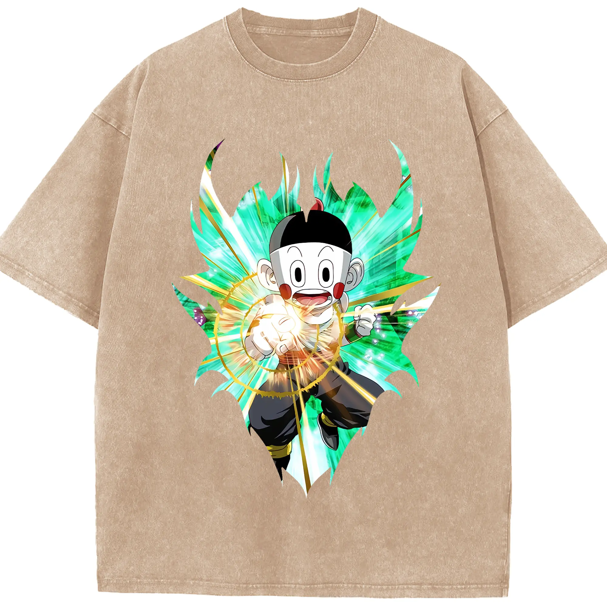 ドラゴンボール グッズ チャオズ - 綿100% ヴィンテージ風 半袖Tシャツ ・ 背面プリント ・ 柔らか肌触り ・ 通気性 快適 ・ スポーツ カジュアル 外出用