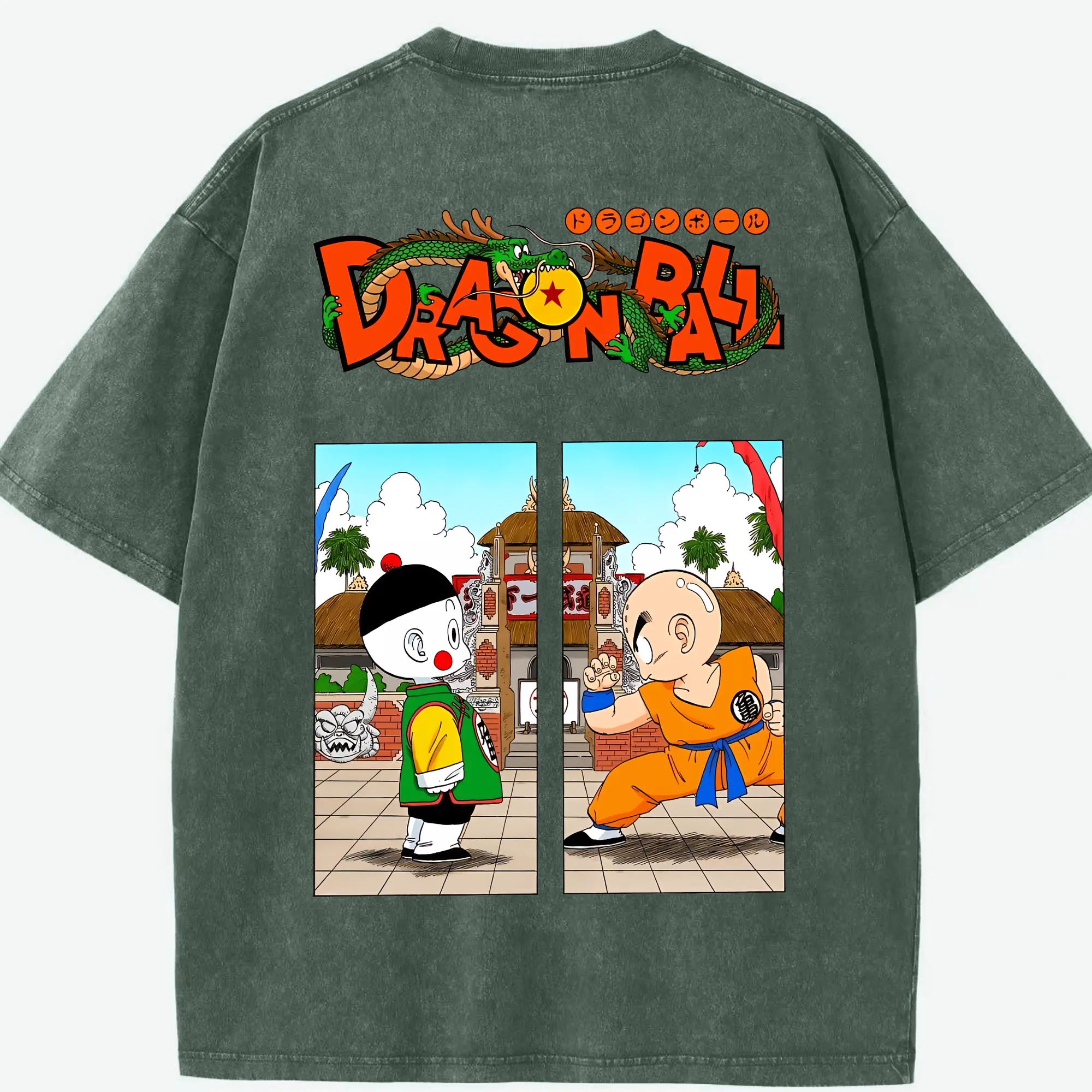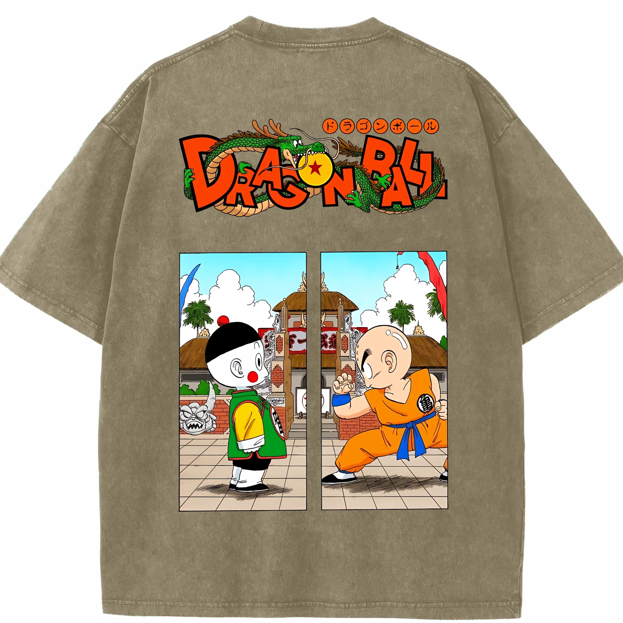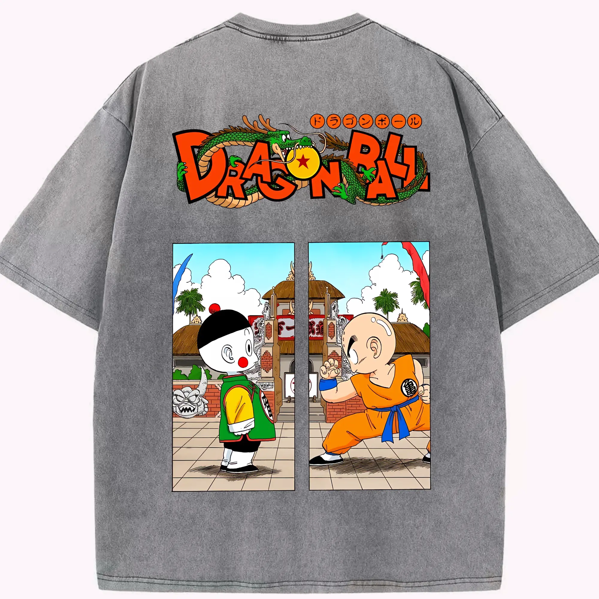 ドラゴンボール グッズ チャオズ - 綿100% ヴィンテージ風 半袖Tシャツ ・ フロントプリント ・ 柔らか肌触り ・ 通気性 快適 ・ スポーツ カジュアル 外出用