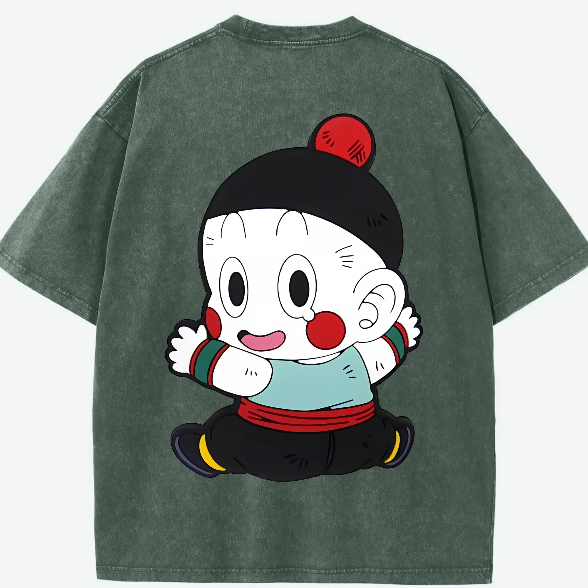 ドラゴンボール グッズ チャオズ - 綿100% ヴィンテージ風 半袖Tシャツ ・ フロントプリント ・ 柔らか肌触り ・ 通気性 快適 ・ スポーツ カジュアル 外出用