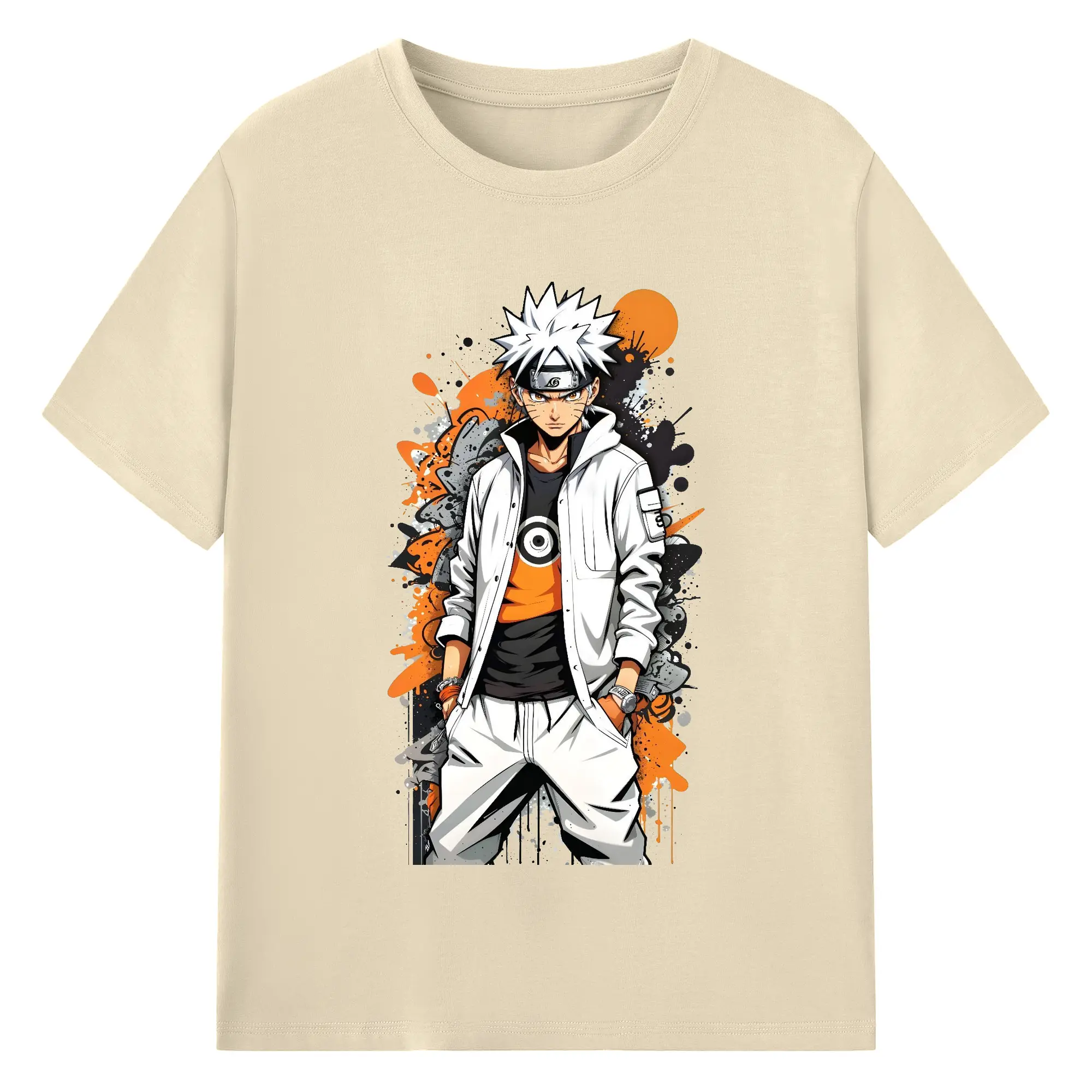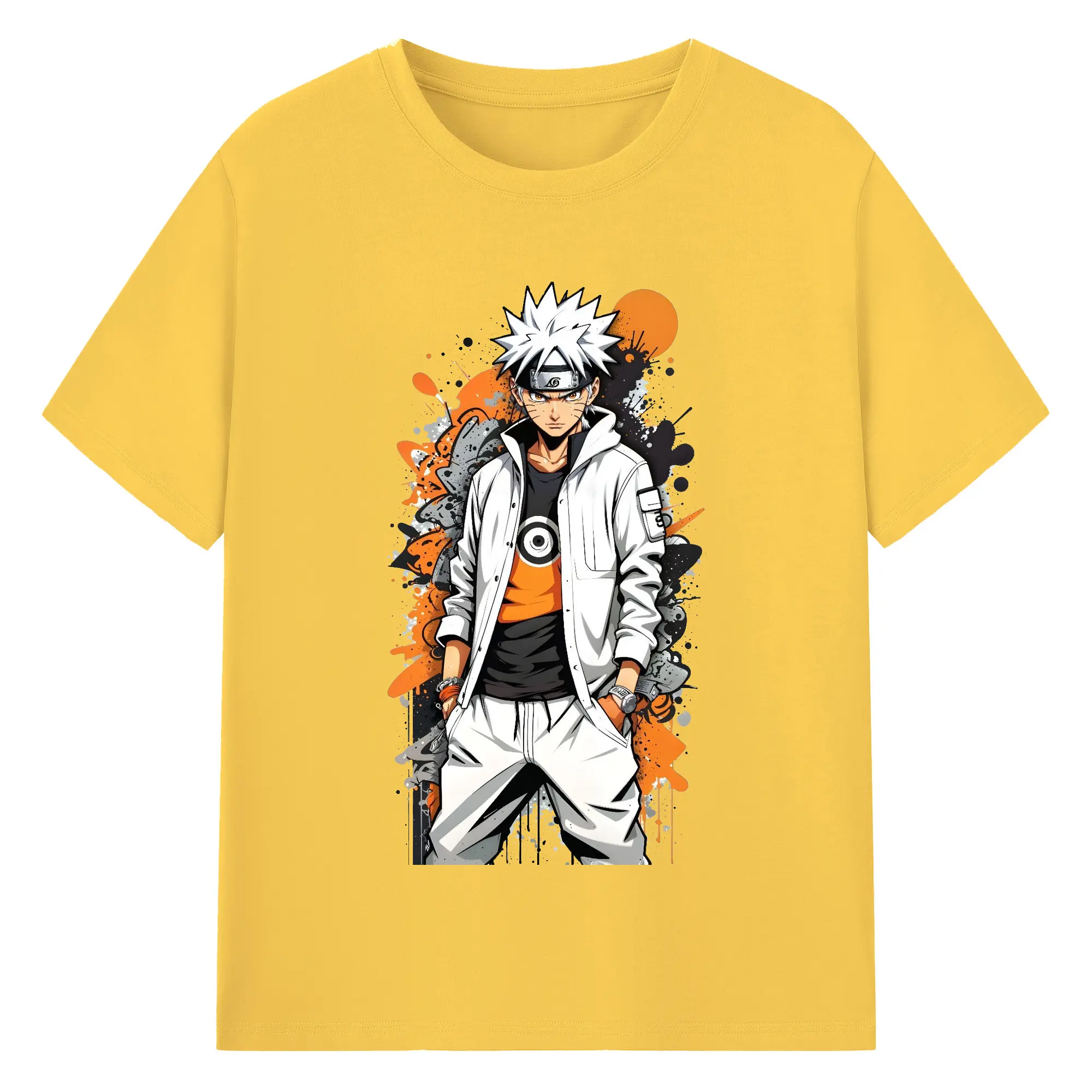ナルト グッズ うずまき ナルト - 綿100% ヴィンテージ風 半袖Tシャツ ・ フロントプリント ・ 柔らか肌触り ・ 通気性 快適 ・ スポーツ カジュアル 外出用