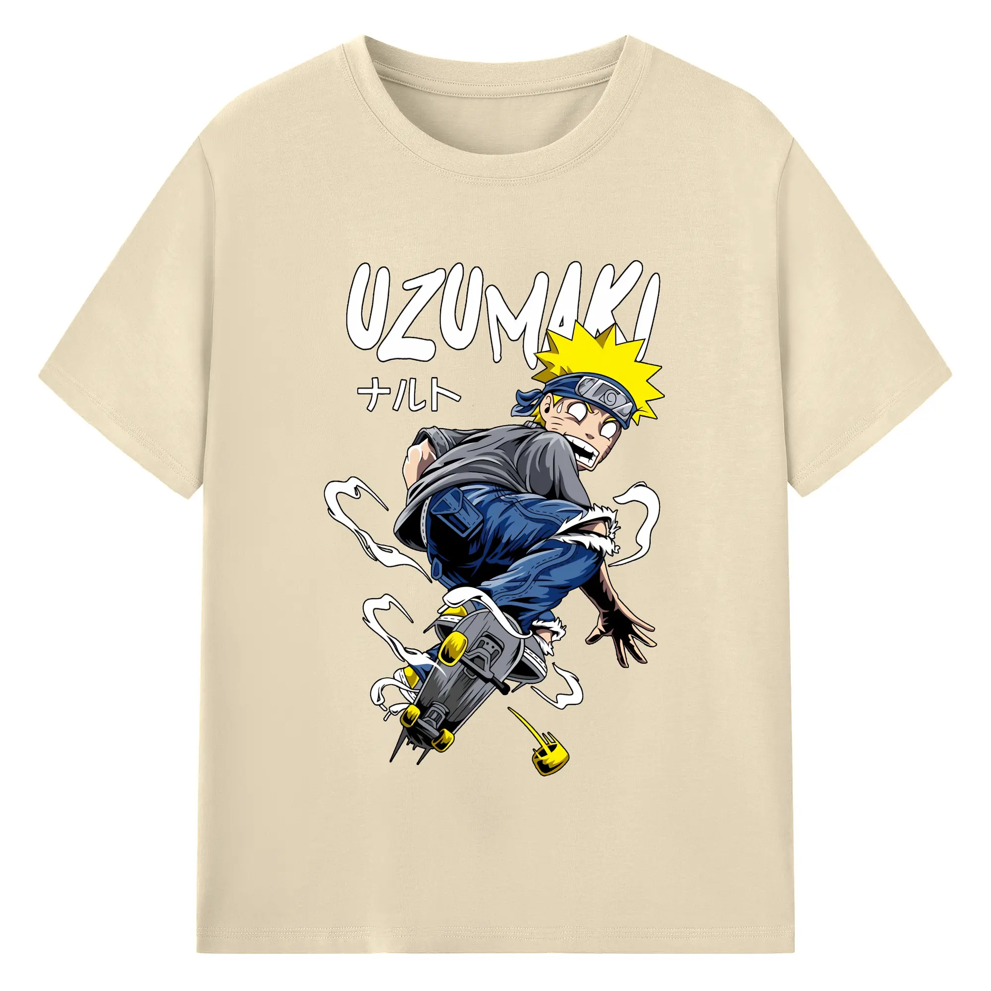 ナルト グッズ うずまき ナルト - 綿100% 半袖Tシャツ ・ バックプリント ・ 快適 通気性 ・ 日常使い 散歩 スポーツ用