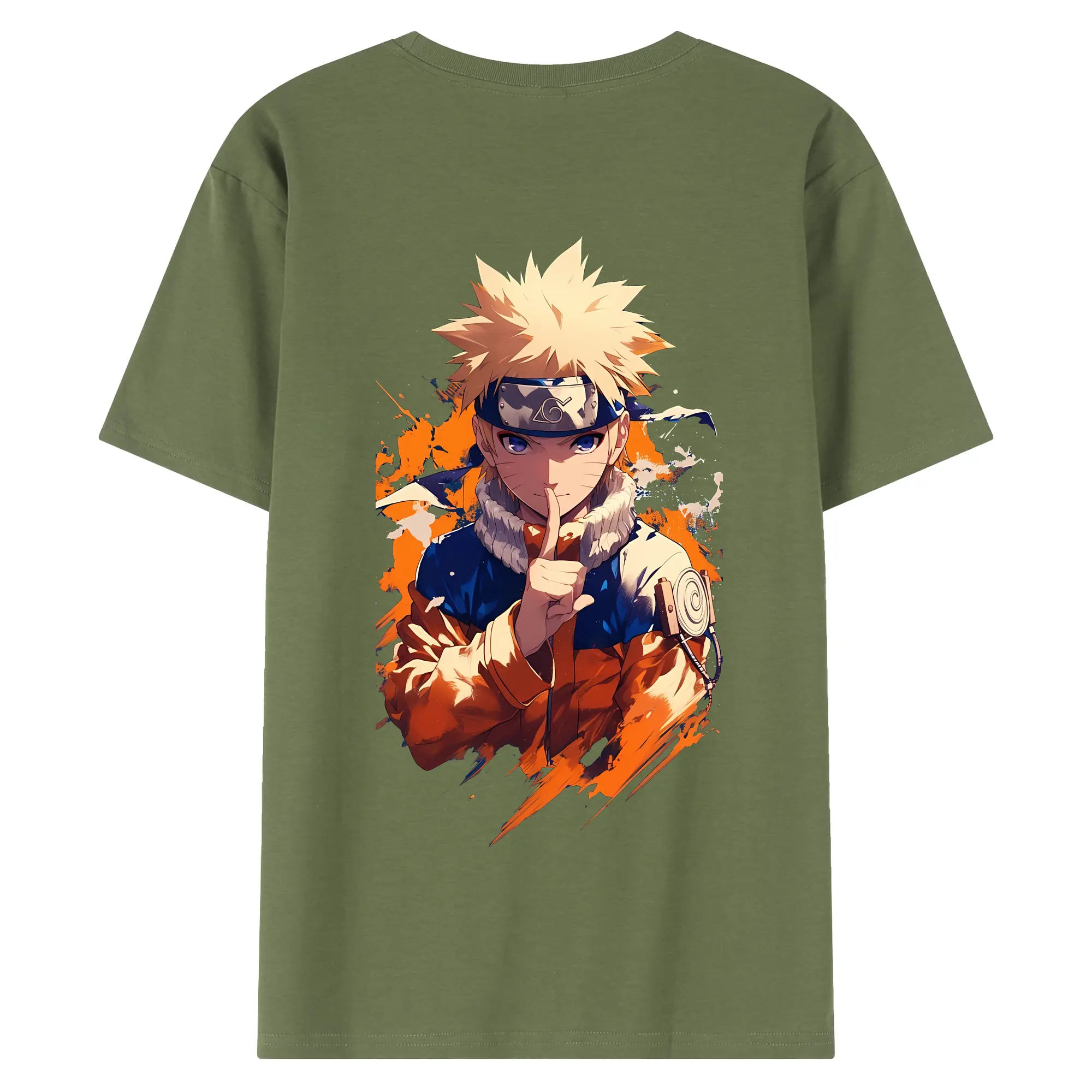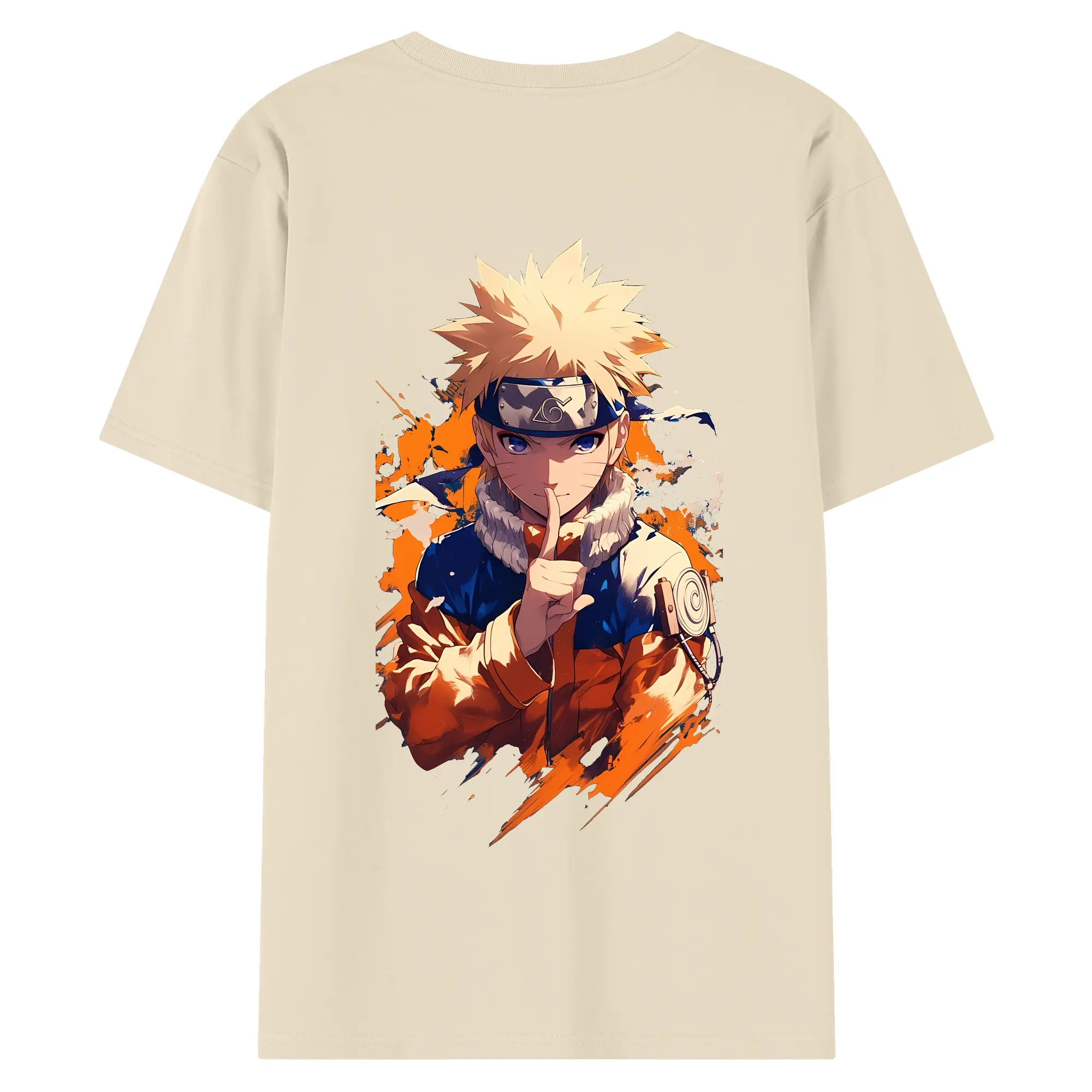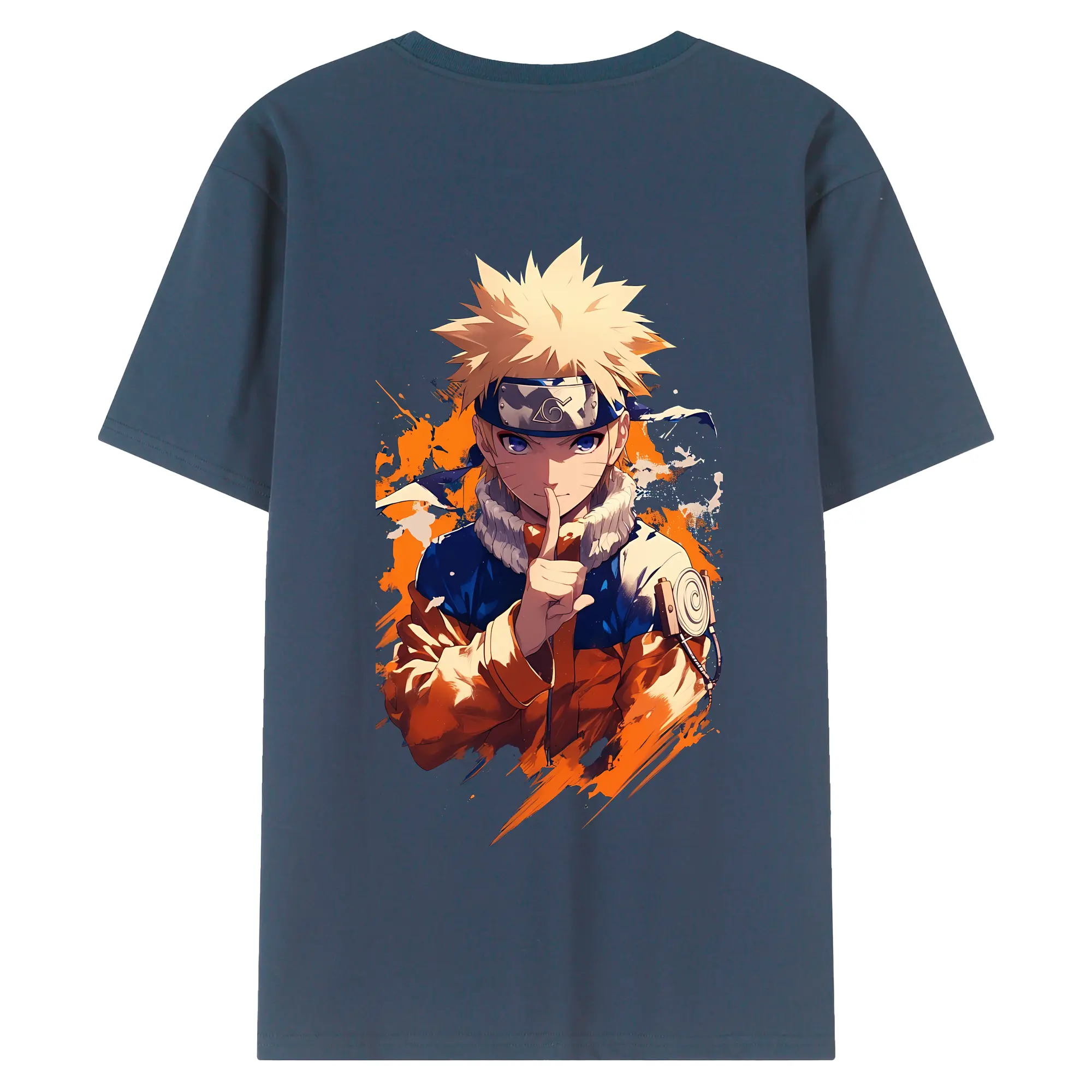 ナルト グッズ うずまき ナルト - 綿100% ヴィンテージ風 半袖Tシャツ ・ 背面プリント ・ 柔らか肌触り ・ 通気性 快適 ・ スポーツ カジュアル 外出用