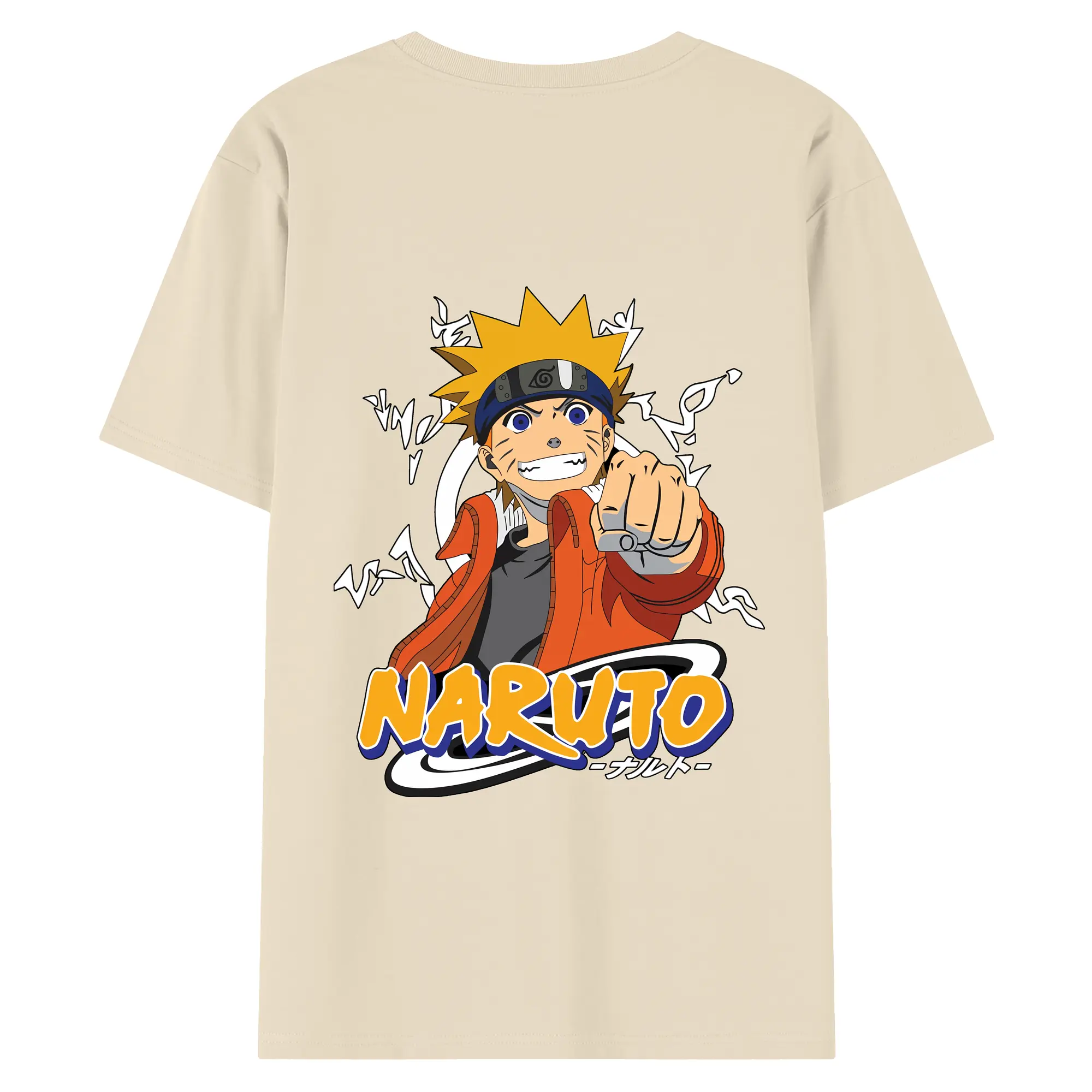 ナルト グッズ うずまき ナルト - 綿100% ヴィンテージ風 半袖Tシャツ ・ 背面プリント ・ 柔らか肌触り ・ 通気性 快適 ・ スポーツ カジュアル 外出用