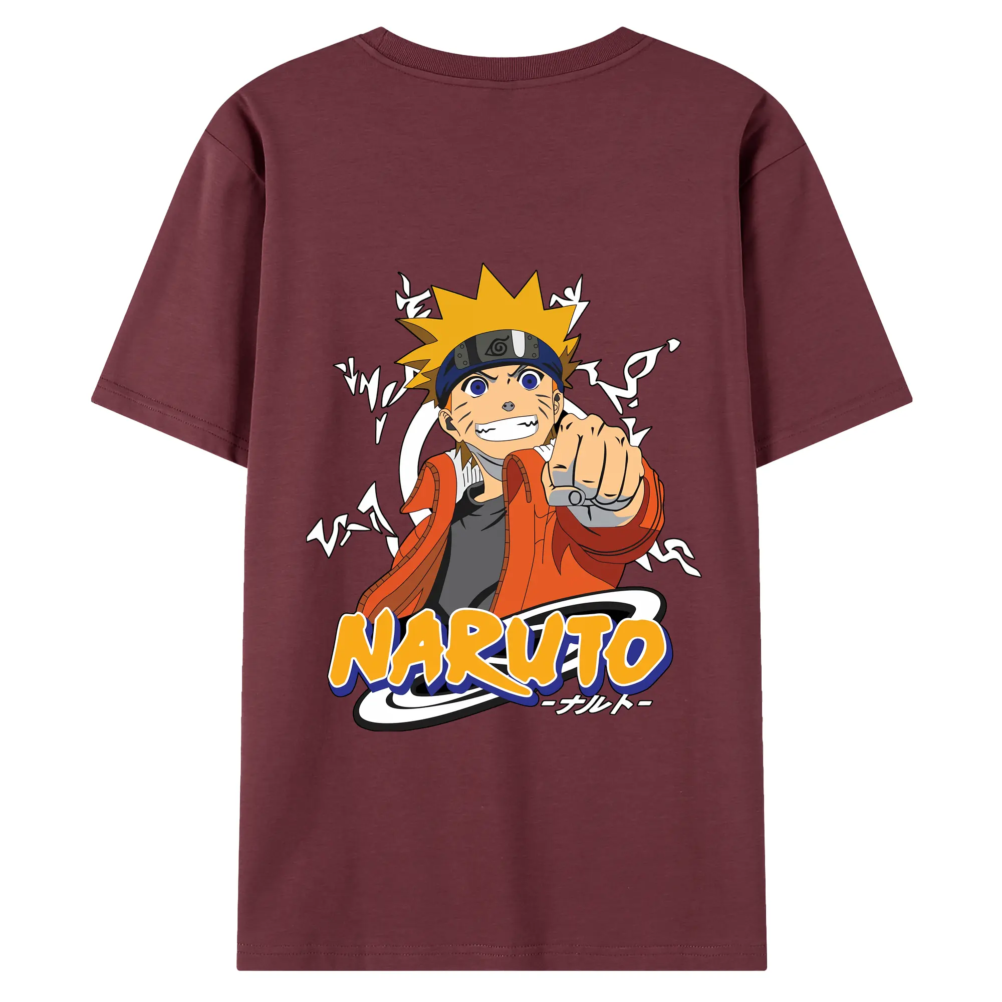 ナルト グッズ うずまき ナルト - 綿100% 半袖Tシャツ ・ バックプリント ・ 快適 通気性 ・ 日常使い 散歩 スポーツ用