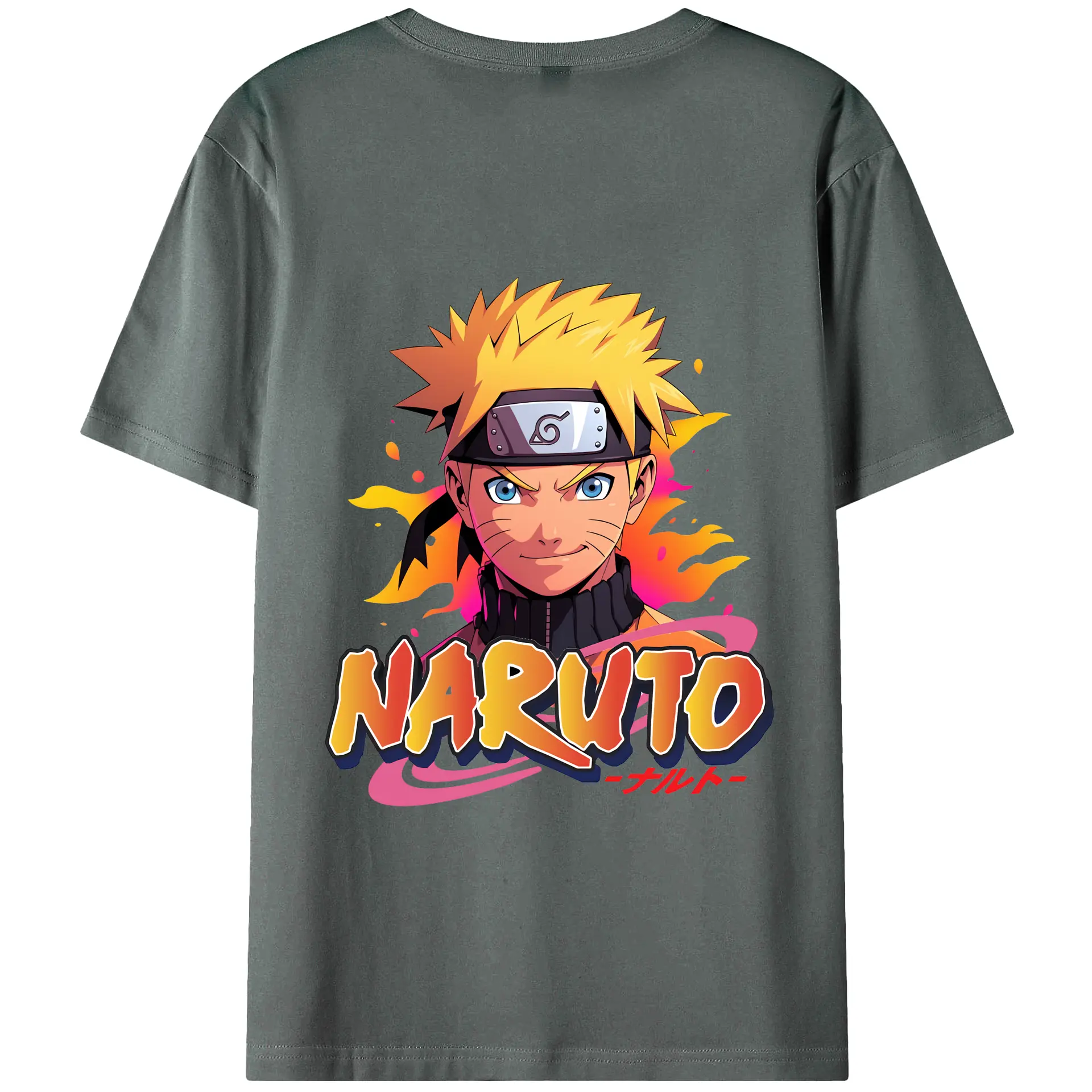 ナルト グッズ うずまき ナルト - 綿100% ヴィンテージ風 半袖Tシャツ ・ 背面プリント ・ 柔らか肌触り ・ 通気性 快適 ・ スポーツ カジュアル 外出用
