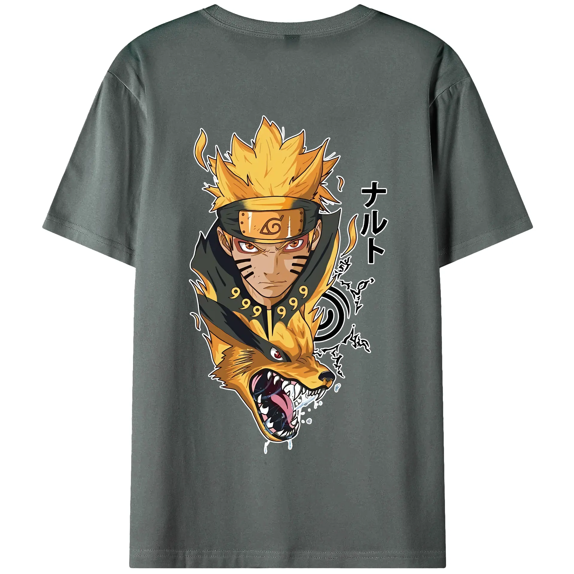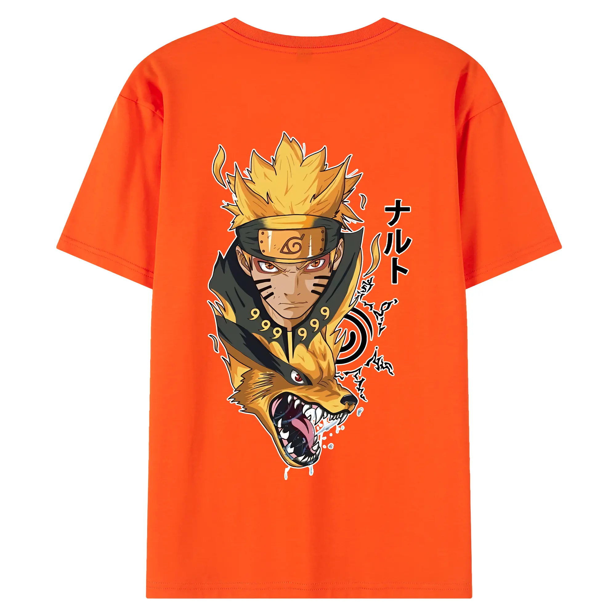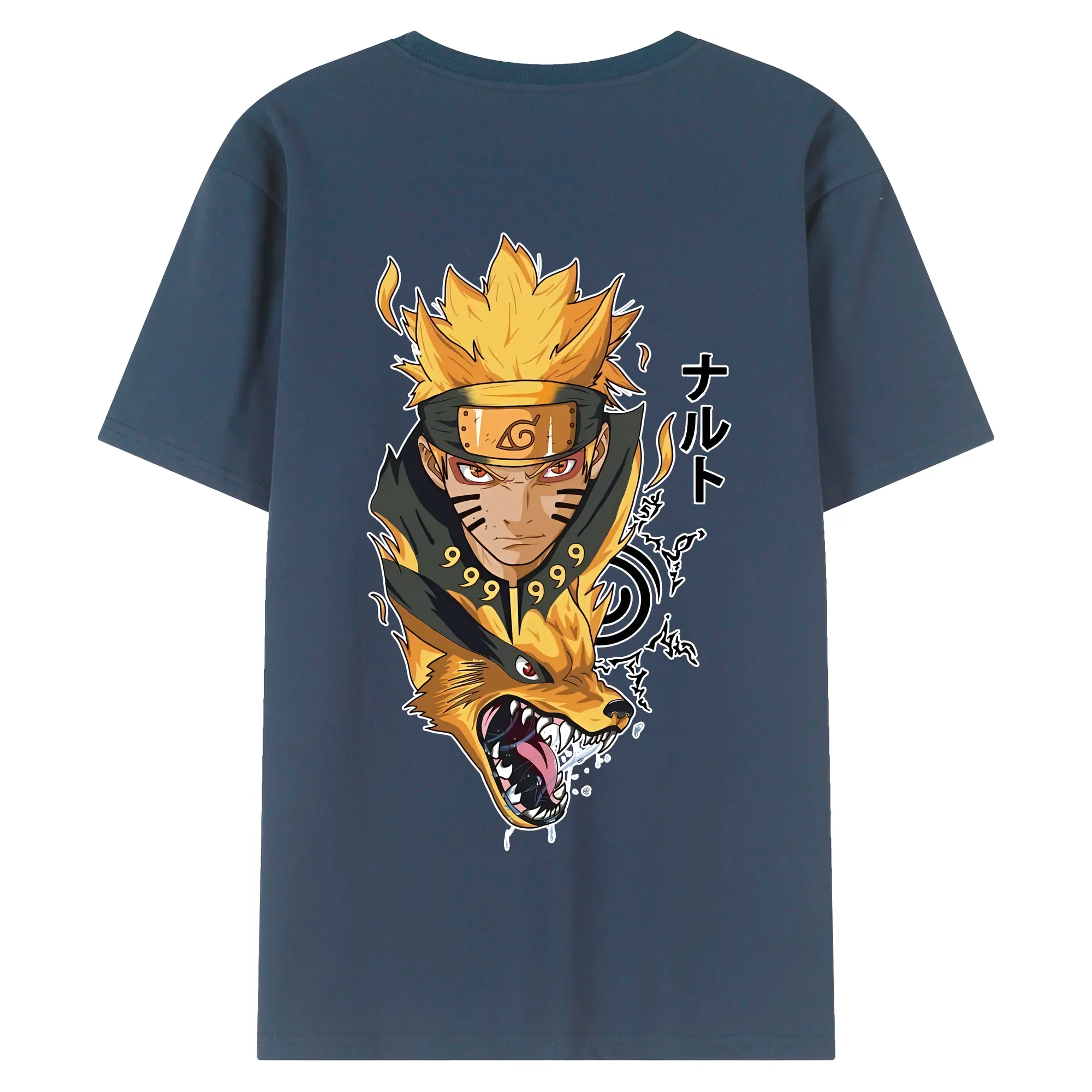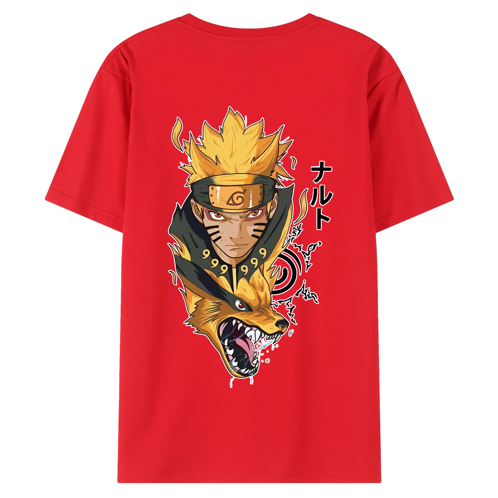 ナルト グッズ うずまき ナルト - 綿100% ヴィンテージ風 半袖Tシャツ ・ 背面プリント ・ 柔らか肌触り ・ 通気性 快適 ・ スポーツ カジュアル 外出用