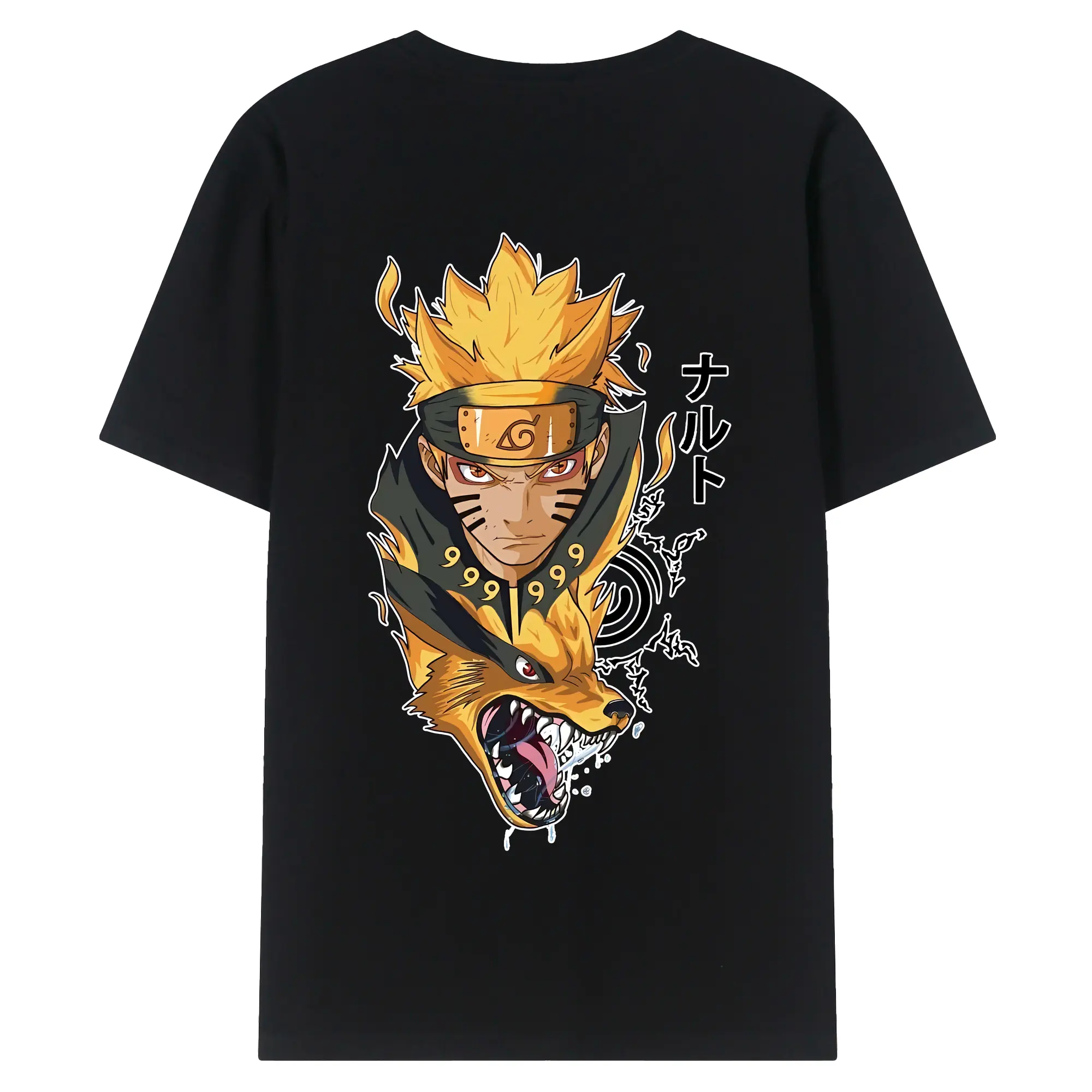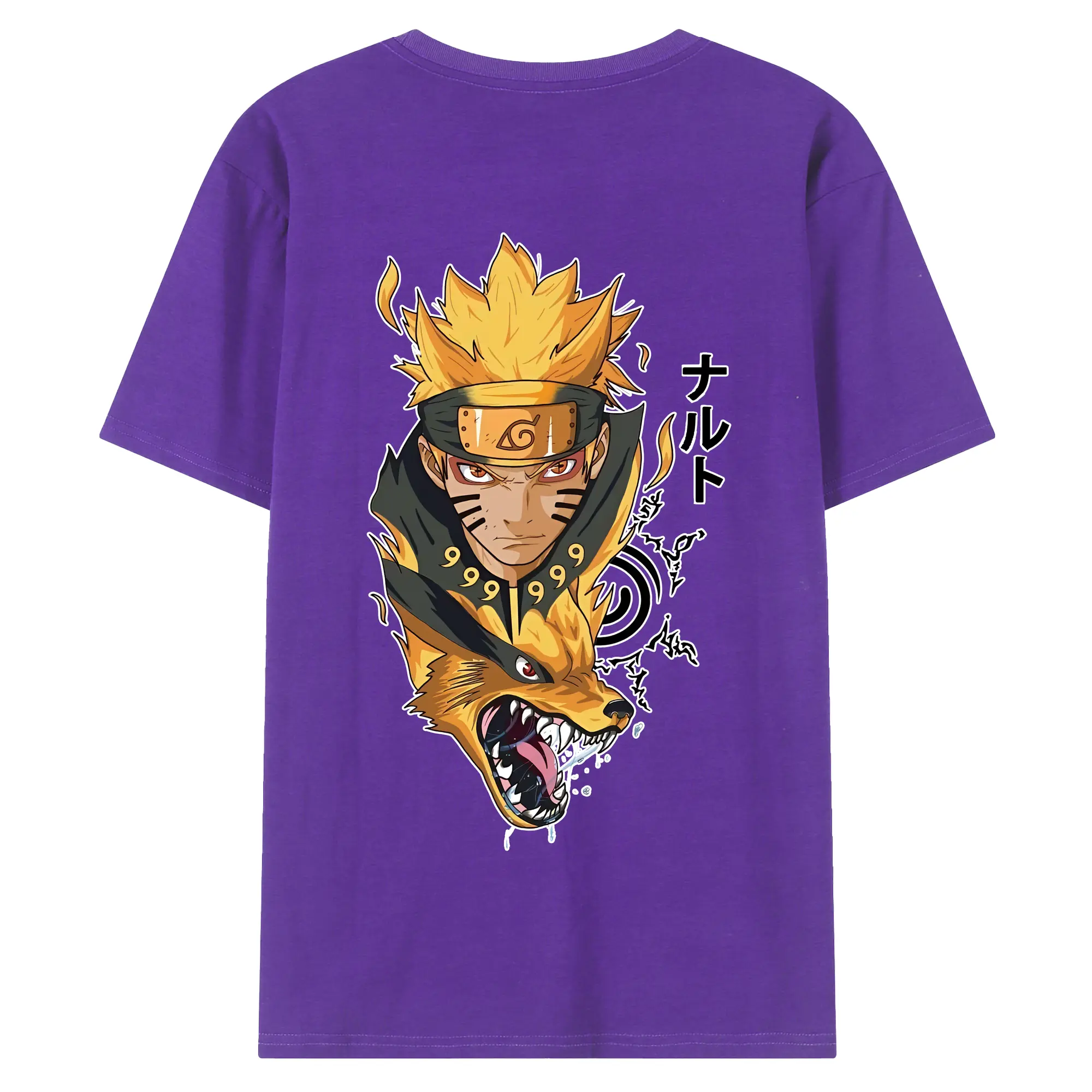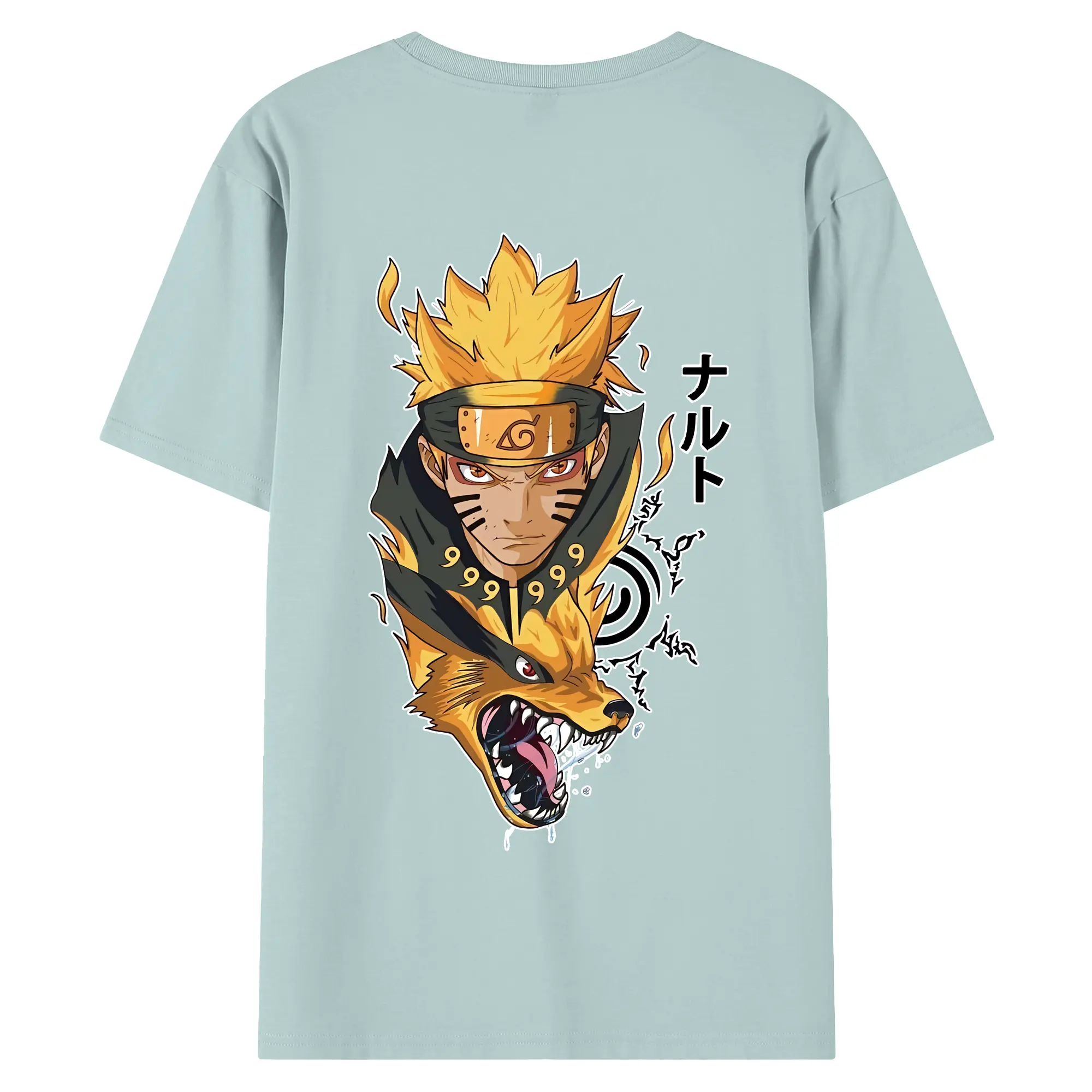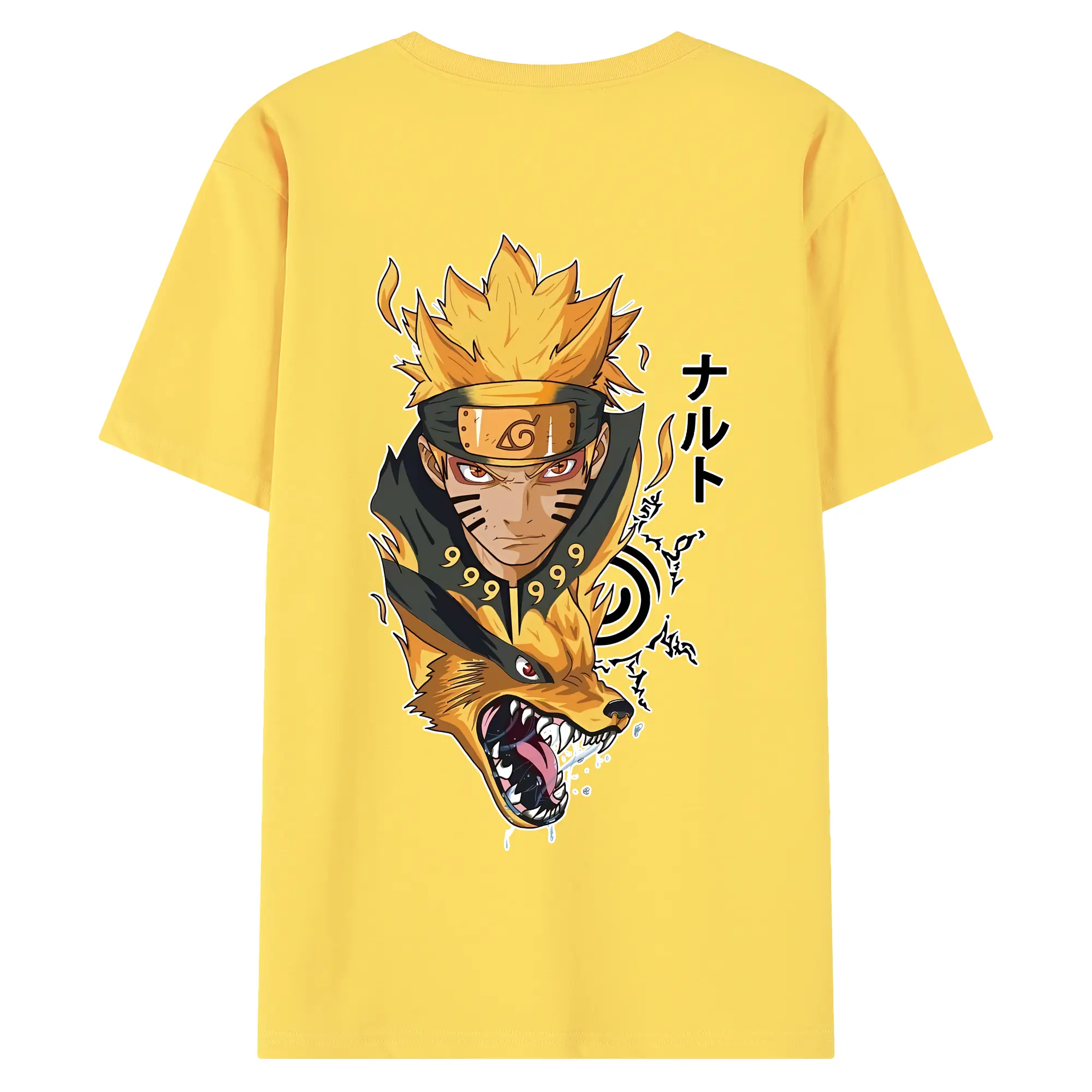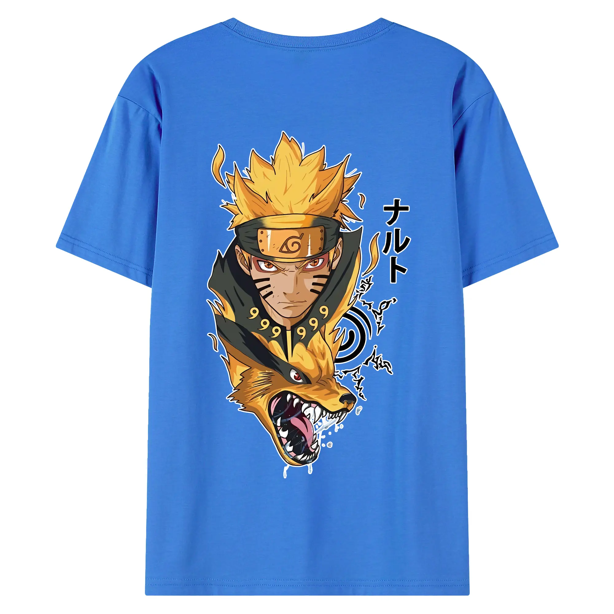 ナルト グッズ うずまき ナルト - 綿100% ヴィンテージ風 半袖Tシャツ ・ 背面プリント ・ 柔らか肌触り ・ 通気性 快適 ・ スポーツ カジュアル 外出用