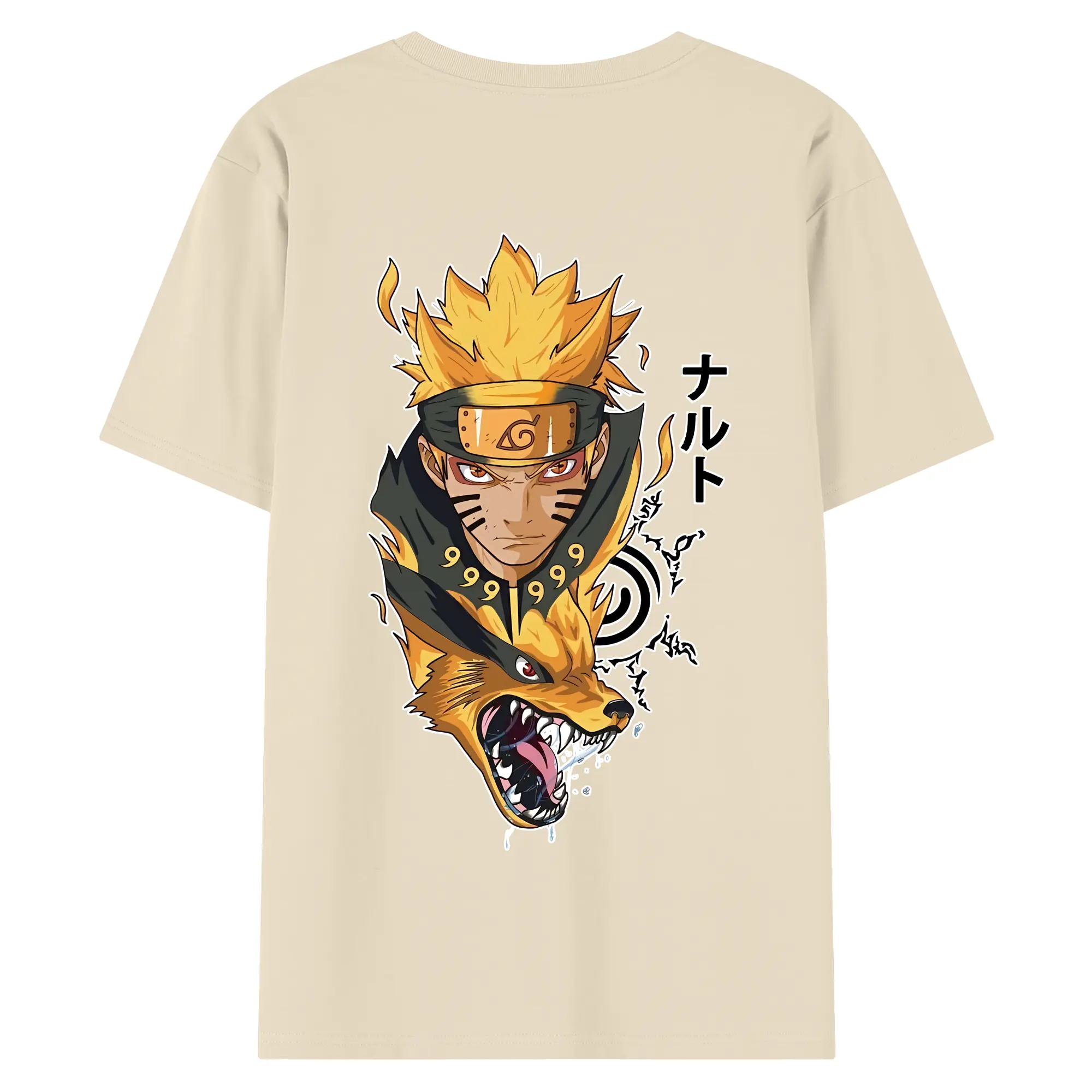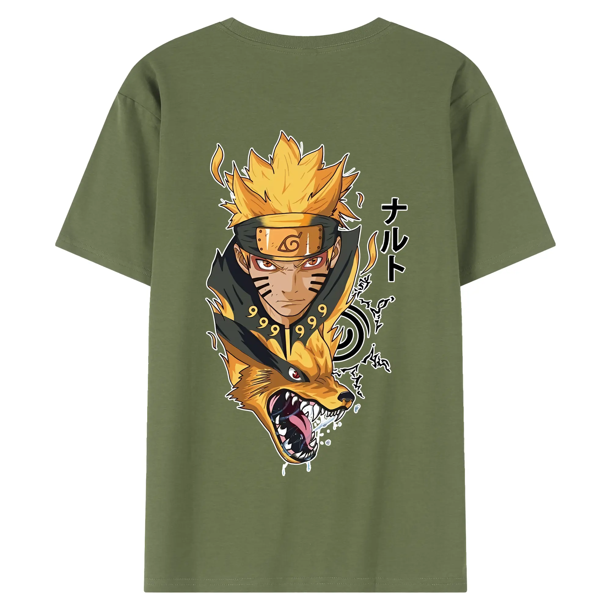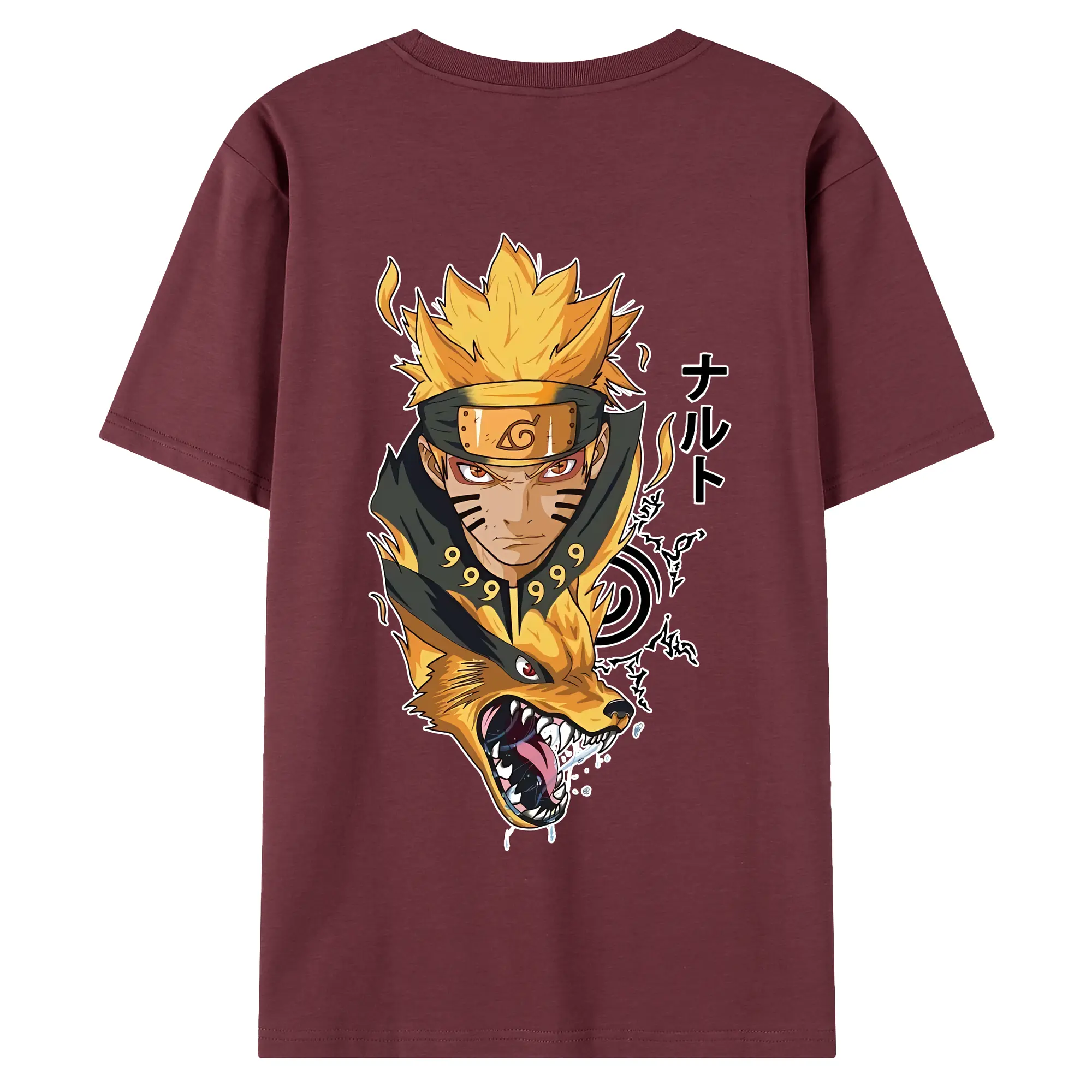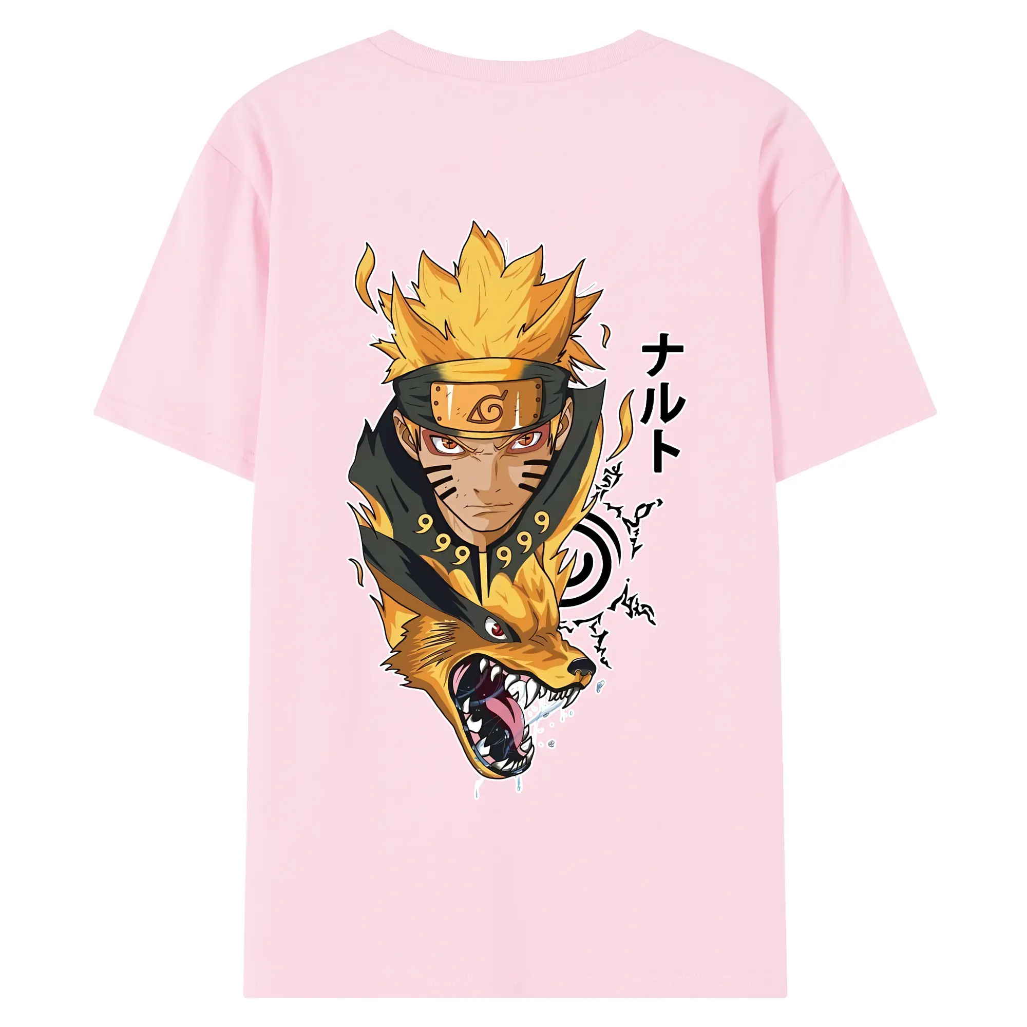 ナルト グッズ うずまき ナルト - 綿100% ヴィンテージ風 半袖Tシャツ ・ 背面プリント ・ 柔らか肌触り ・ 通気性 快適 ・ スポーツ カジュアル 外出用