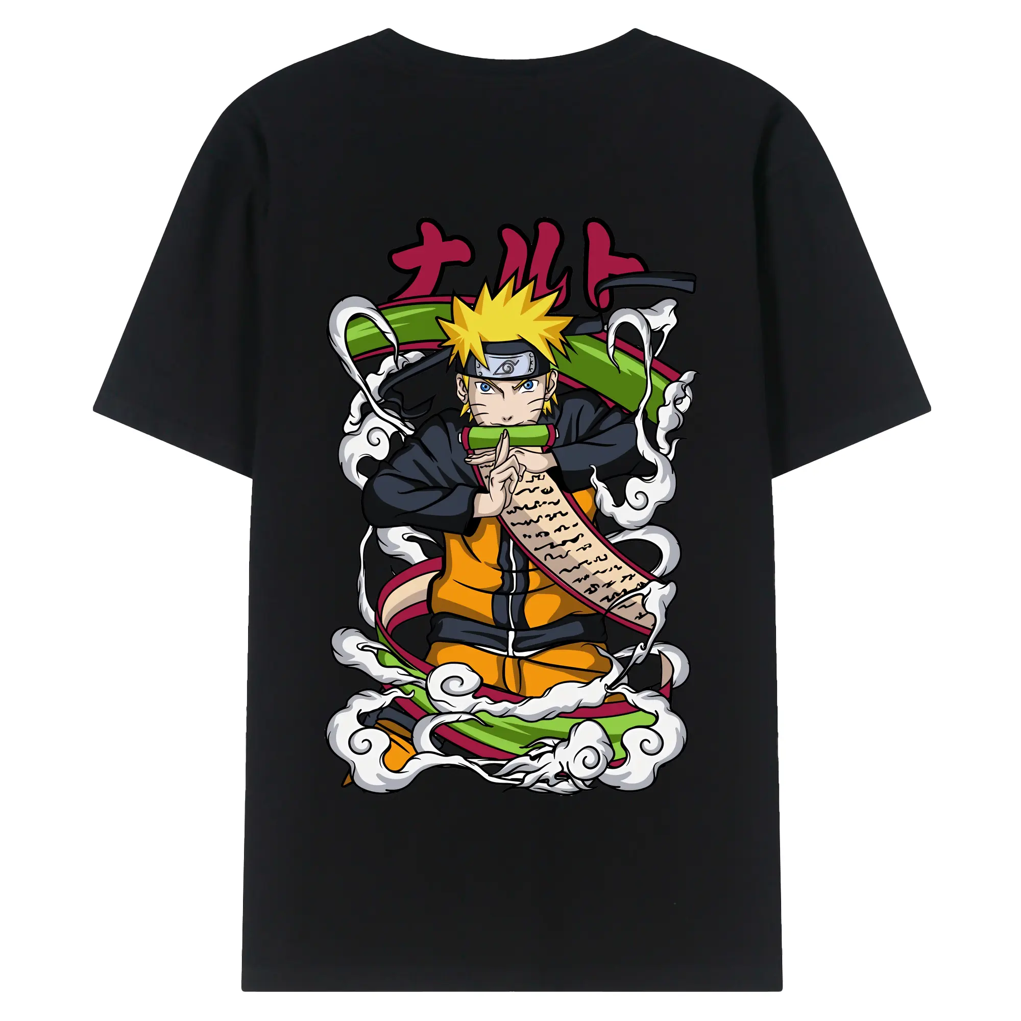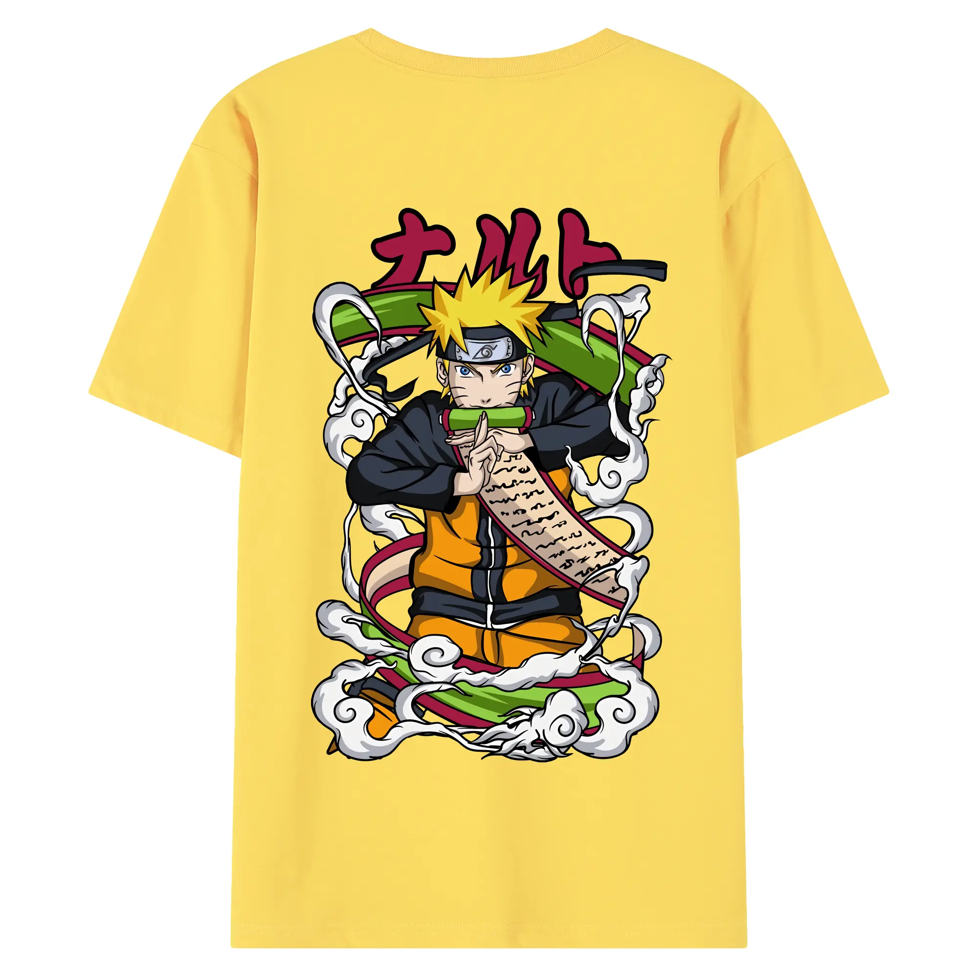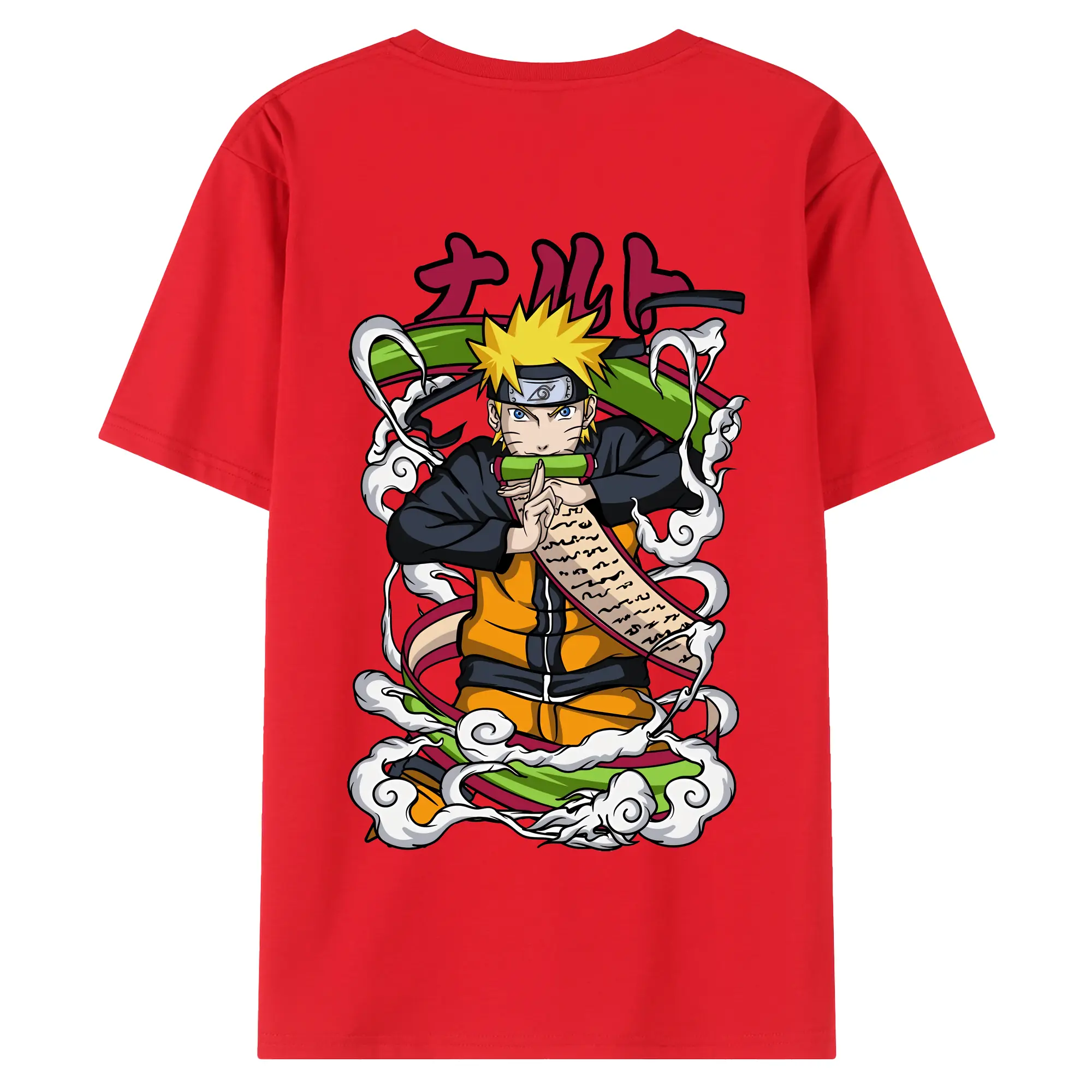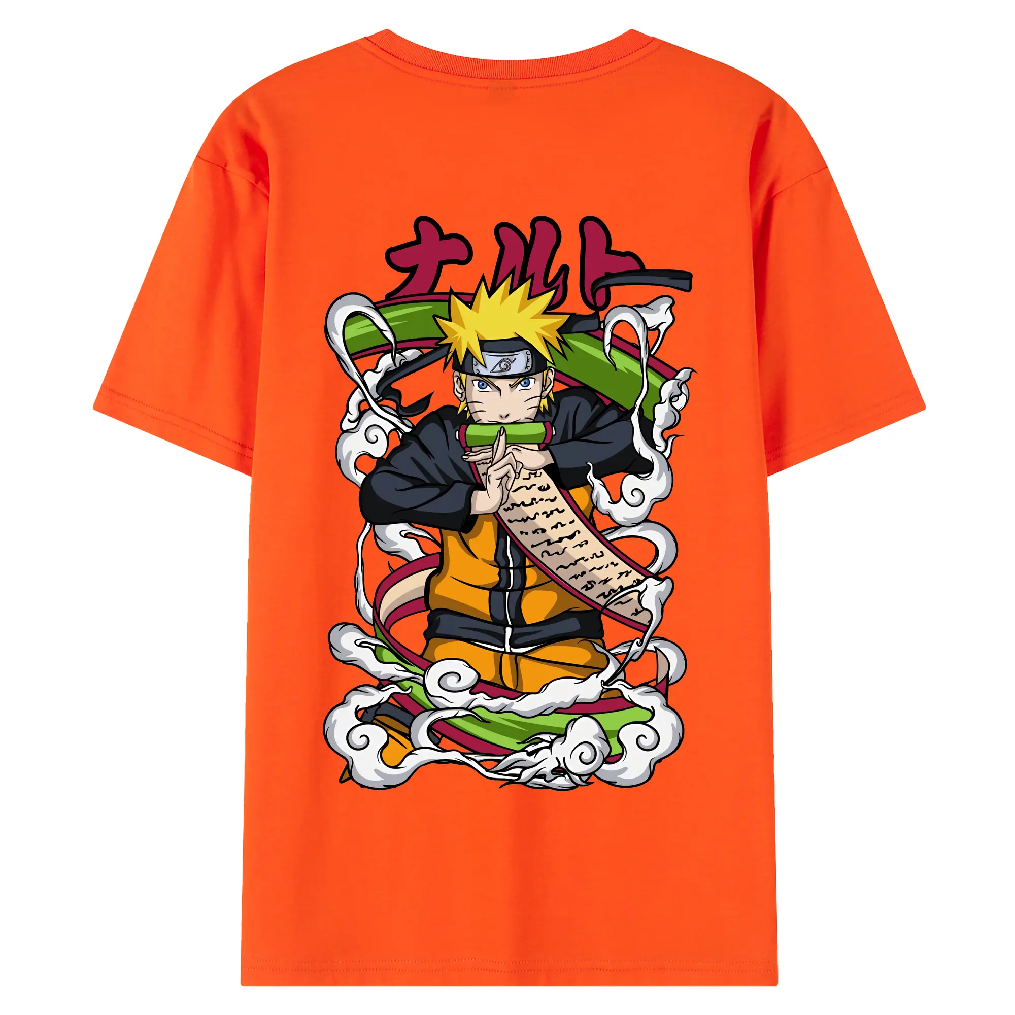ナルト グッズ うずまき ナルト - 綿100% ヴィンテージ風 半袖Tシャツ ・ 背面プリント ・ 柔らか肌触り ・ 通気性 快適 ・ スポーツ カジュアル 外出用
