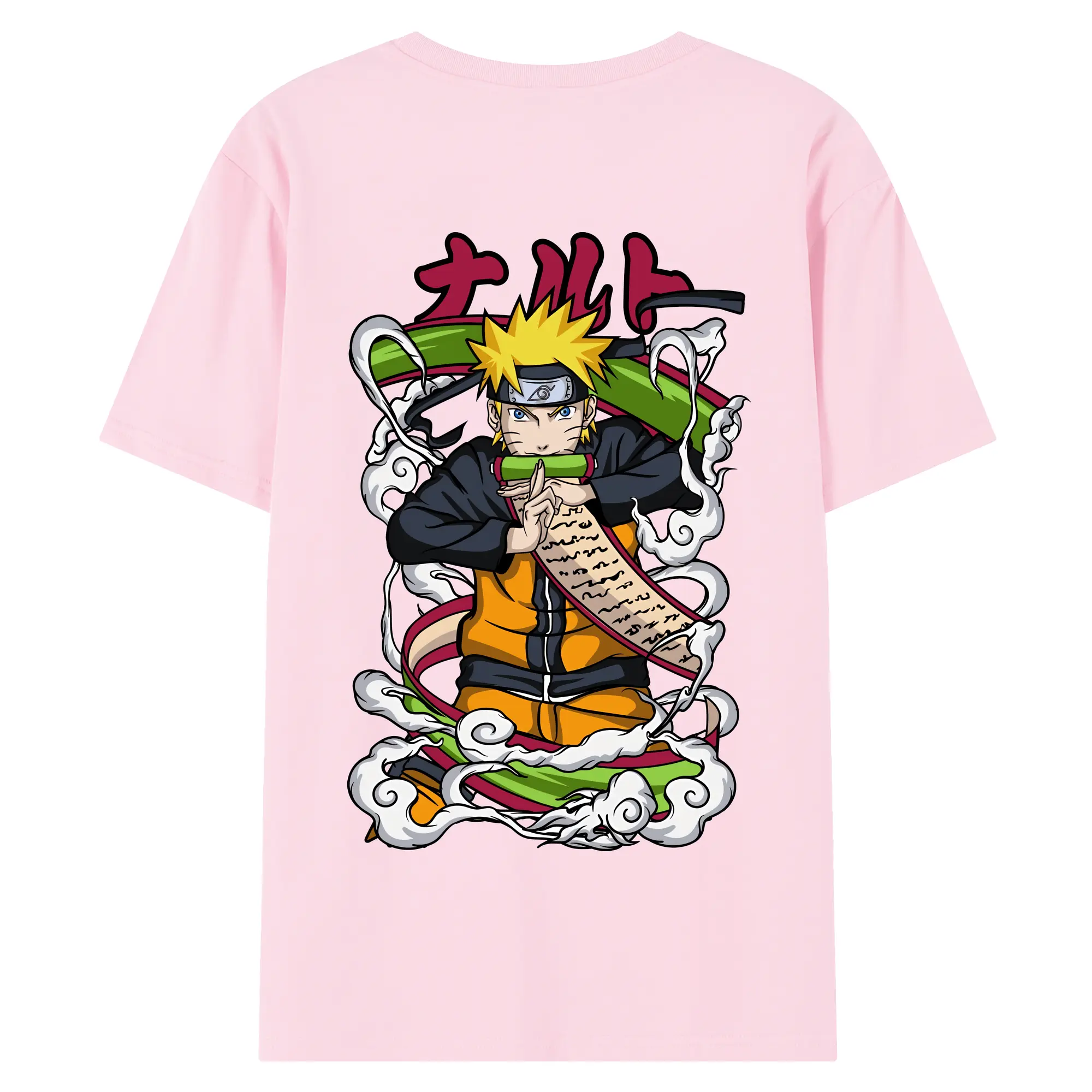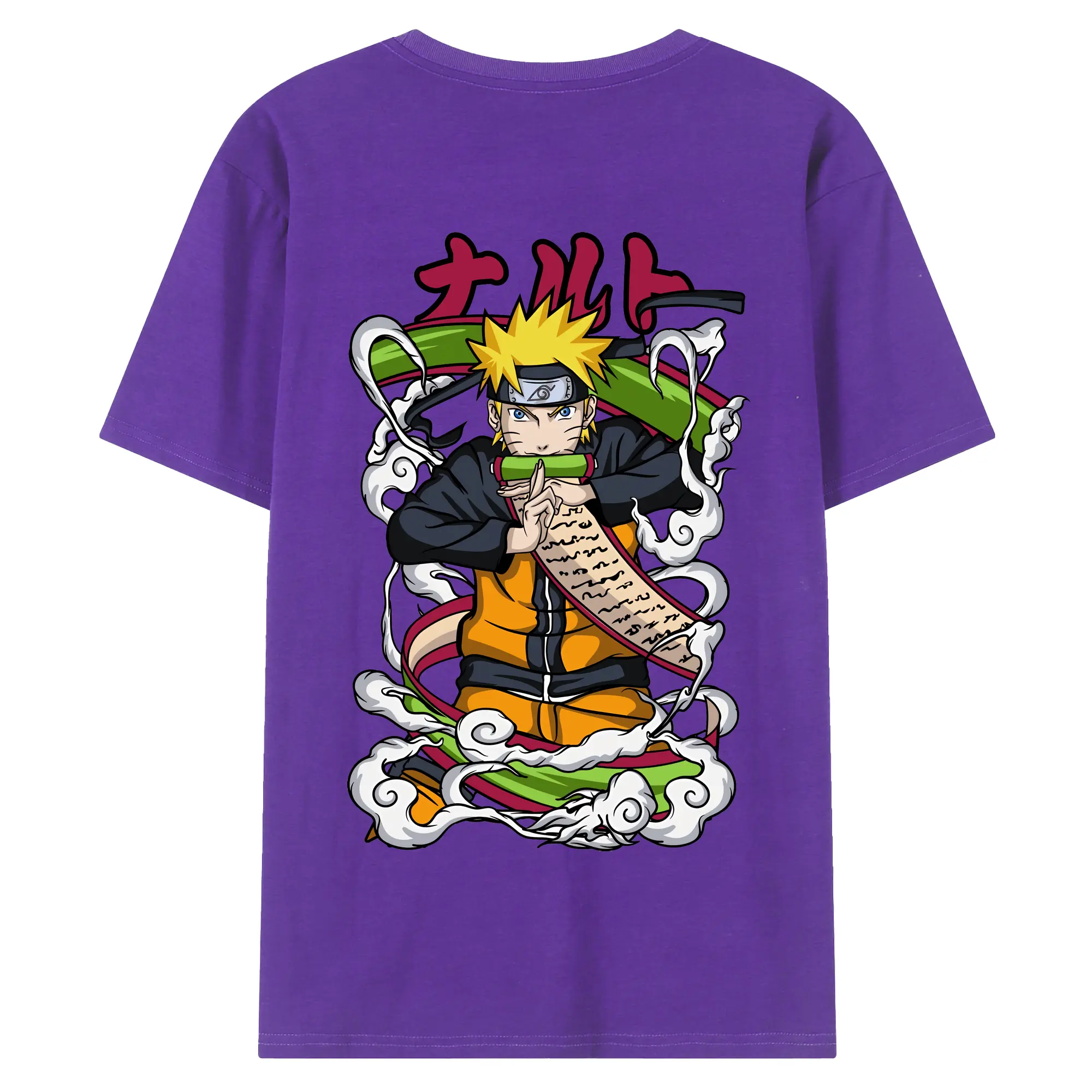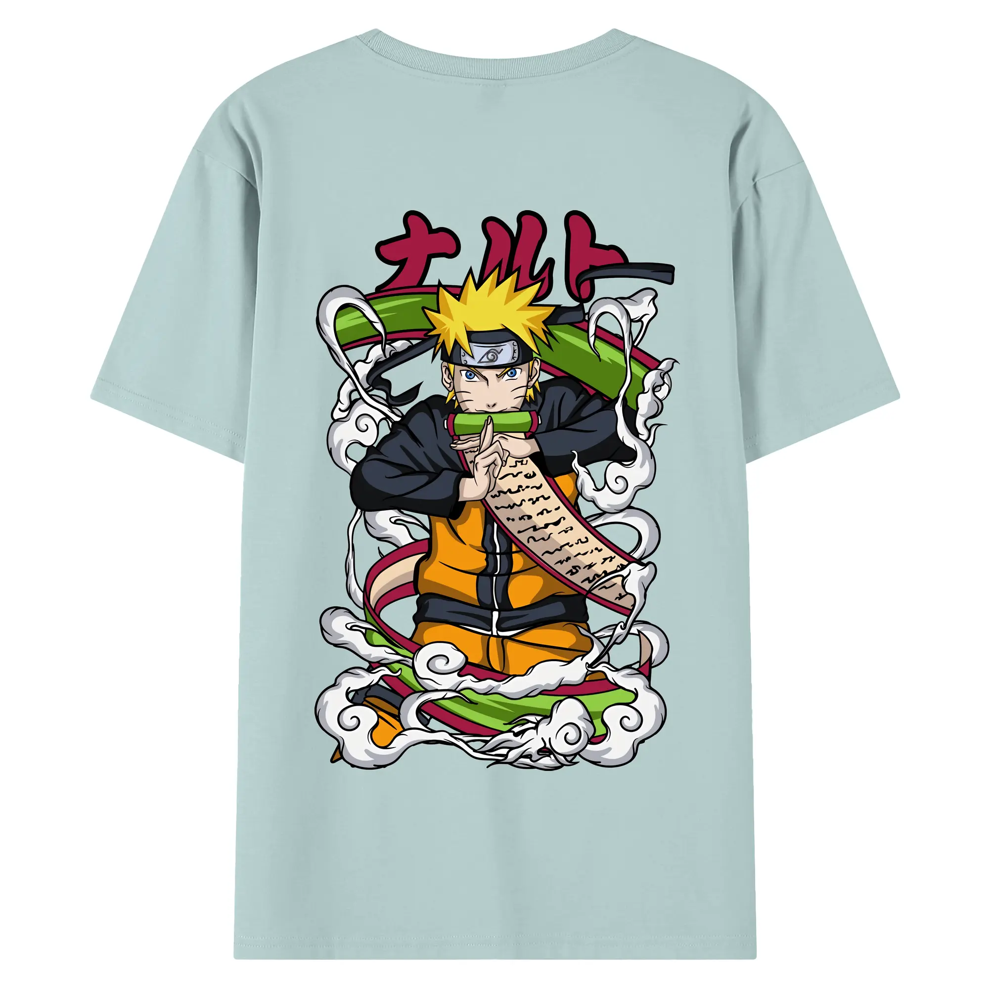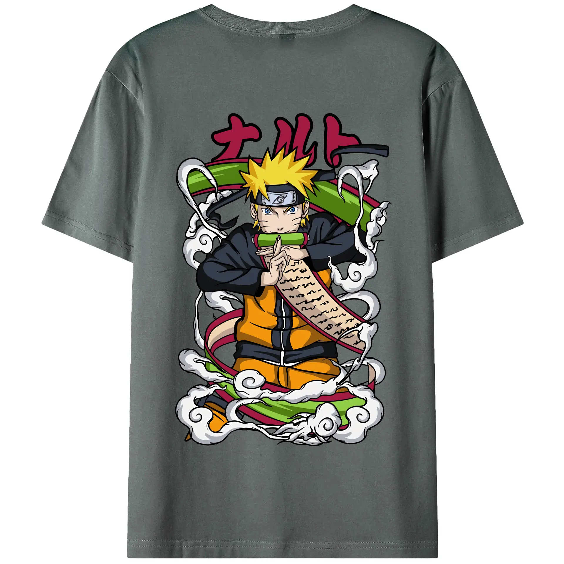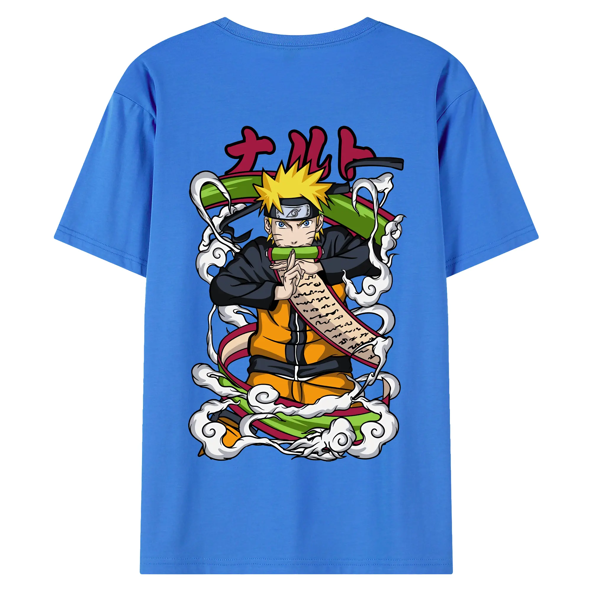 ナルト グッズ うずまき ナルト - 綿100% ヴィンテージ風 半袖Tシャツ ・ 背面プリント ・ 柔らか肌触り ・ 通気性 快適 ・ スポーツ カジュアル 外出用