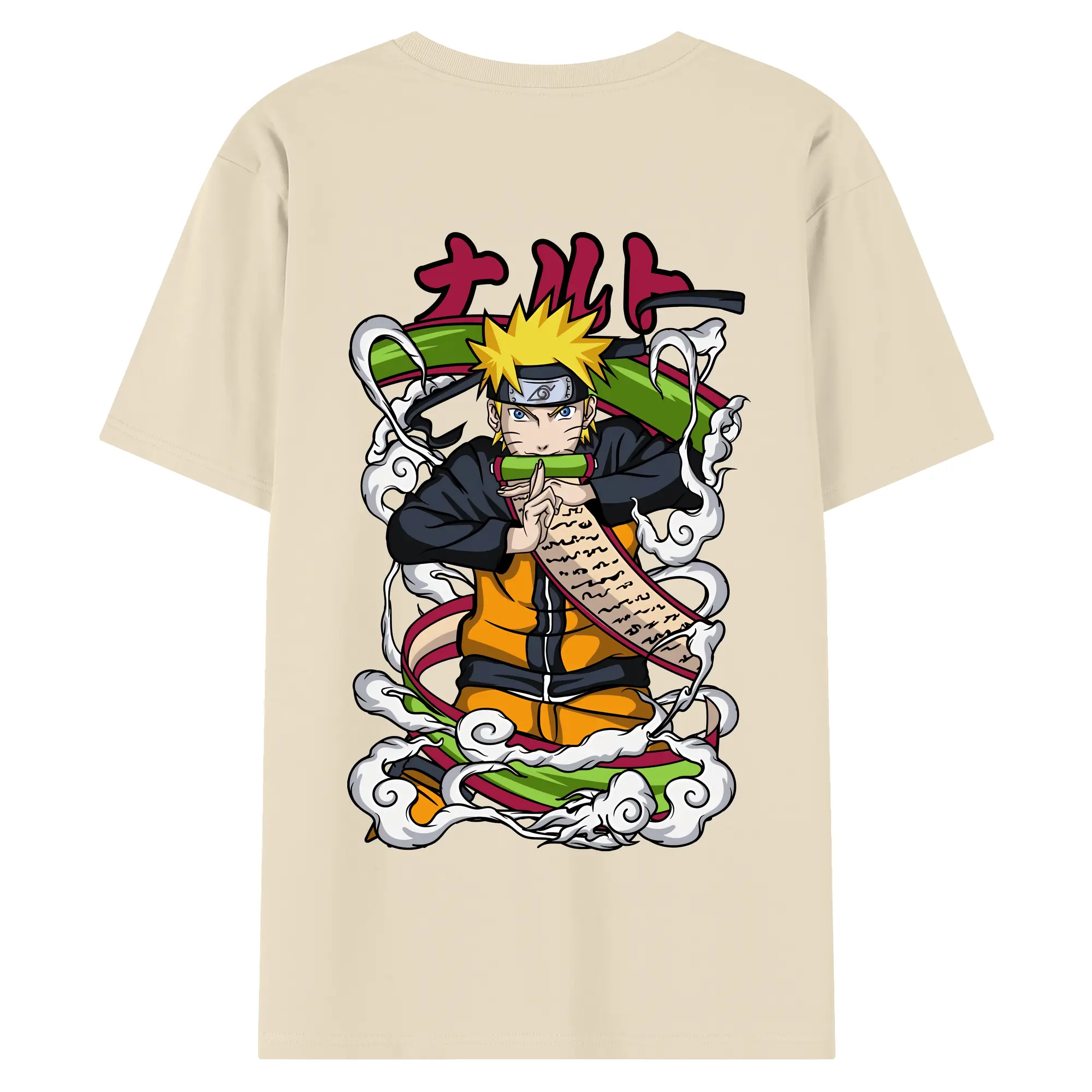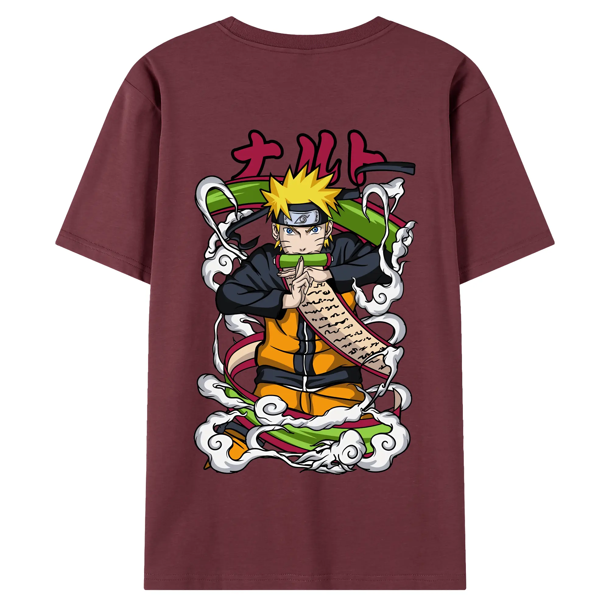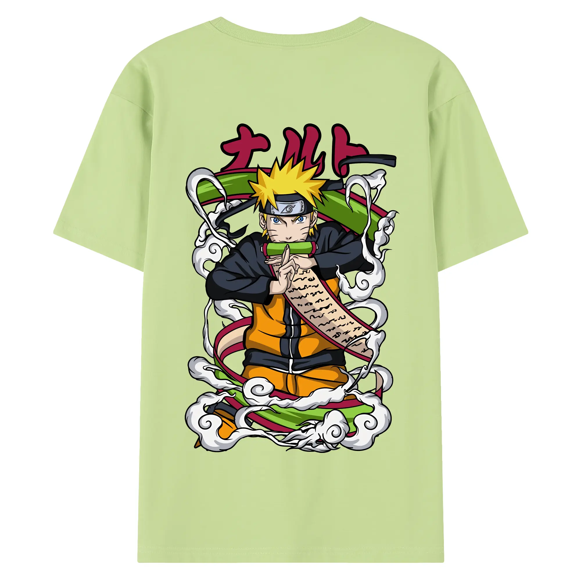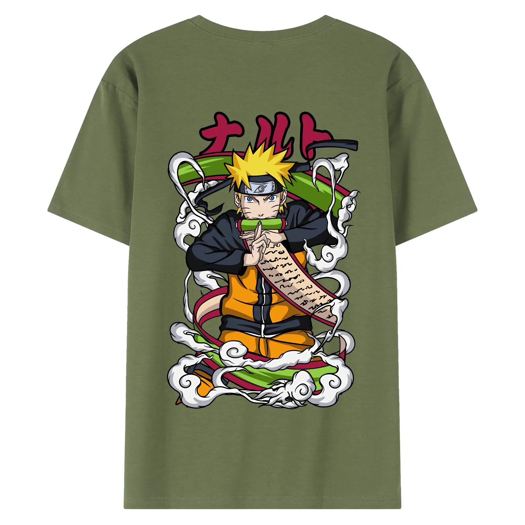 ナルト グッズ うずまき ナルト - 綿100% ヴィンテージ風 半袖Tシャツ ・ 背面プリント ・ 柔らか肌触り ・ 通気性 快適 ・ スポーツ カジュアル 外出用