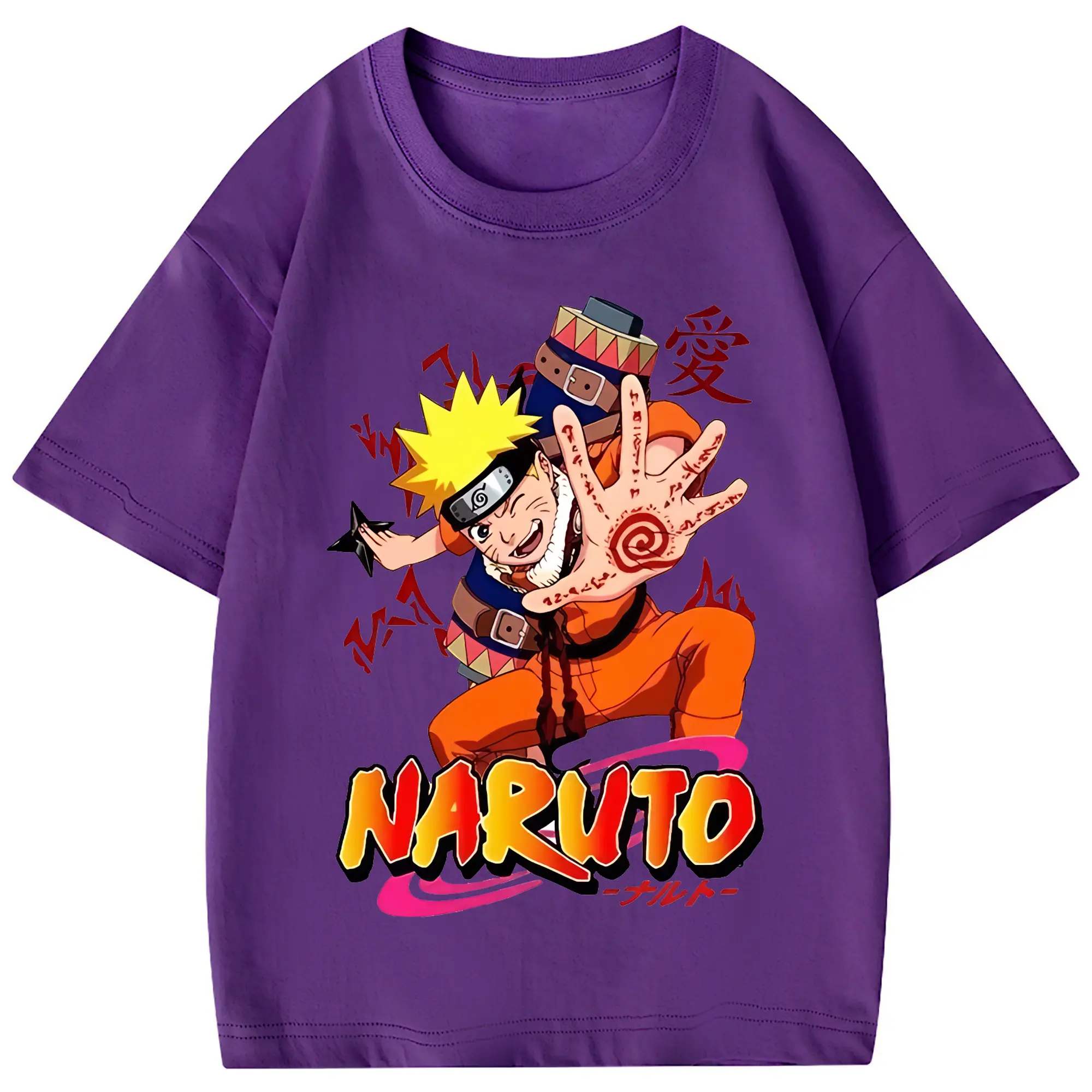 ナルト グッズ うずまき ナルト - 綿100% 半袖Tシャツ ・ バックプリント ・ 快適 通気性 ・ 日常使い 散歩 スポーツ用