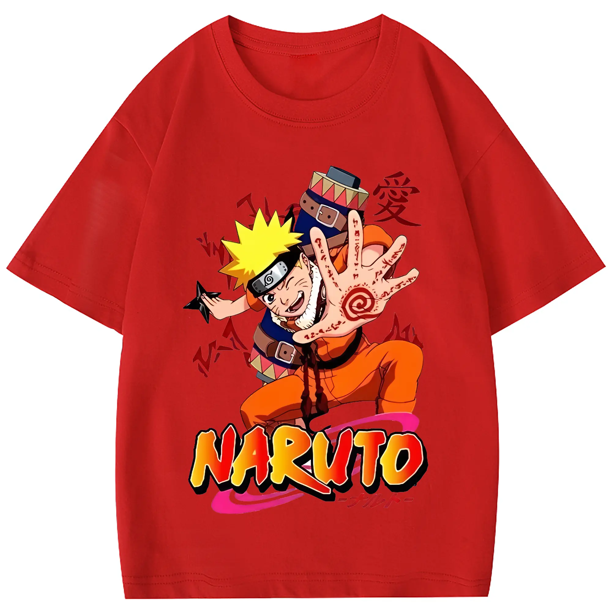 ナルト グッズ うずまき ナルト - 綿100% 半袖Tシャツ ・ フロントプリント ・ 快適 通気性 ・ 日常使い 散歩 スポーツ用
