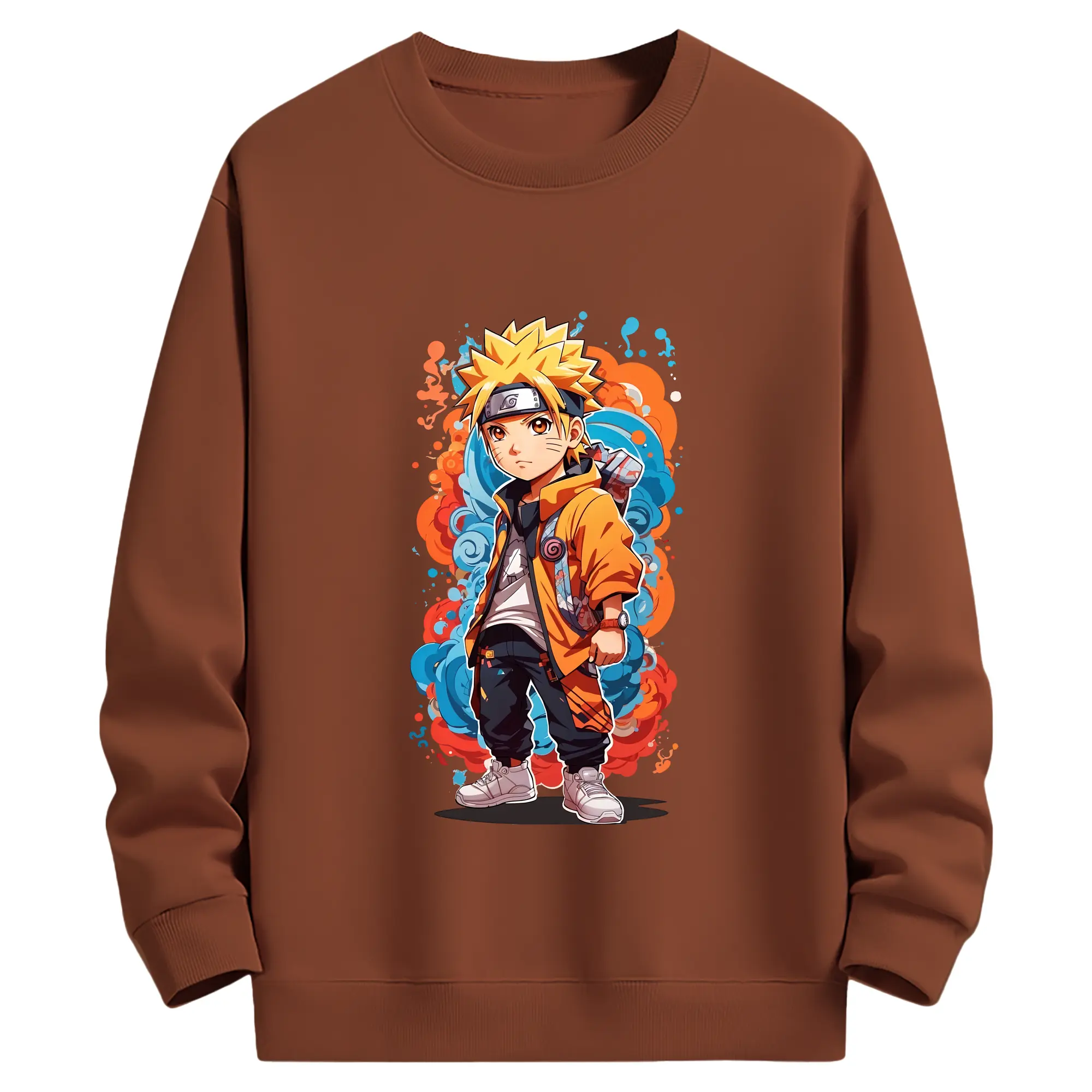 ナルト グッズ うずまき ナルト - 薄手 クルーネック スウェット 裏毛260g · ポリエステル 春秋向け カジュアル 男女兼用 · トレーナー デイリー スポーツ 散歩に最適