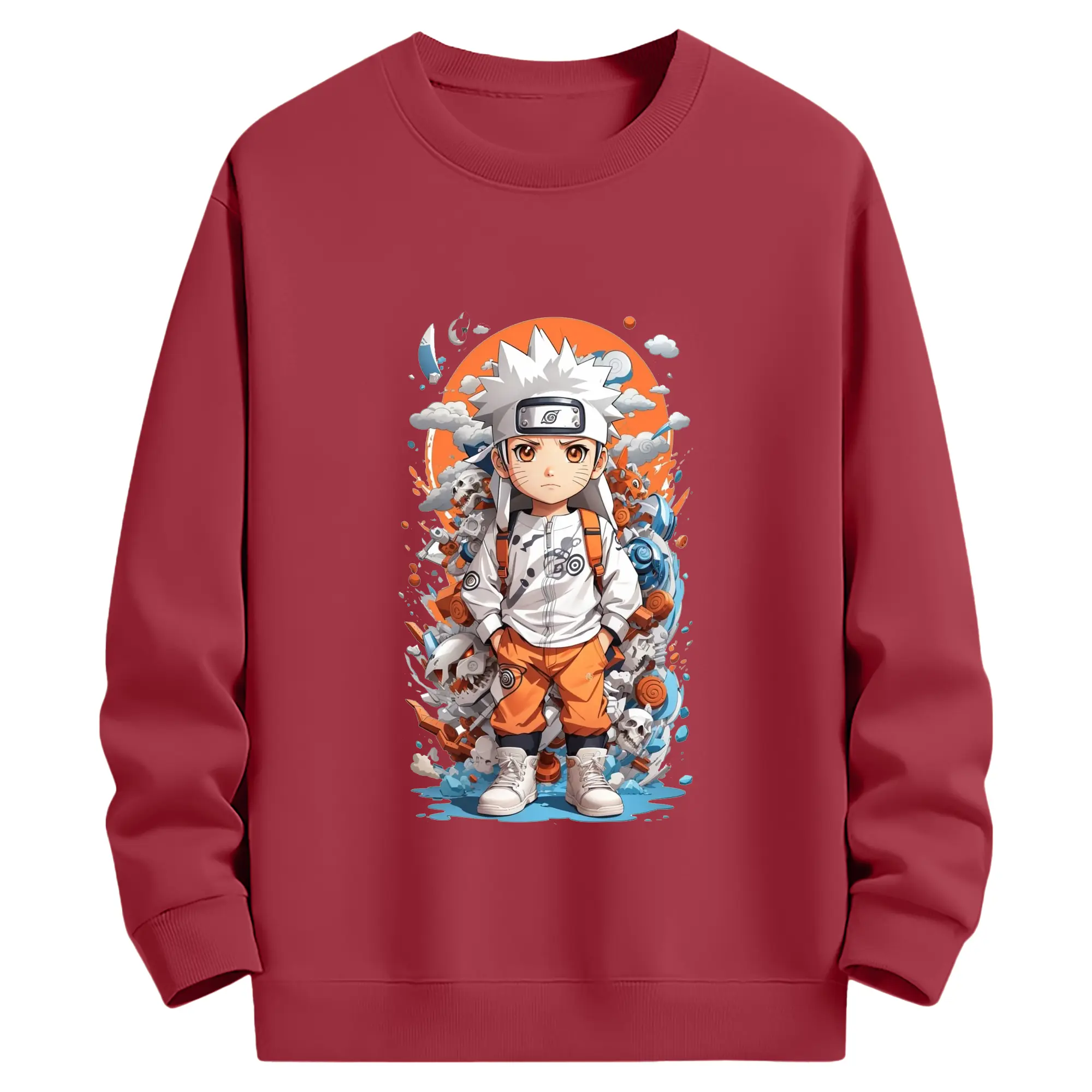 ナルト グッズ うずまき ナルト - 薄手 クルーネック スウェット 裏毛260g · ポリエステル 春秋向け カジュアル 男女兼用 · トレーナー デイリー スポーツ 散歩に最適