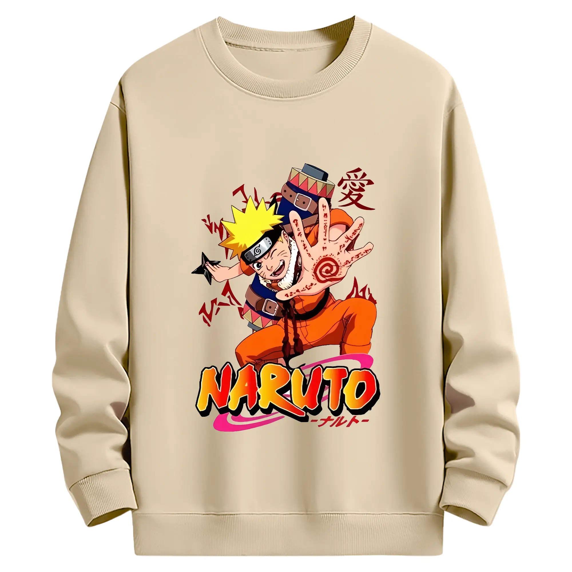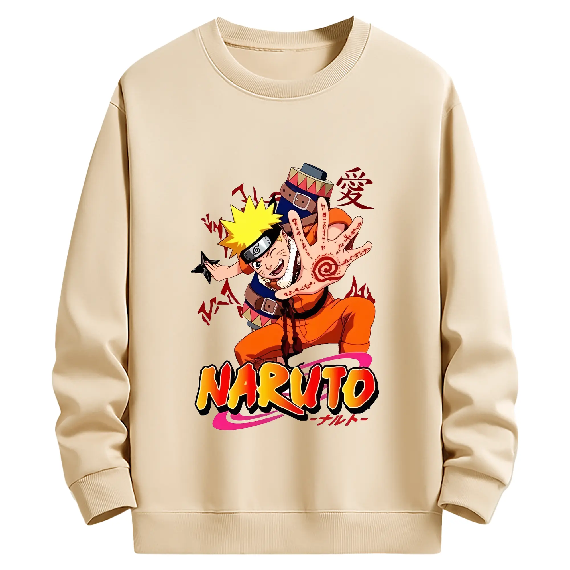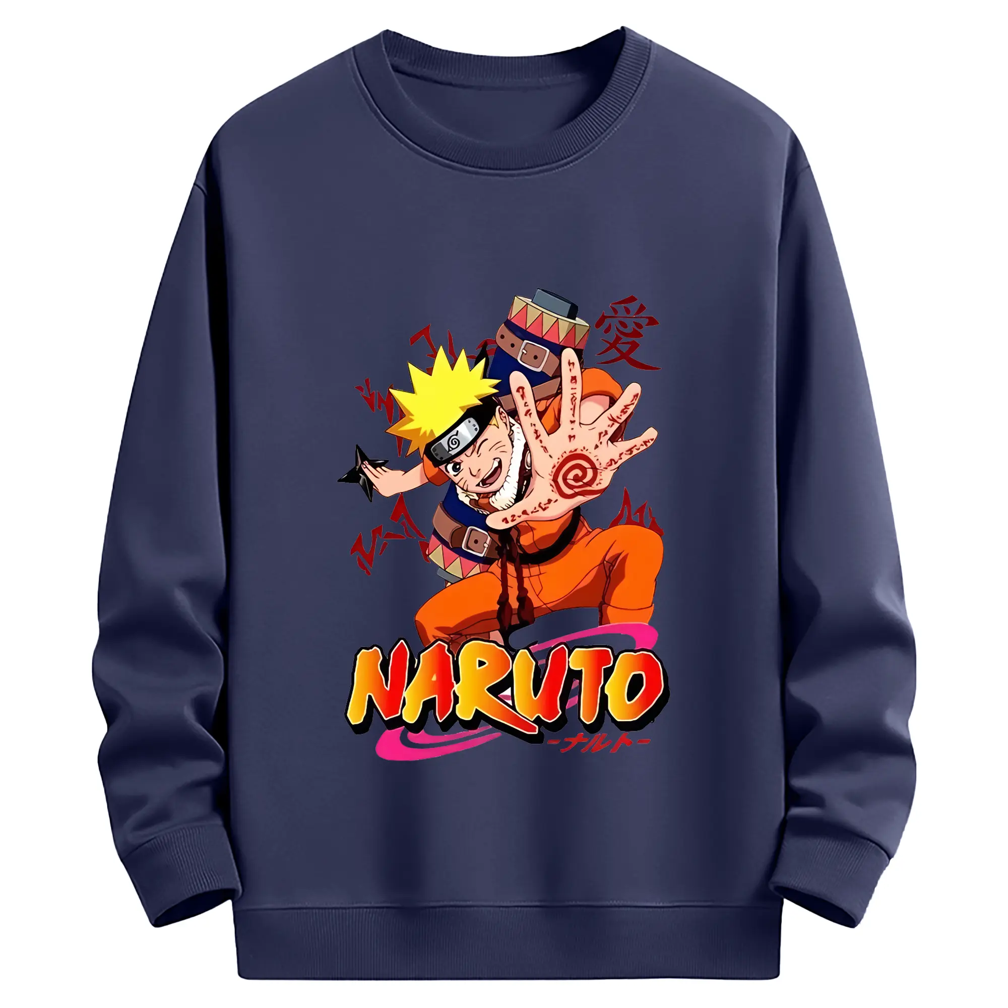 ナルト グッズ うずまき ナルト - 薄手 クルーネック スウェット 裏毛260g · ポリエステル 春秋向け カジュアル 男女兼用 · トレーナー デイリー スポーツ 散歩に最適