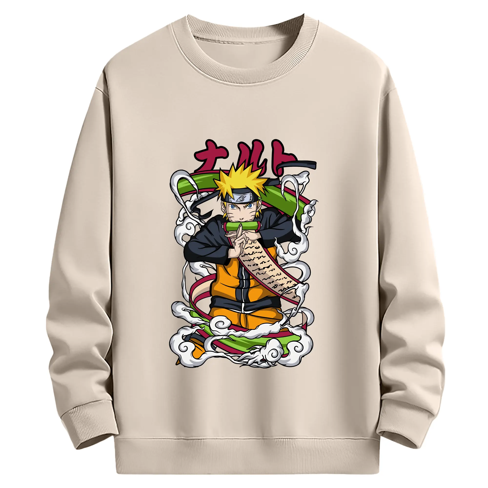 ナルト グッズ うずまき ナルト - 薄手 クルーネック スウェット 裏毛260g · ポリエステル 春秋向け カジュアル 男女兼用 · トレーナー デイリー スポーツ 散歩に最適