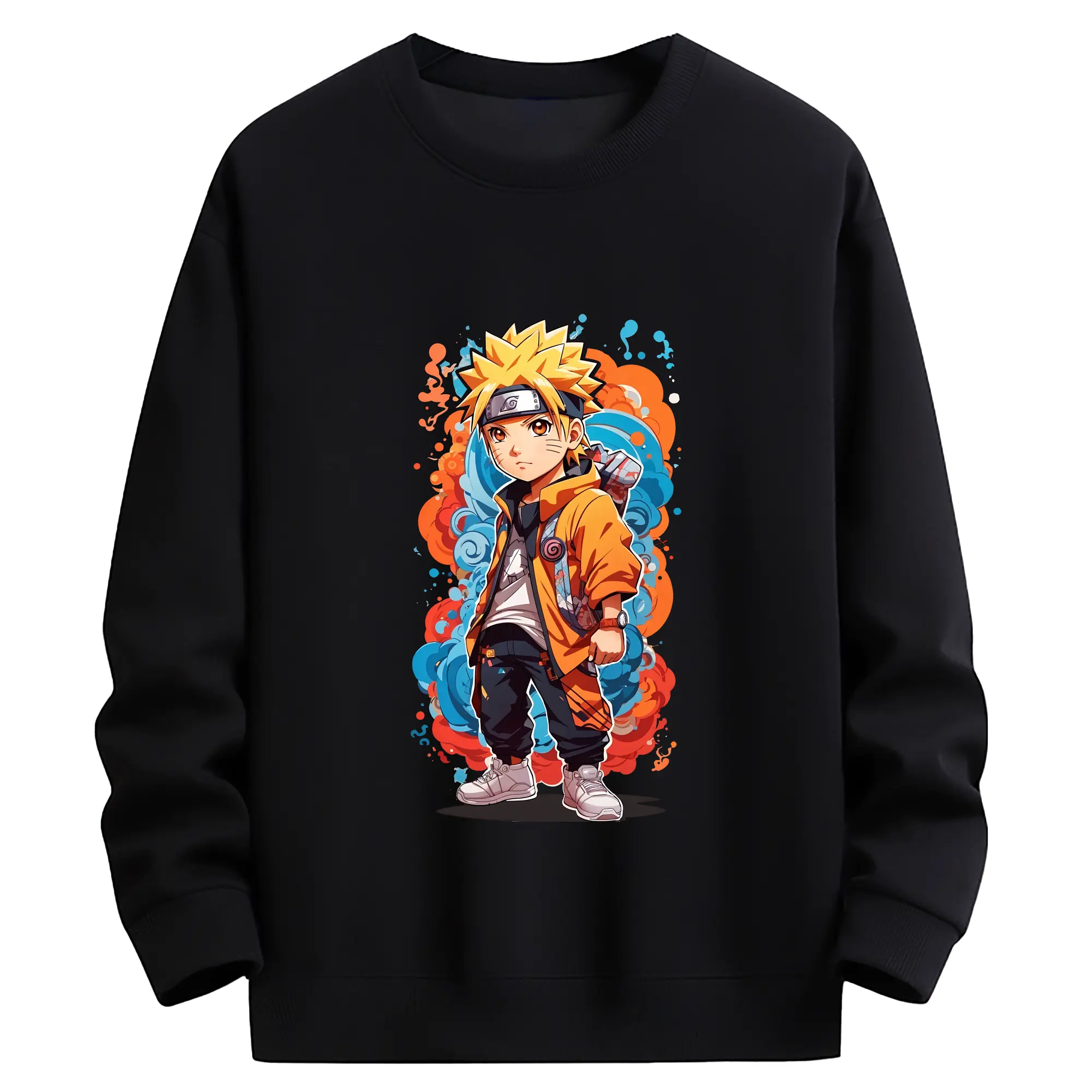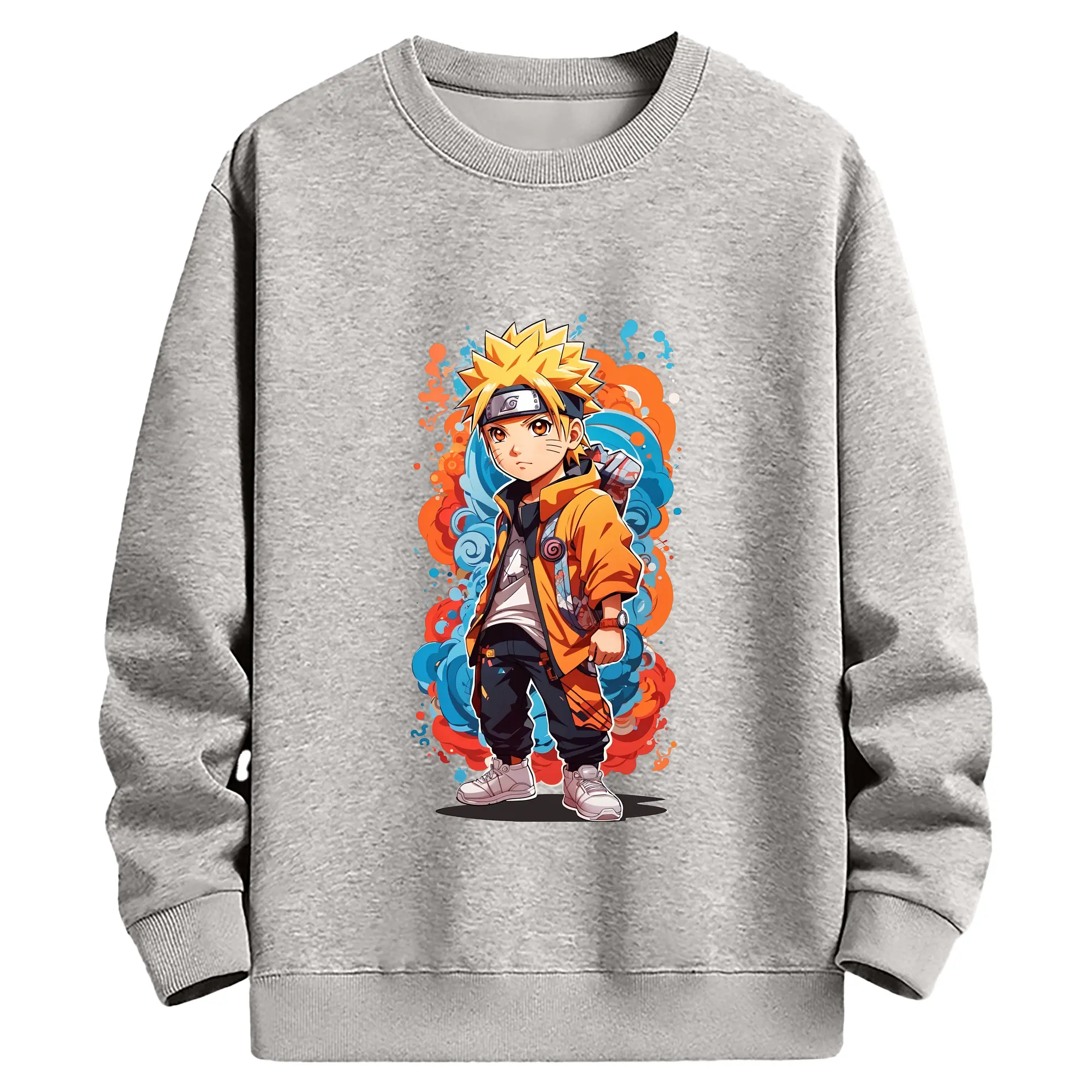 ナルト グッズ うずまき ナルト - 薄手 クルーネック スウェット 裏毛260g · ポリエステル 春秋向け カジュアル 男女兼用 · トレーナー デイリー スポーツ 散歩に最適