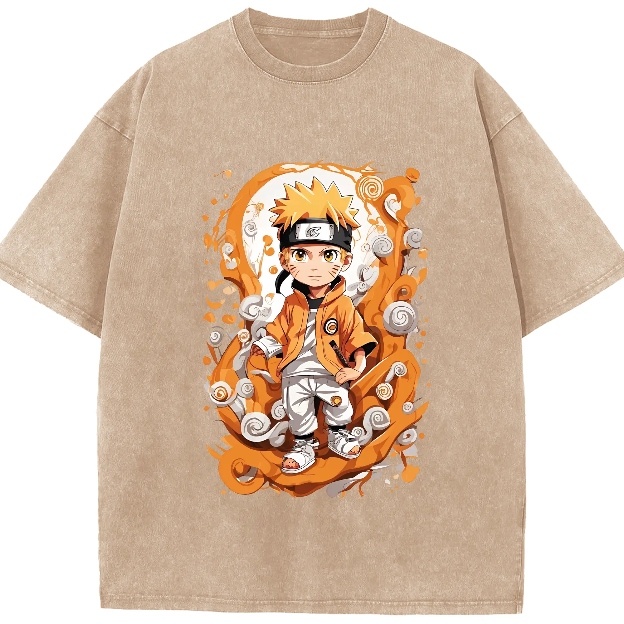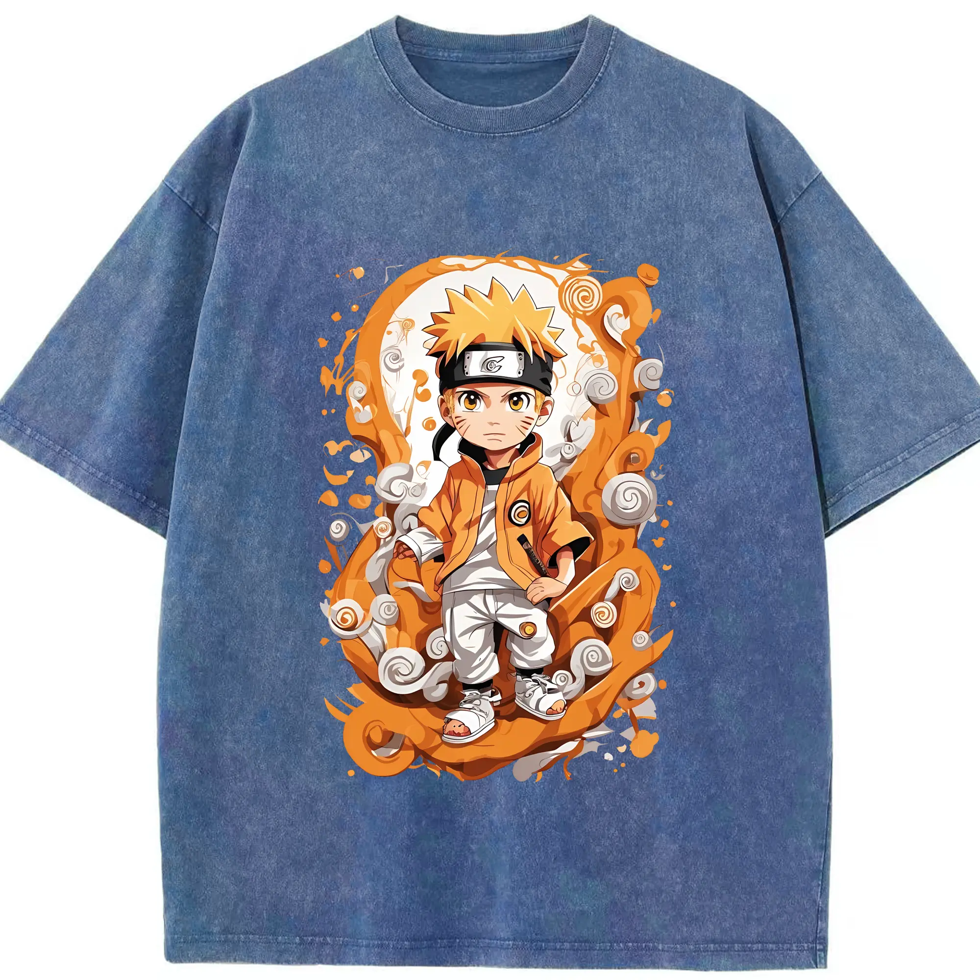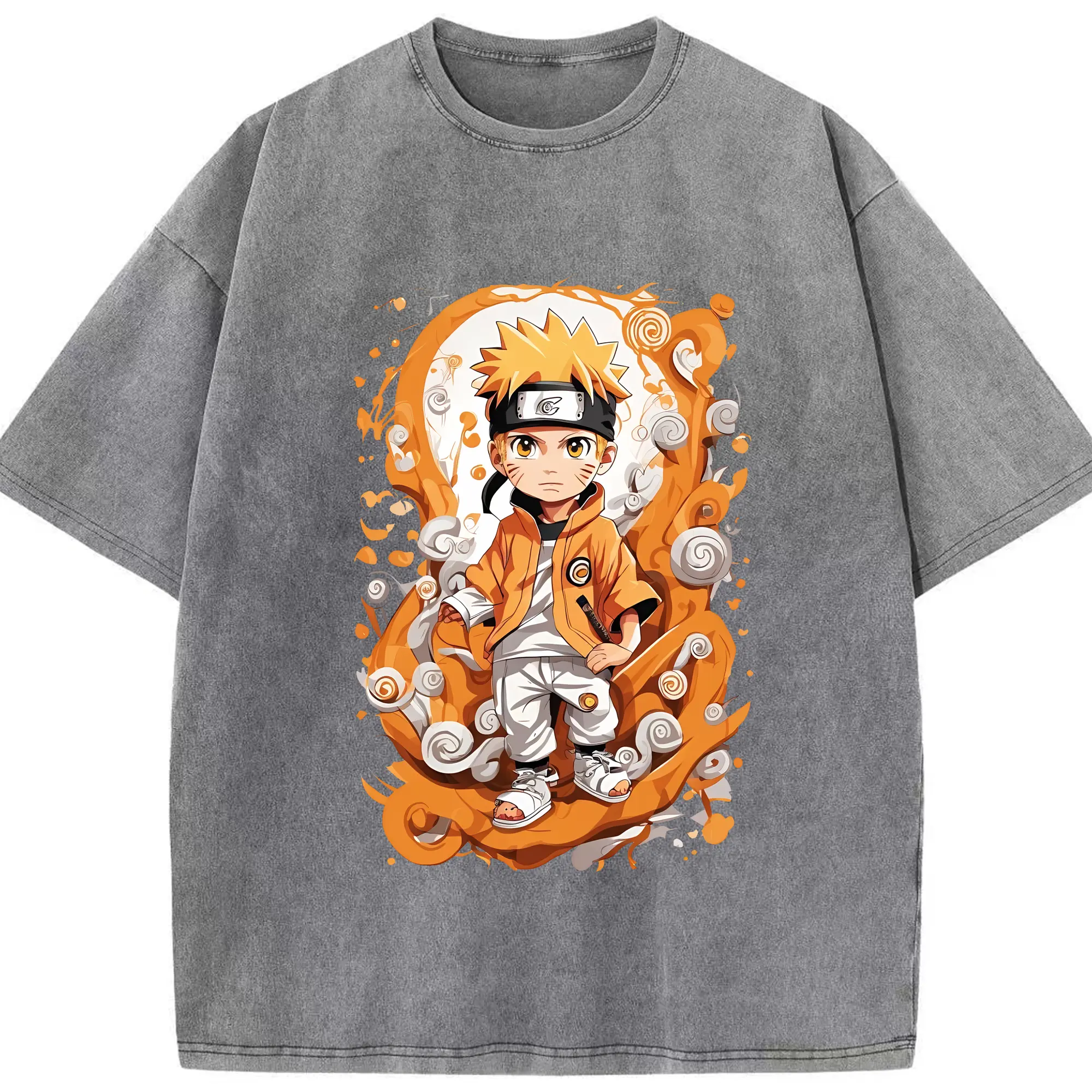 ナルト グッズ うずまき ナルト - 綿100% ヴィンテージ風 半袖Tシャツ ・ 背面プリント ・ 柔らか肌触り ・ 通気性 快適 ・ スポーツ カジュアル 外出用