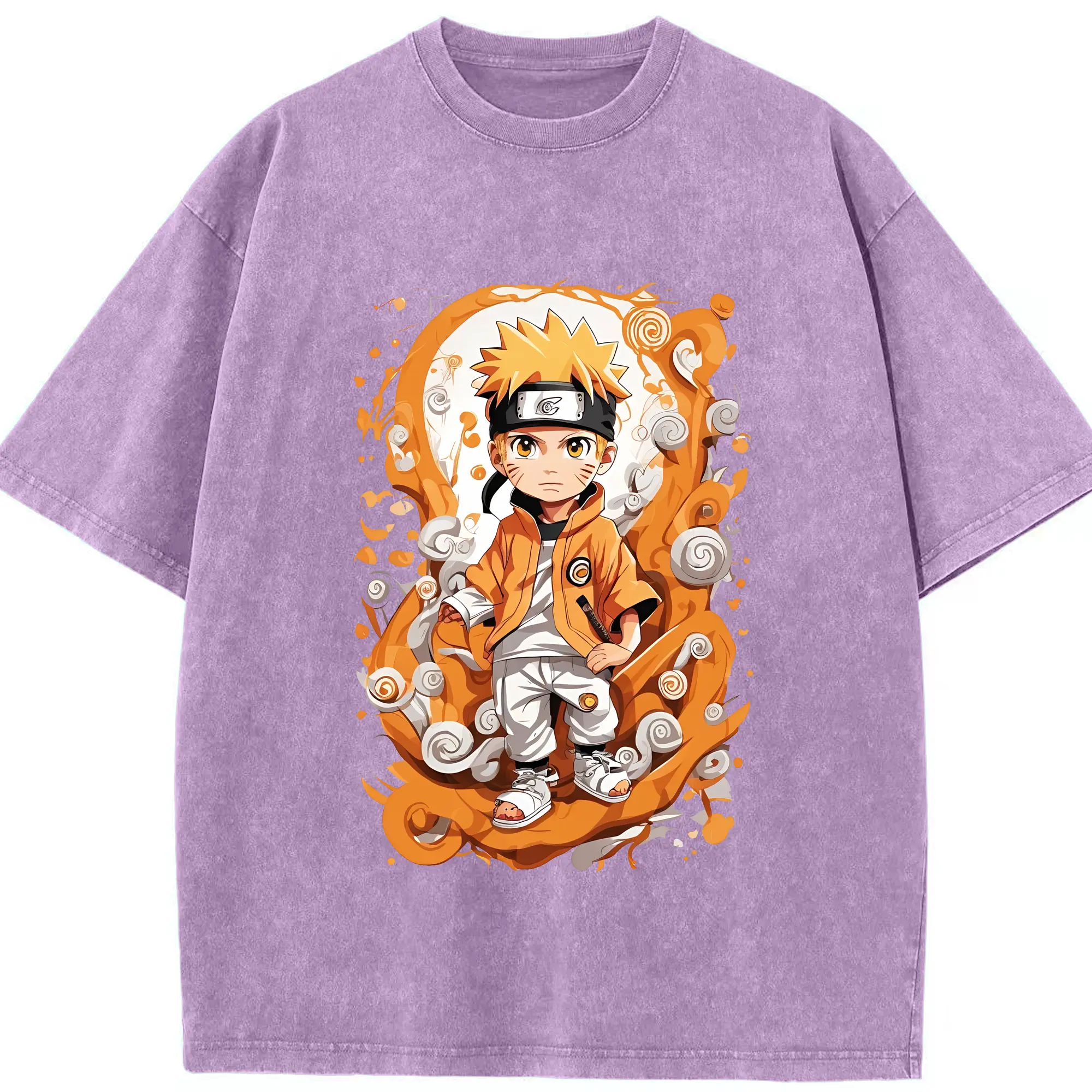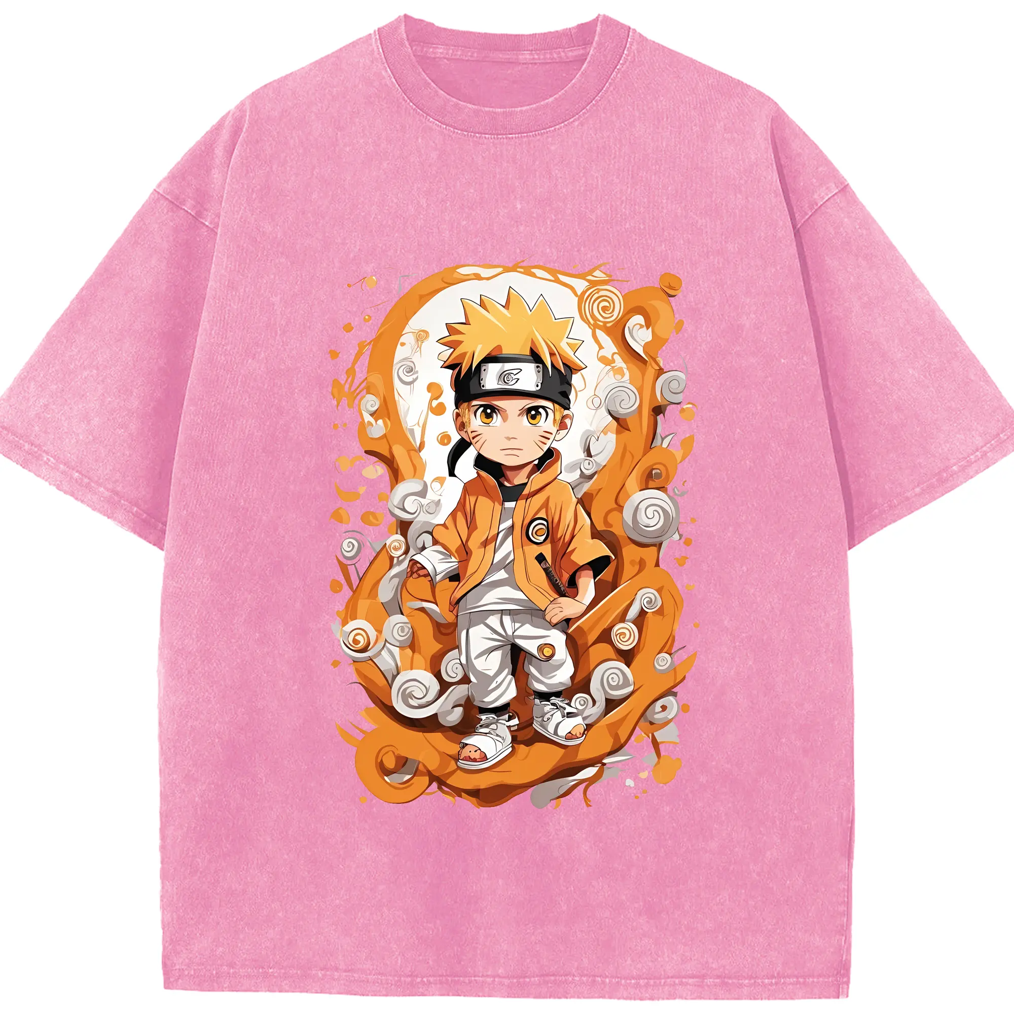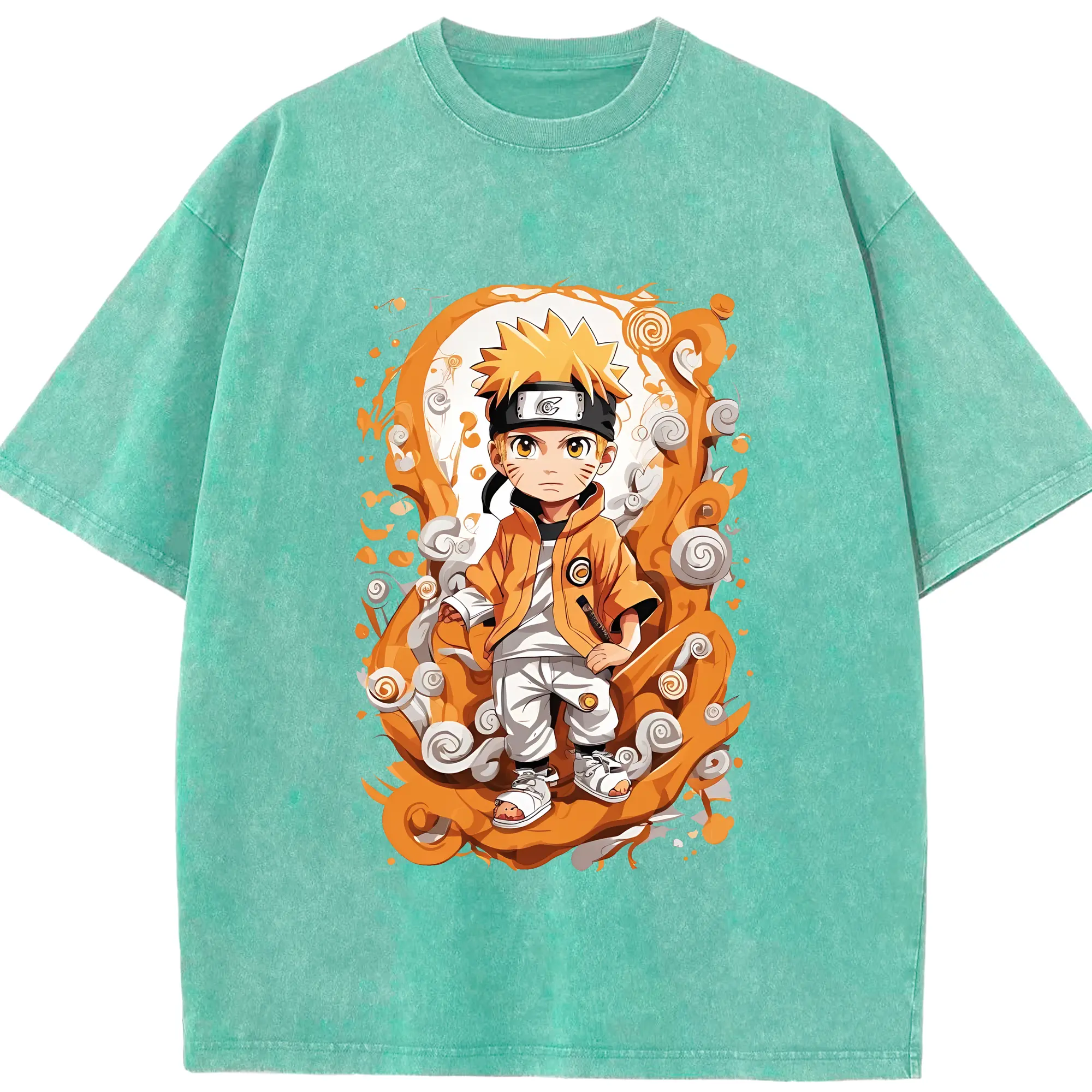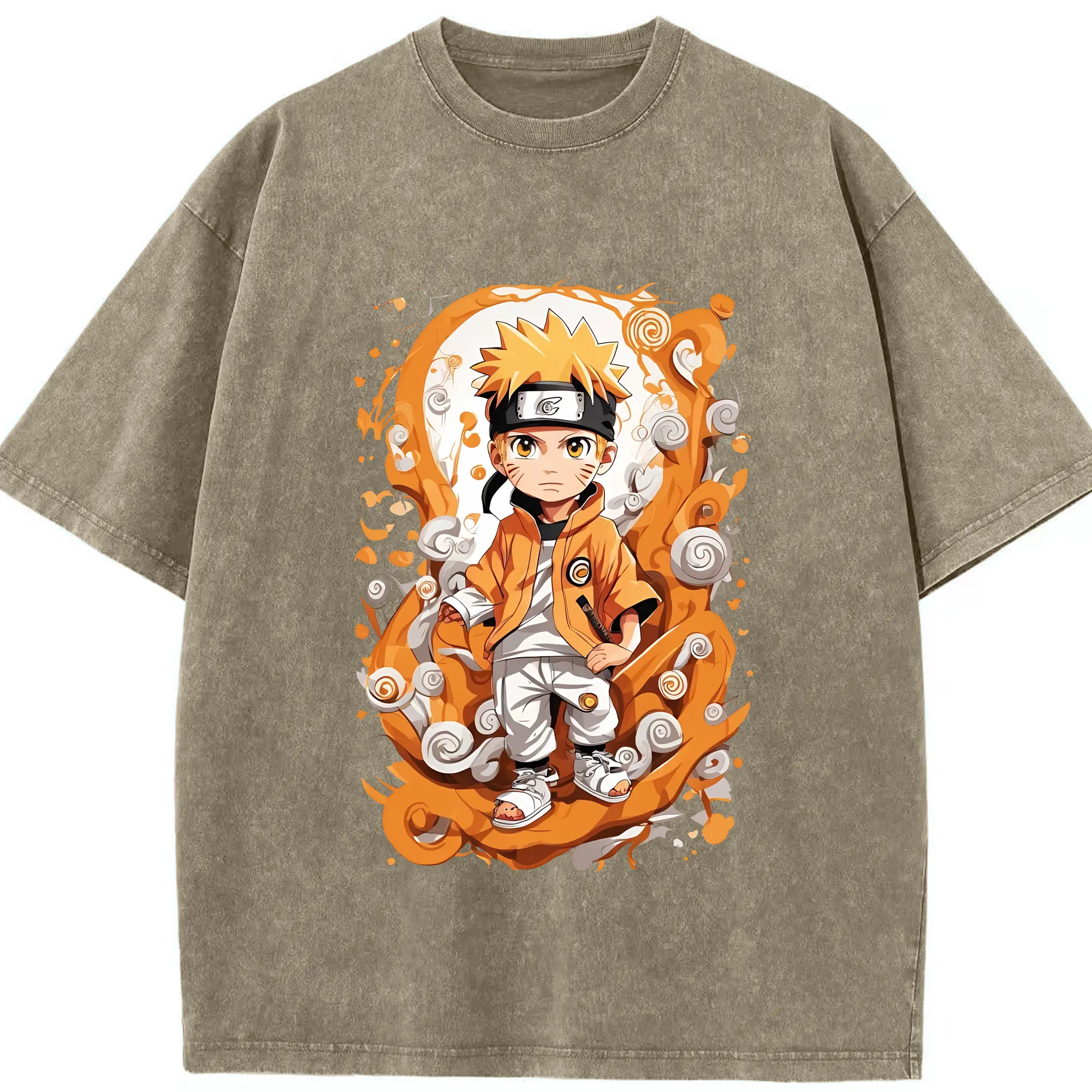 ナルト グッズ うずまき ナルト - 綿100% ヴィンテージ風 半袖Tシャツ ・ 背面プリント ・ 柔らか肌触り ・ 通気性 快適 ・ スポーツ カジュアル 外出用